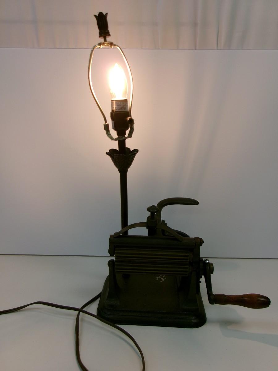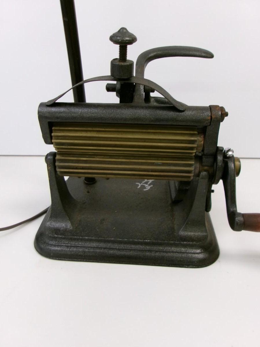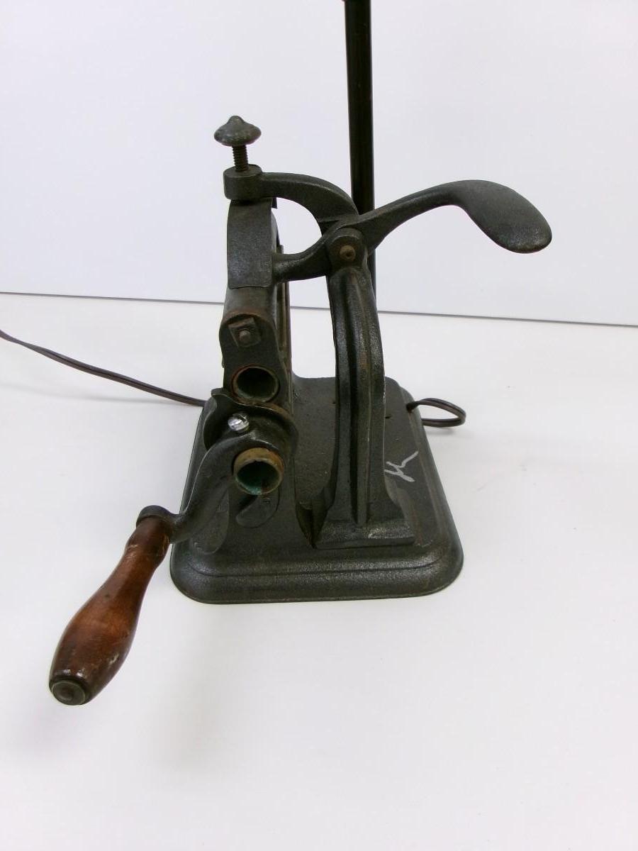 Artist Signed 1880's Antique Cast Iron Fluting Pleater Crimper Ruffler Roller Machine Table Lamp Works!