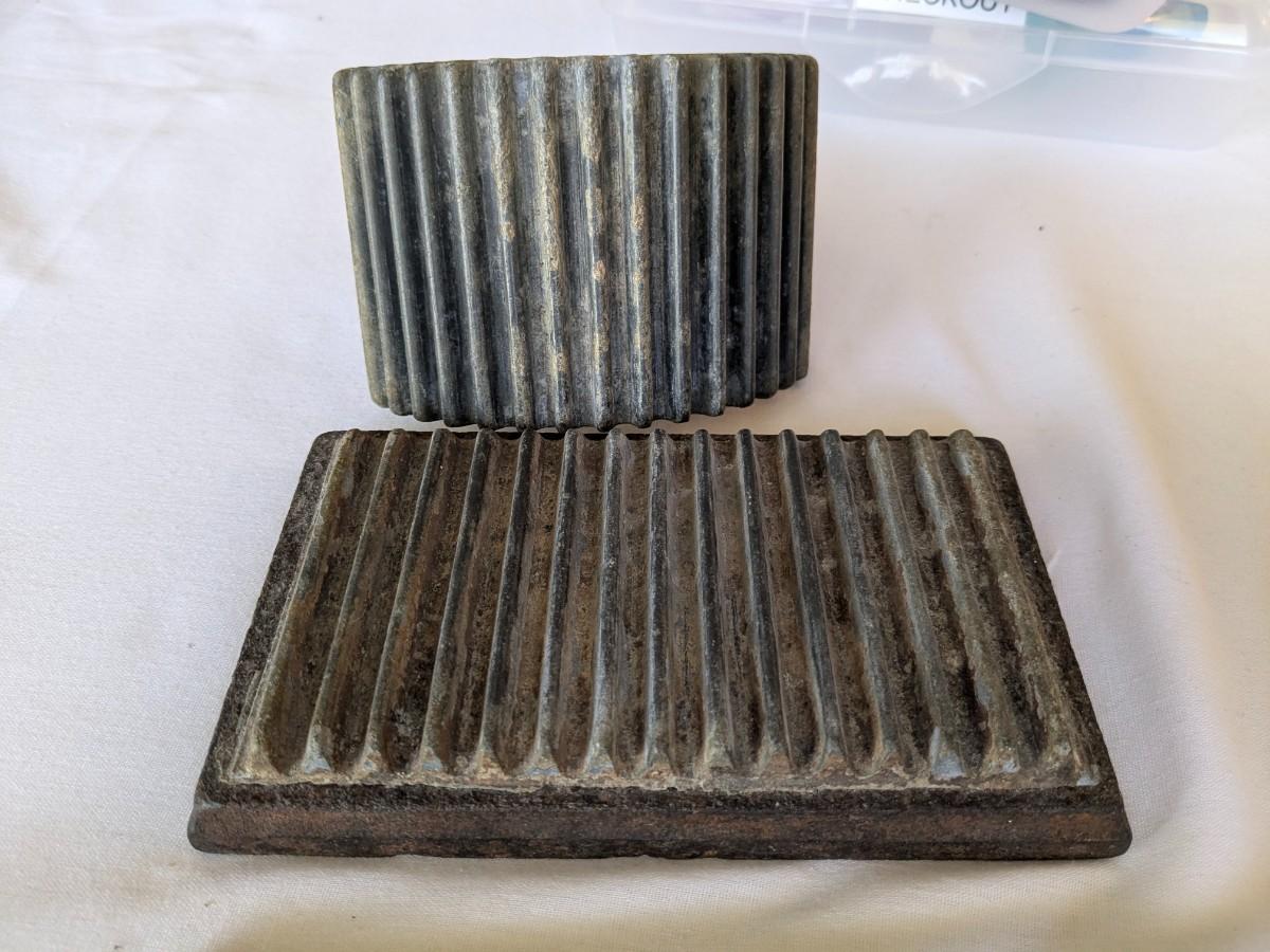 This antique cast iron fluter is a unique piece that will add character to any kitchen. The hand-operated fluter is made of durable cast iron and was manufactured in the United States. It is suitable for fluting garments and comes with a weight of 4.4 lbs. The fluter is branded as Geneva and has a patent date of 1866. It is a great collectible item for those interested in vintage sewing equipment.