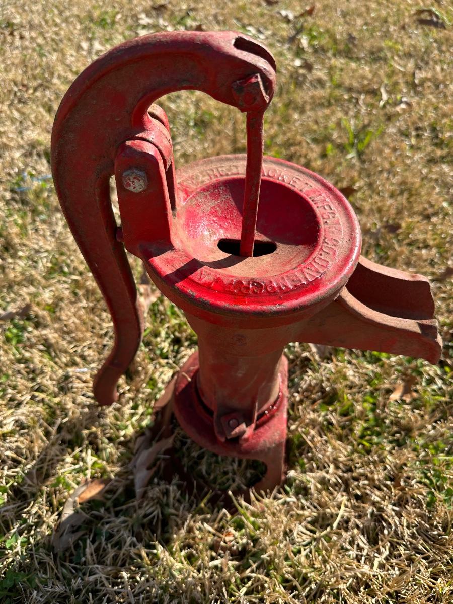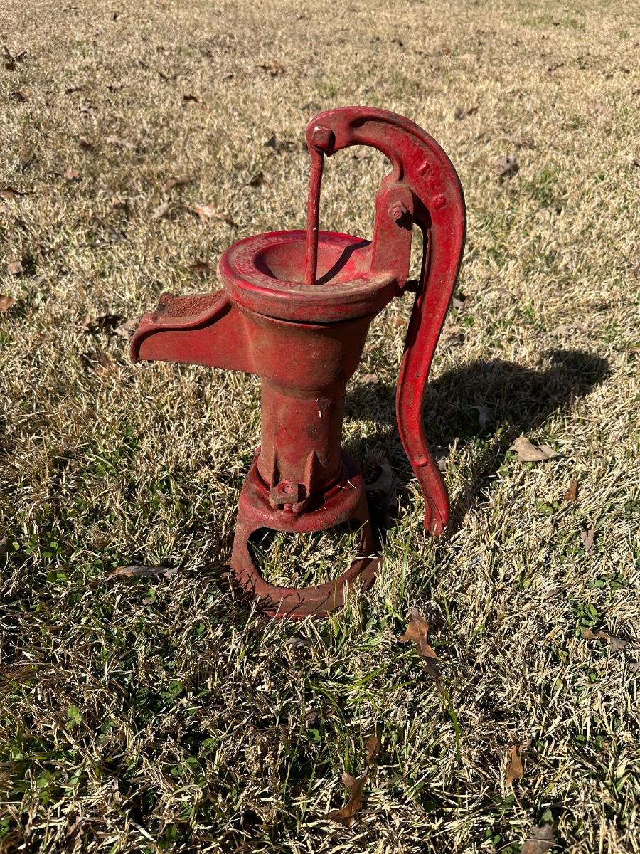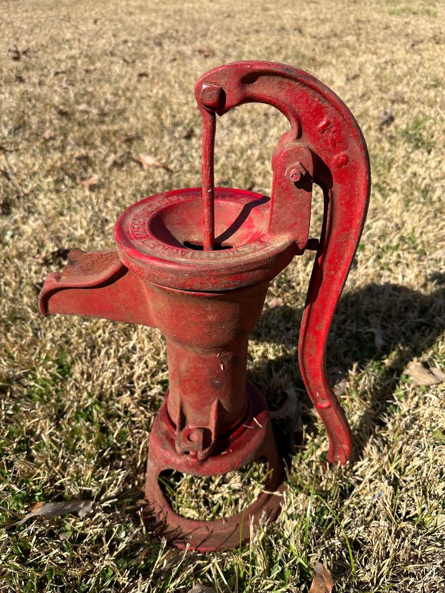 Antique Cast Iron Hand Water Pump – Farm / Well Pump – Red Paint