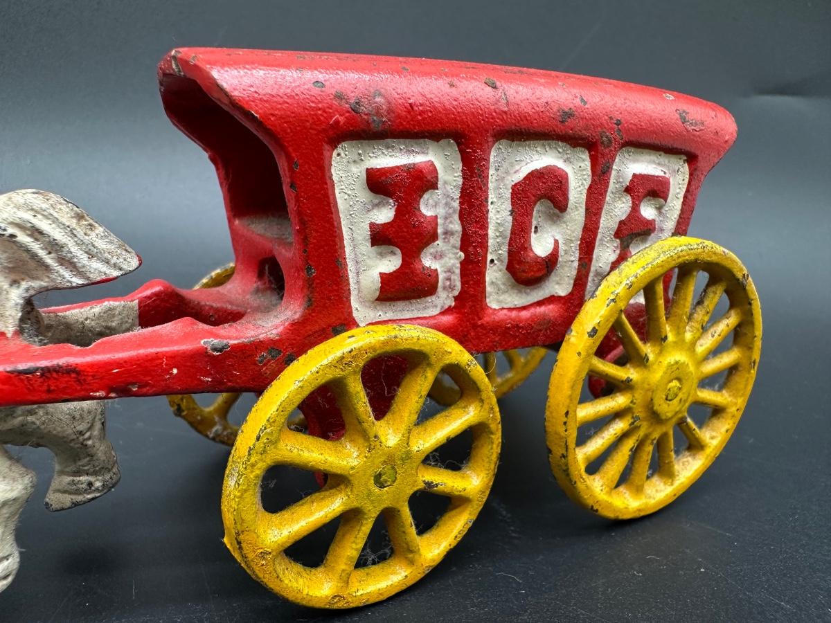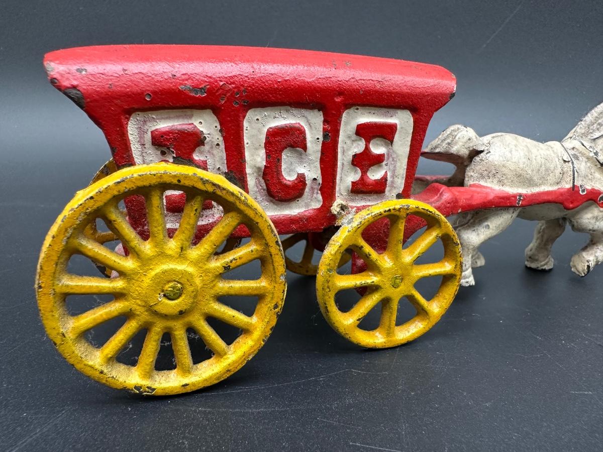 Antique Cast Iron Horse Drawn Ice Advertising Wagon – Vintage Toy