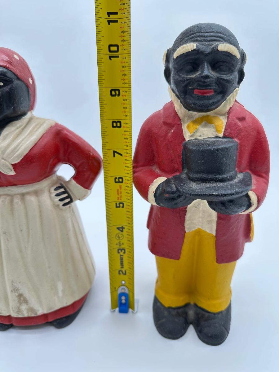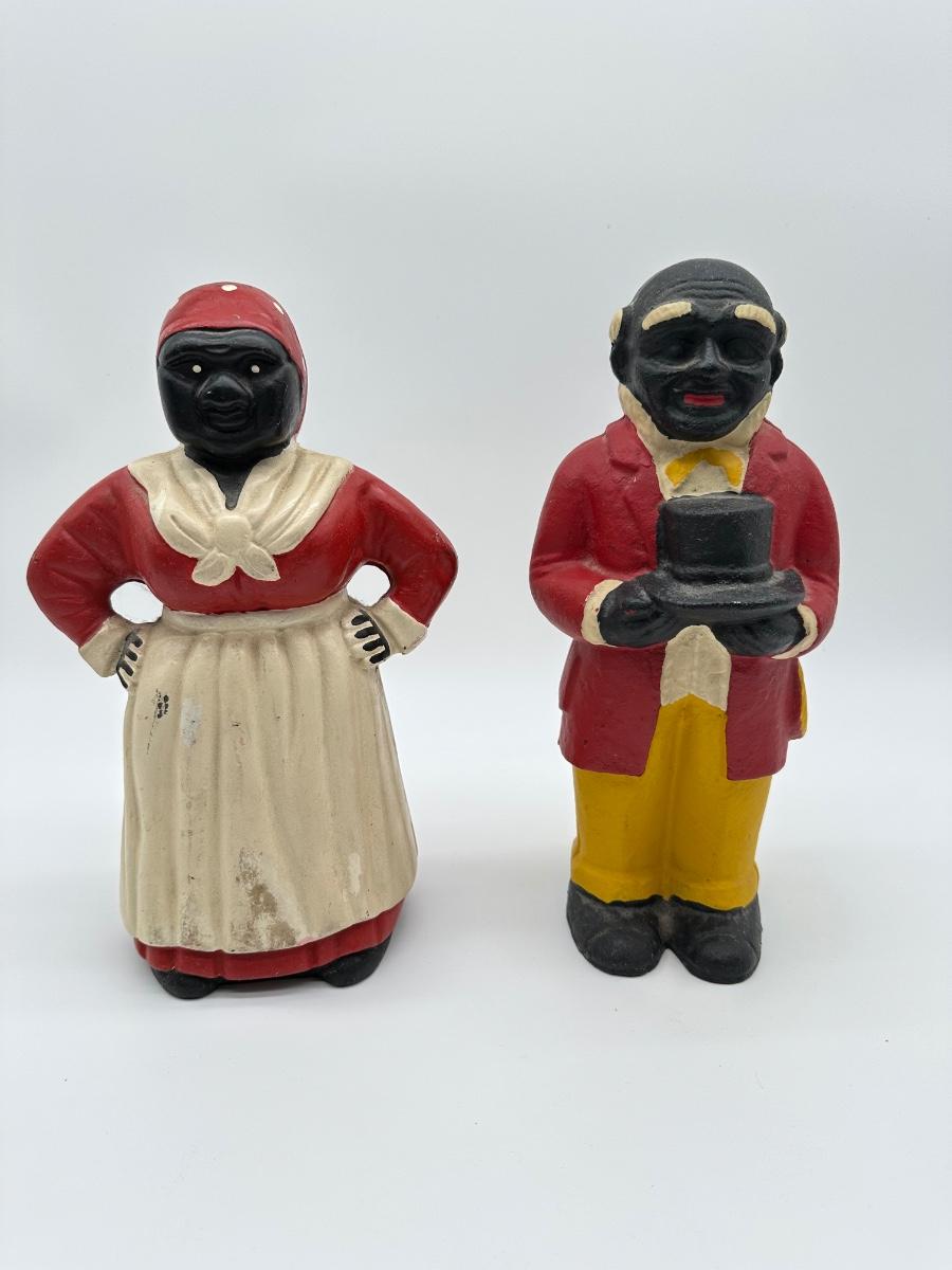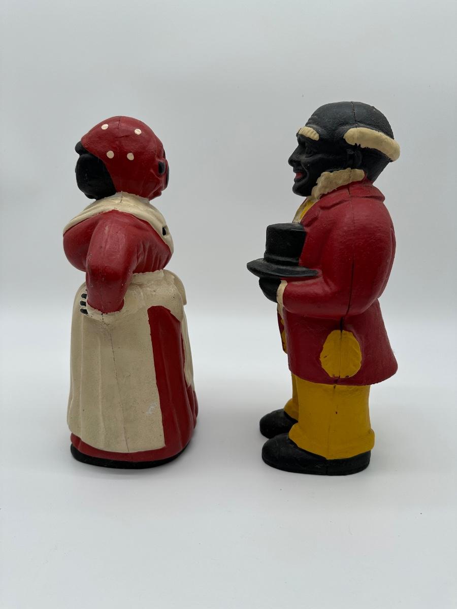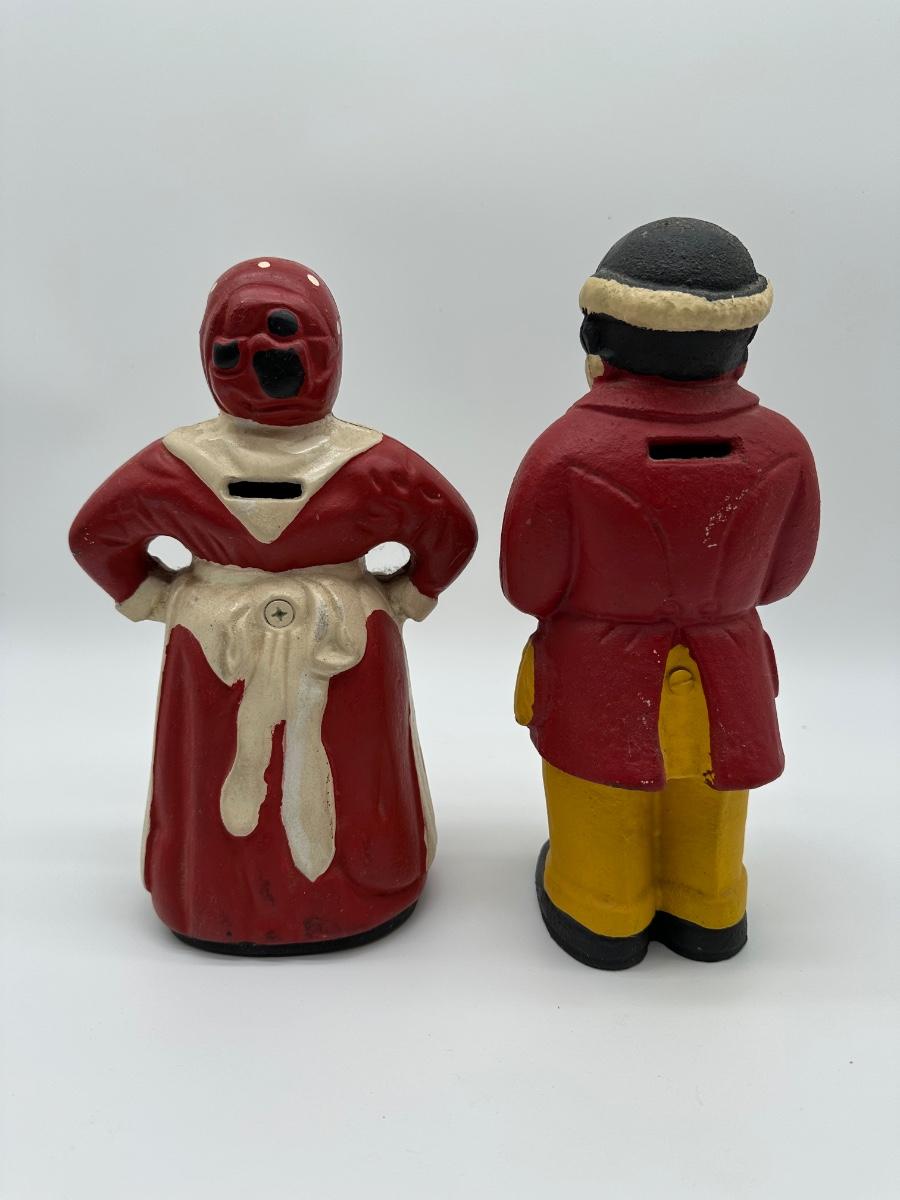 Antique Cast Iron Coin Banks – Pair (Man w/ Hat & Woman Figure)
