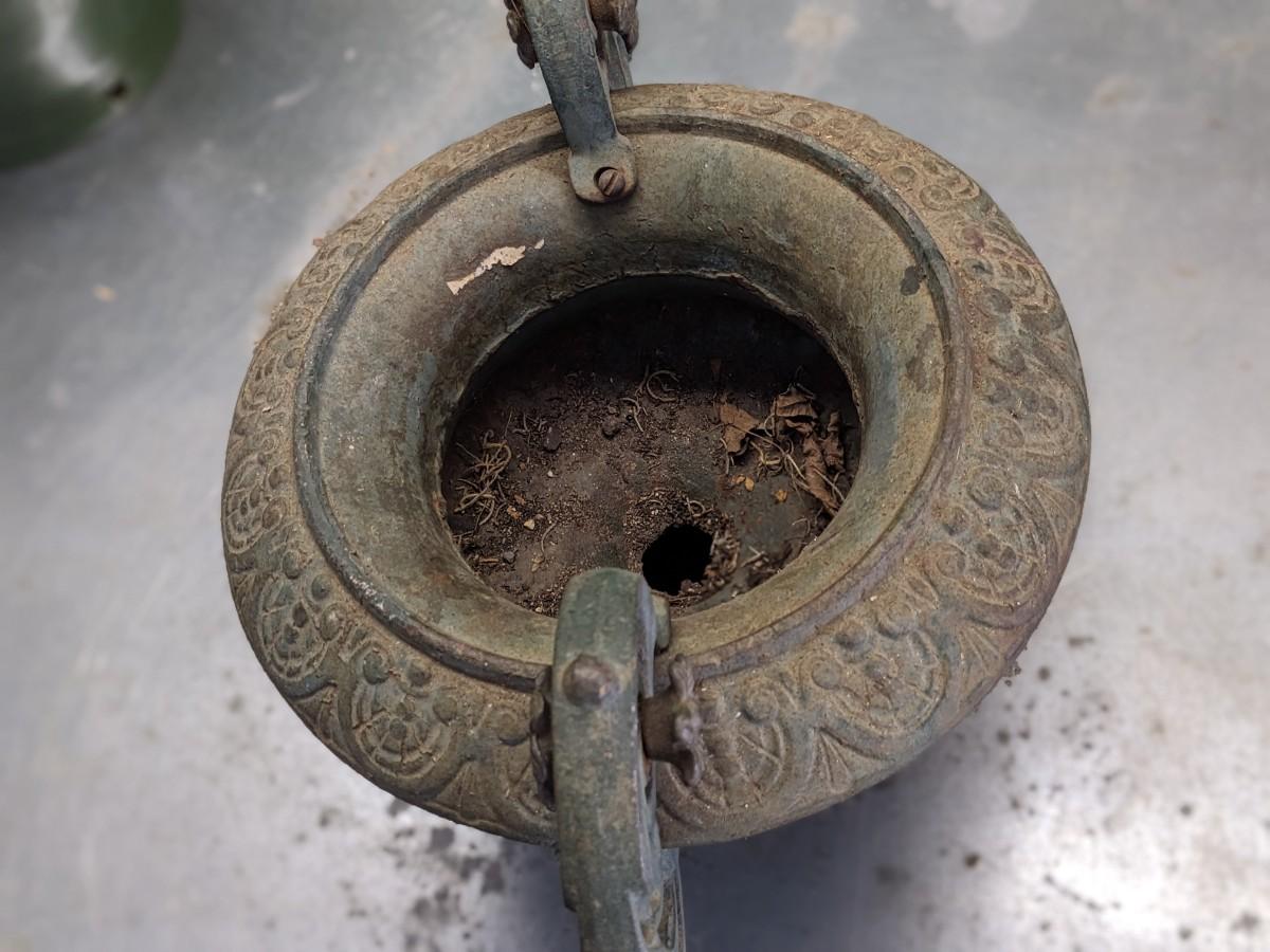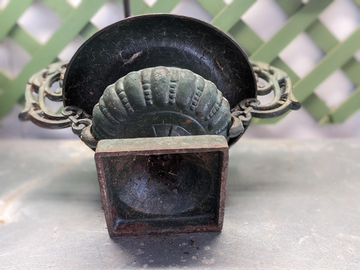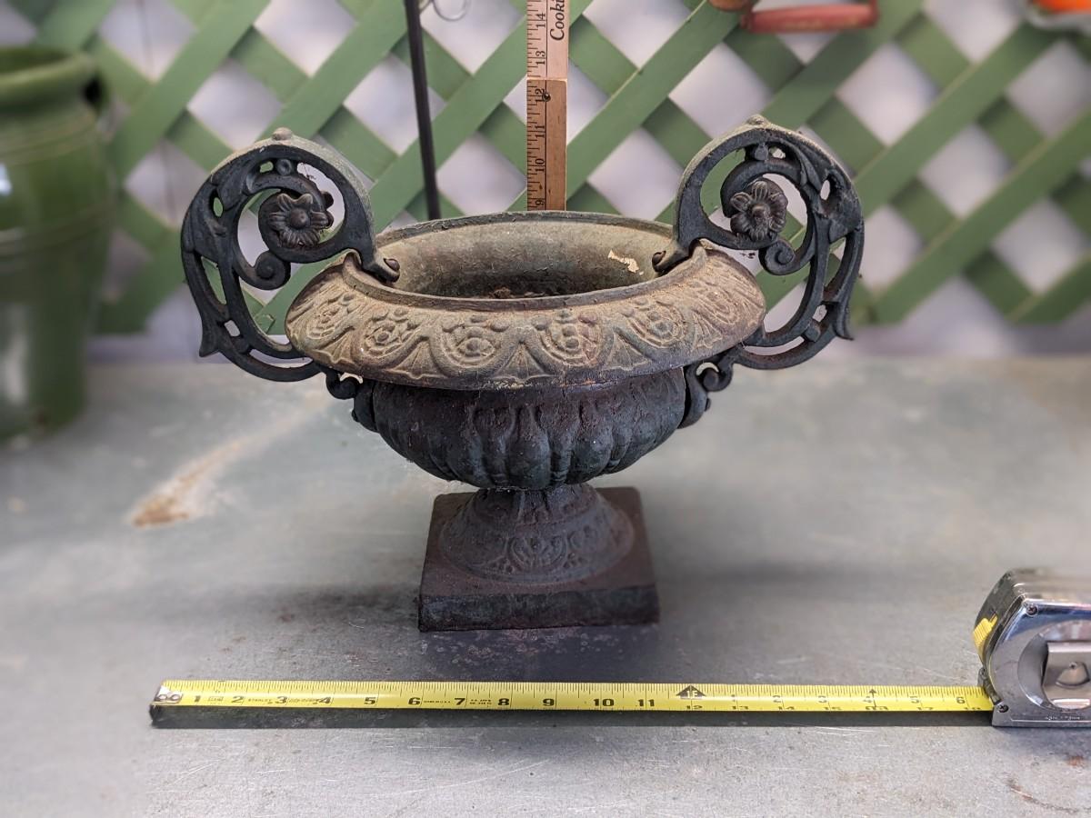 A classic and weighty cast iron Medici vase from the 1900s. This will make a statement in the garden and indoors. Plant with timeless orchids and spring bulbs.