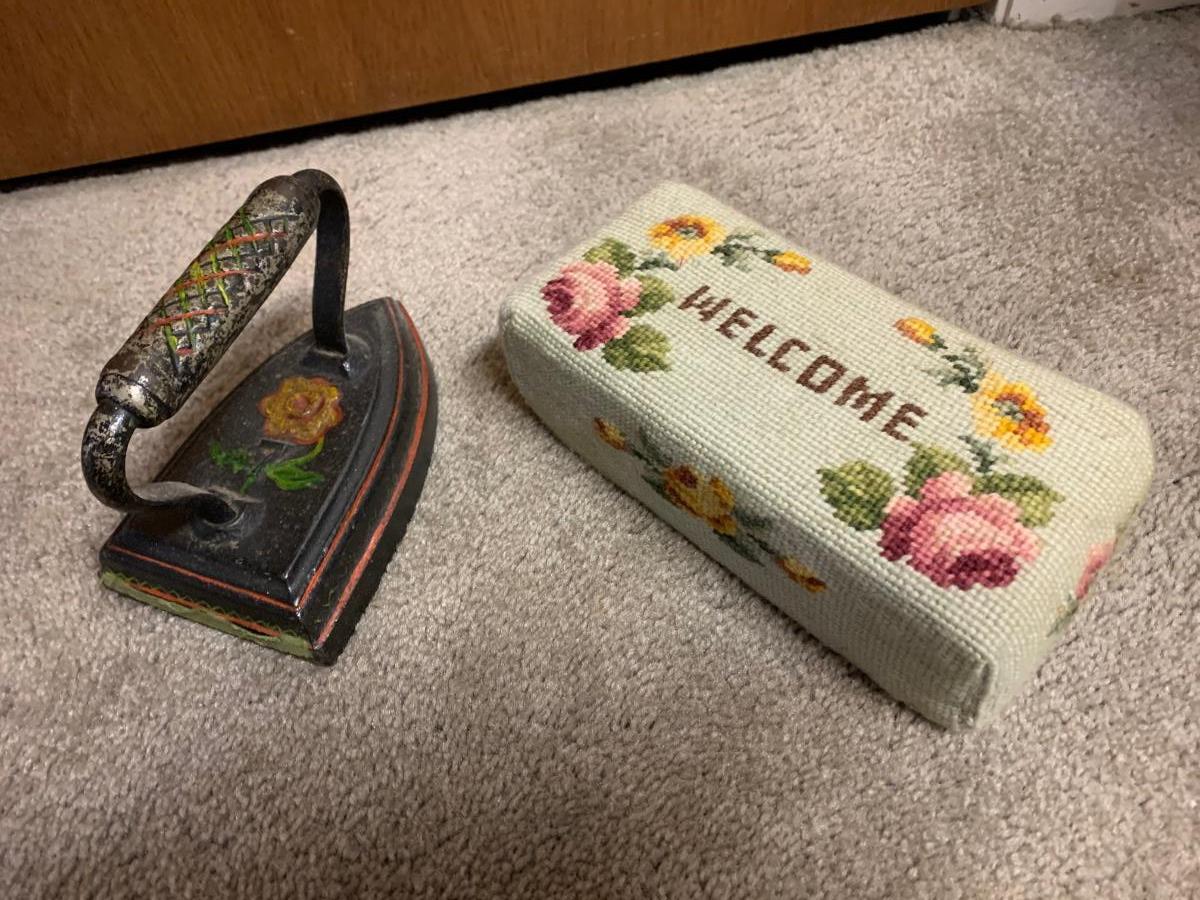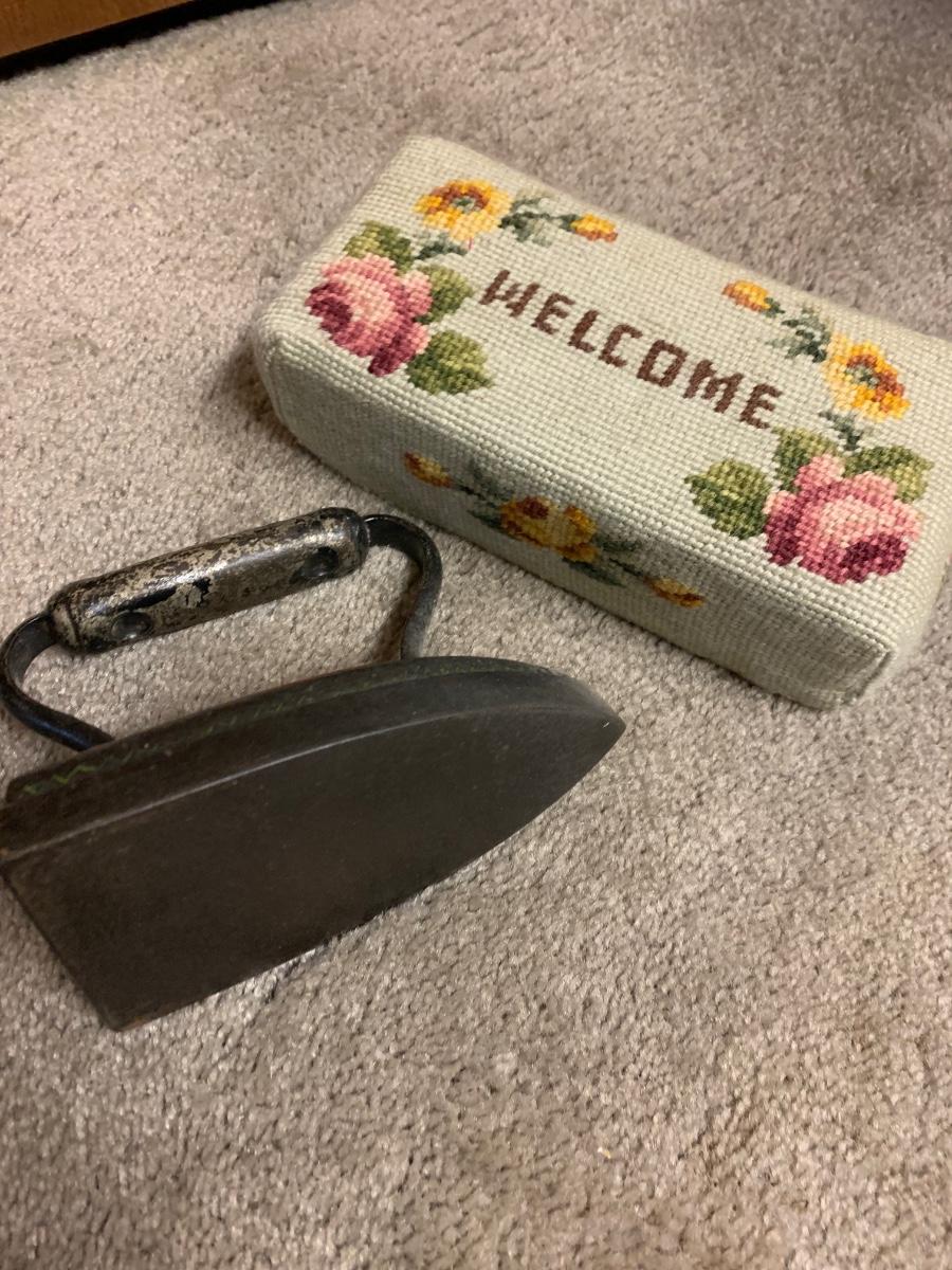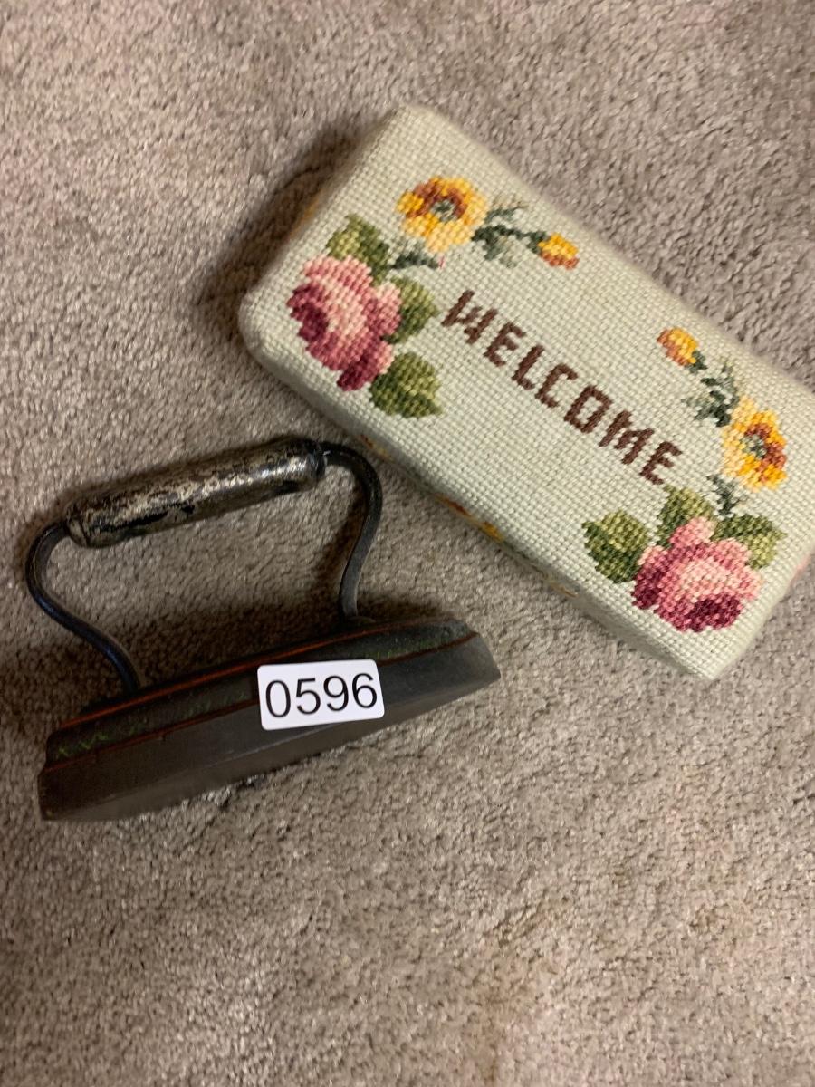 Antique Cast Iron & Needlepoint Brick Doorstops