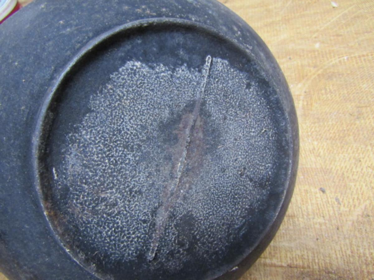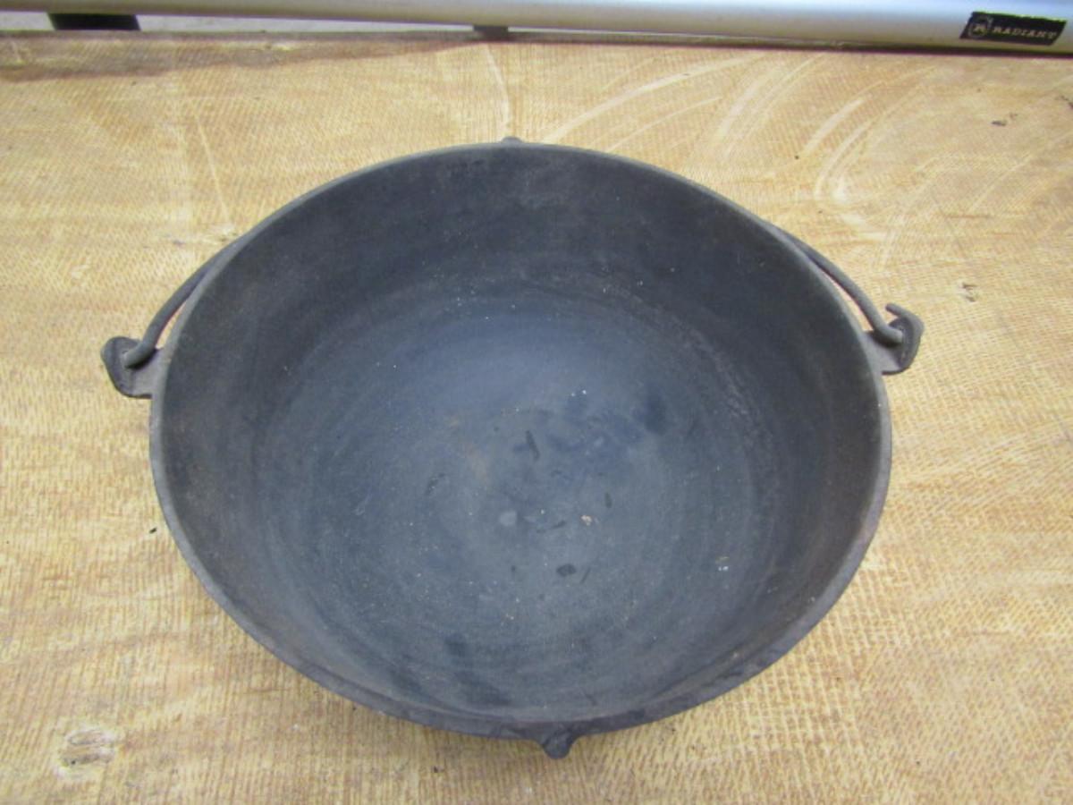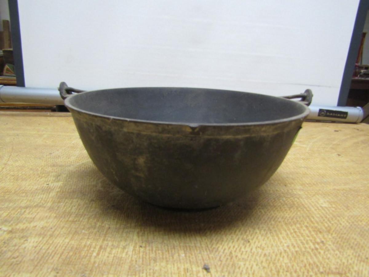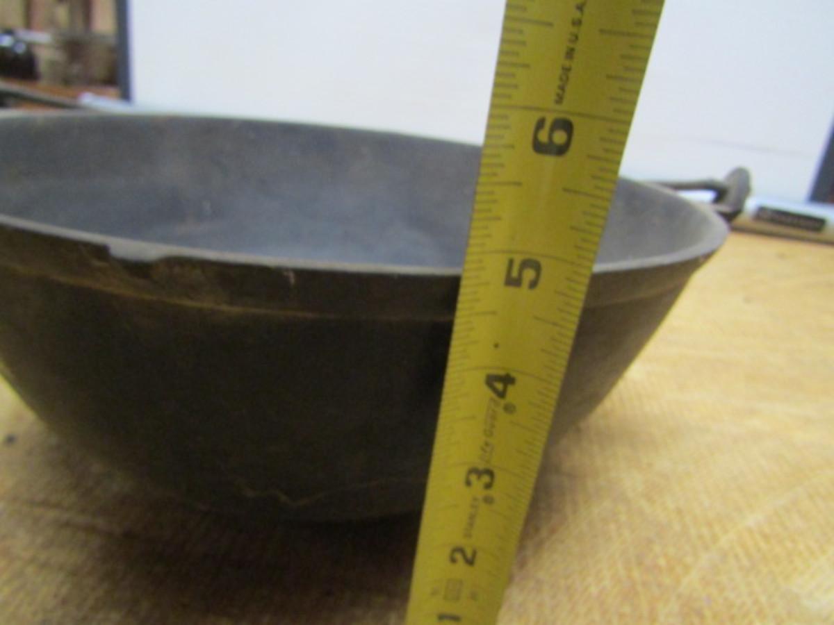 Antique Cast Iron Pot with Cast Mark and Wire Handle- Approx 11" in Diameter, 5" Tall