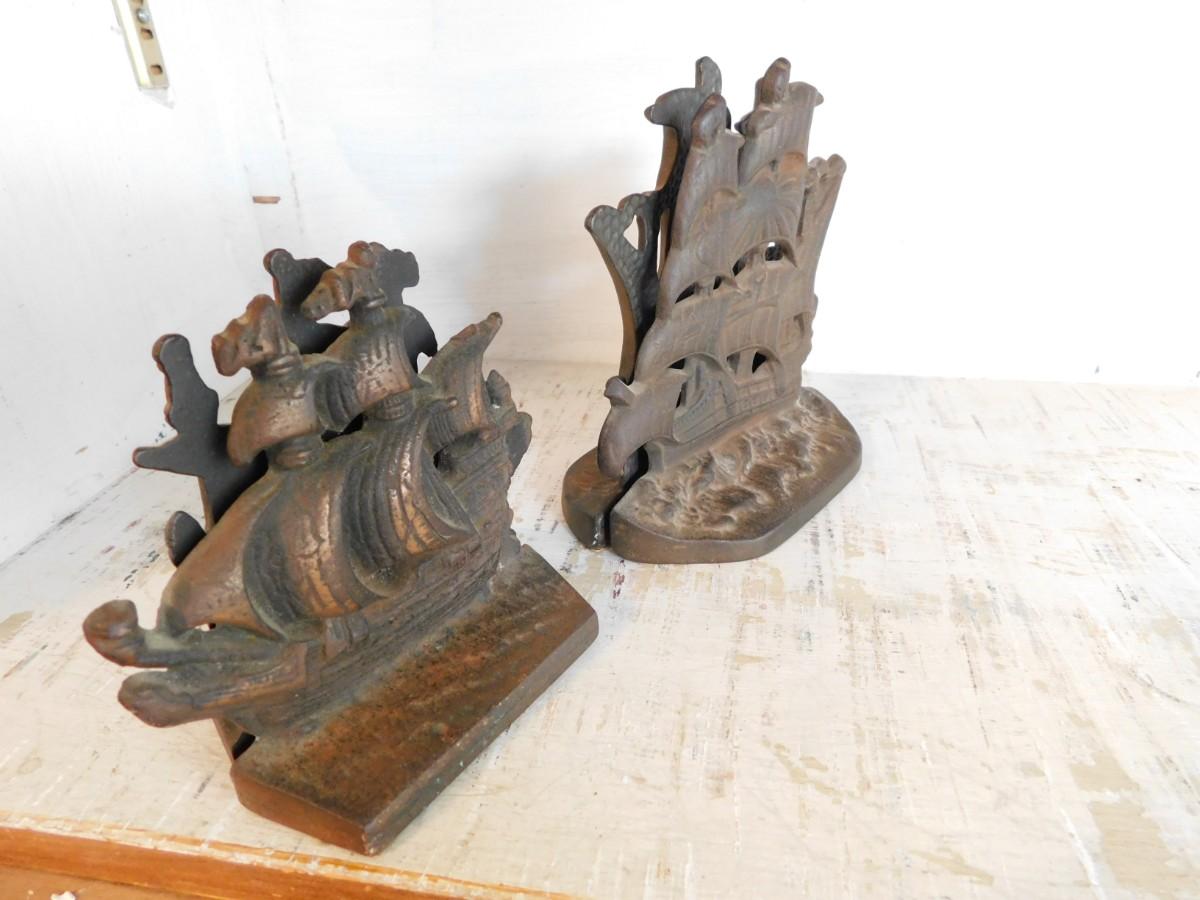 Antique Cast Iron Sailing Ships Nautical Boat Sail Boats Bookends