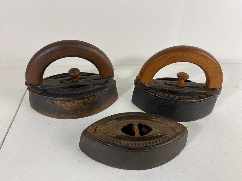 Antique Cast Iron Wood Handle Iron Lot