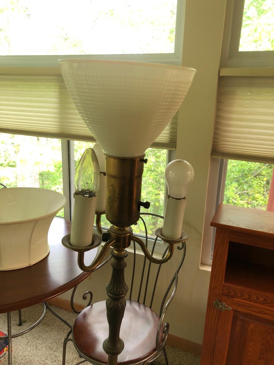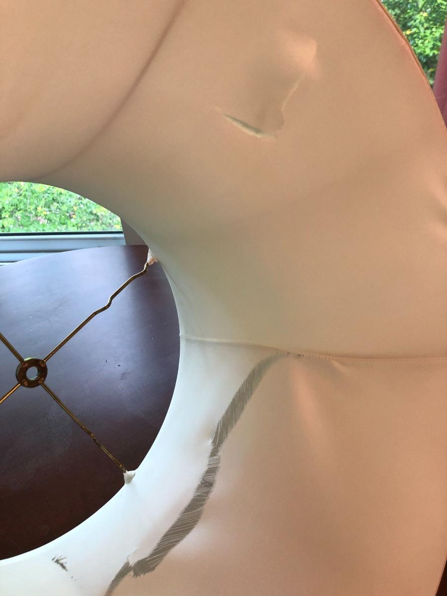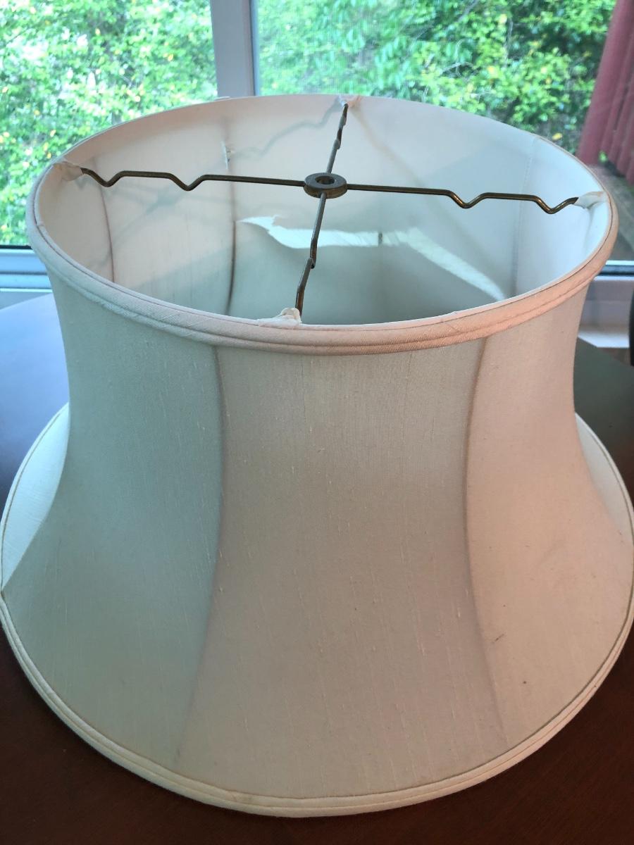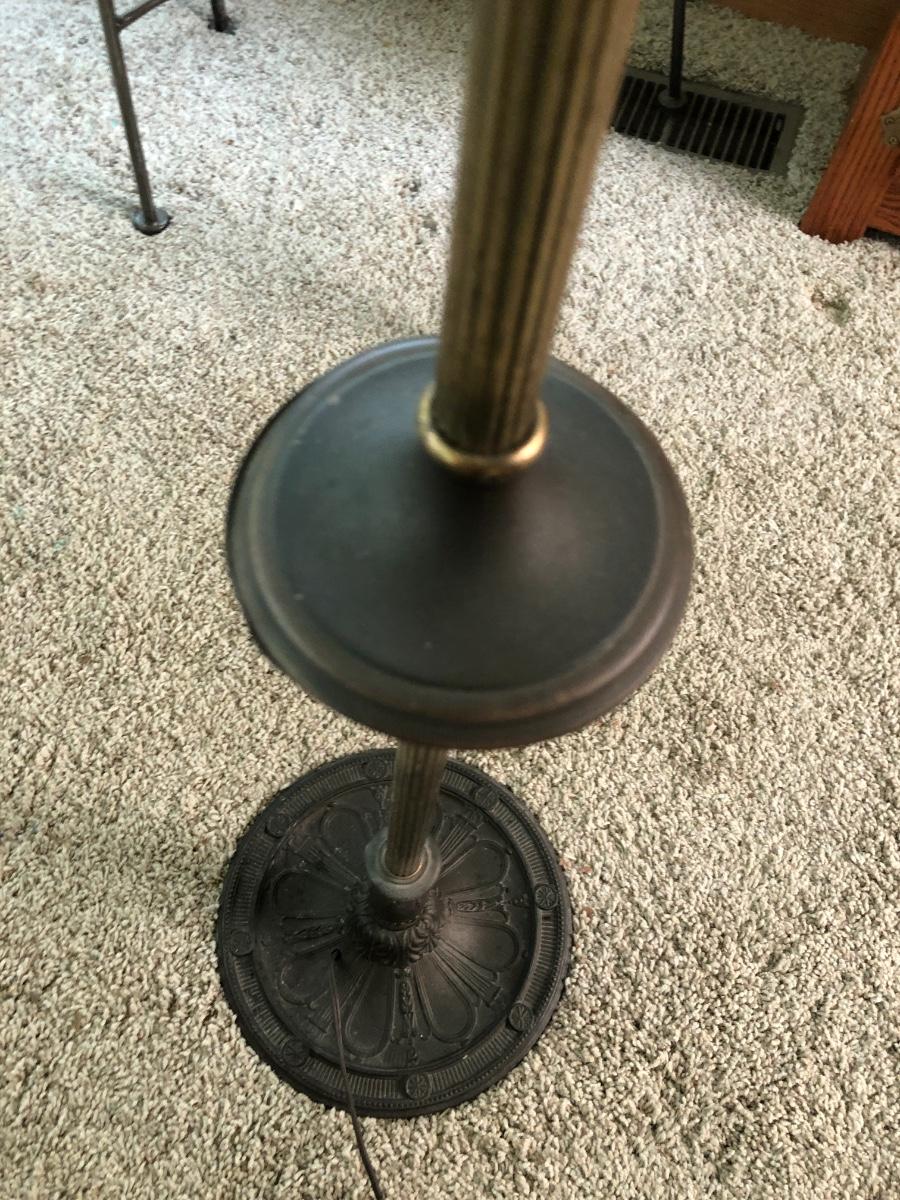 We have added many quality photos for each lot showing content, condition, & dimensions. Feel free to e-mail or text any questions. All items are sold as is, as found in the estate. Please see all photos for content, measurements and condition. Shade is removable, sits on top of glass light shade, Has multiple tears but still including in it the lot,