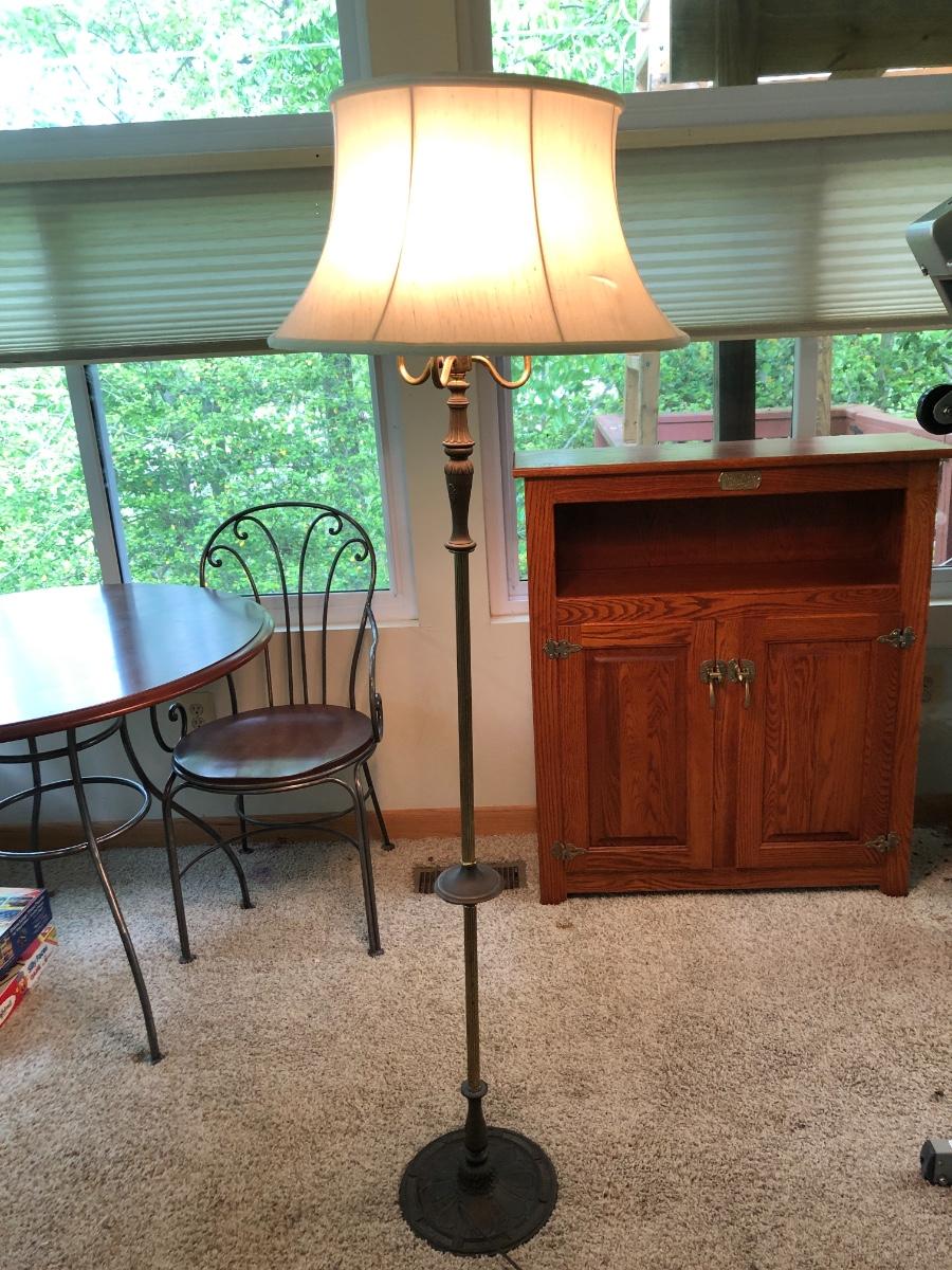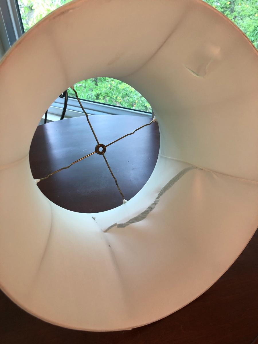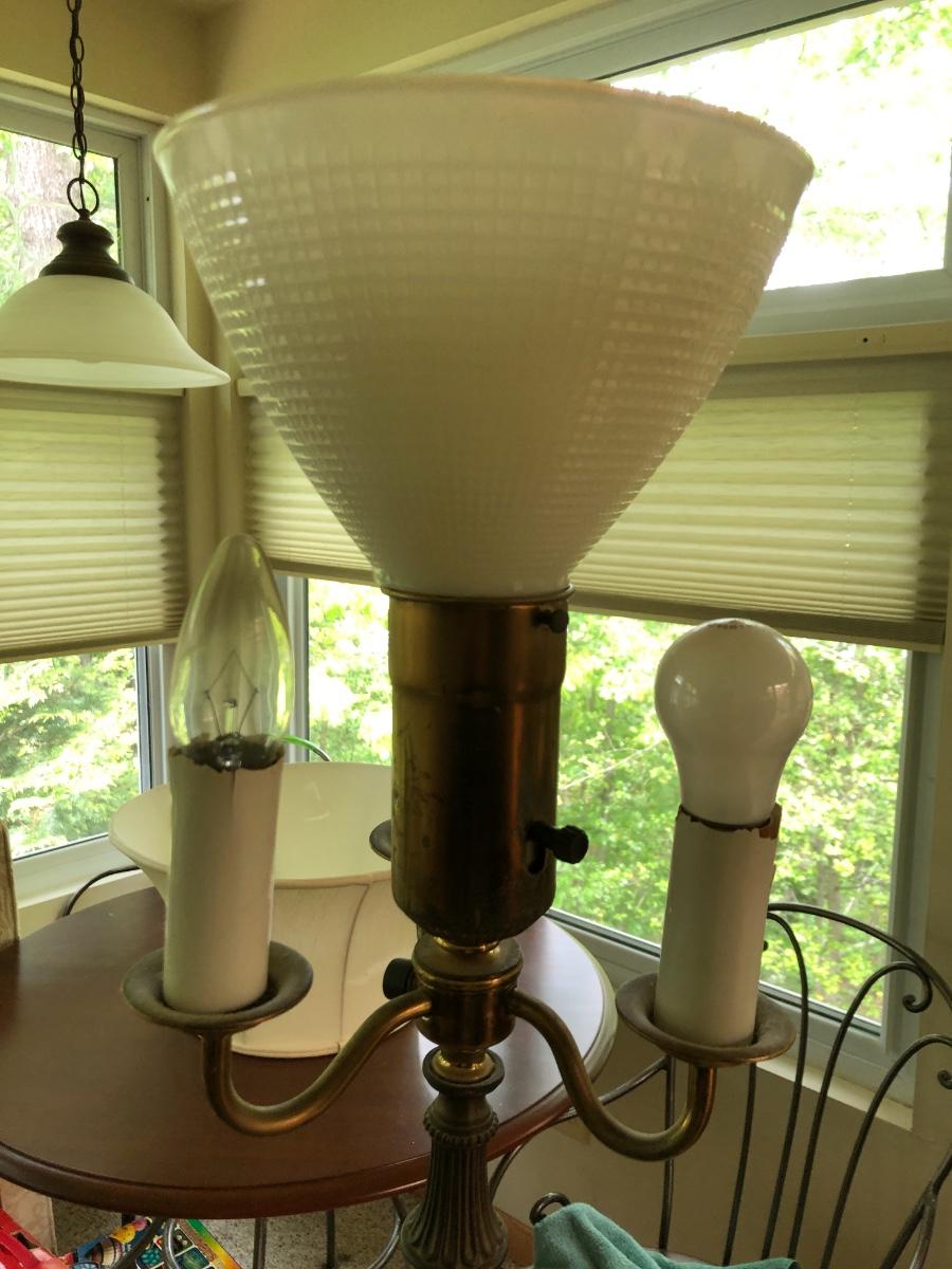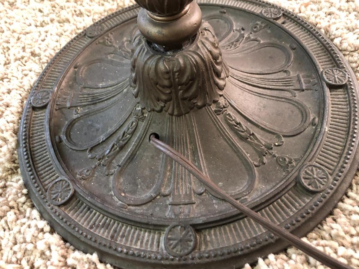We have added many quality photos for each lot showing content, condition, & dimensions. Feel free to e-mail or text any questions. All items are sold as is, as found in the estate. Please see all photos for content, measurements and condition. Shade is removable, sits on top of glass light shade, Has multiple tears but still including in it the lot,