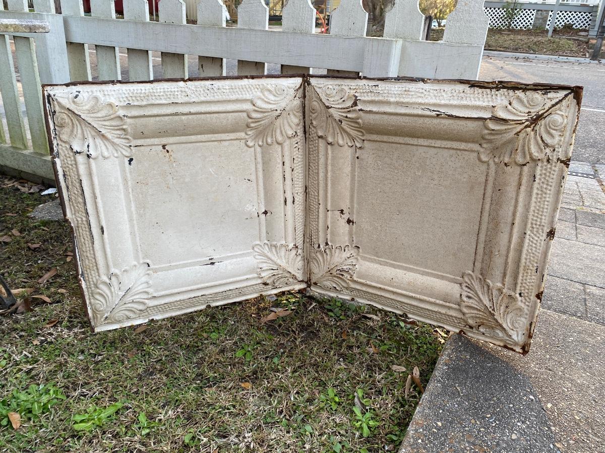 Antique turn-of-the-century ceiling tiles (2 squares; they are connected). approx 24”sq each