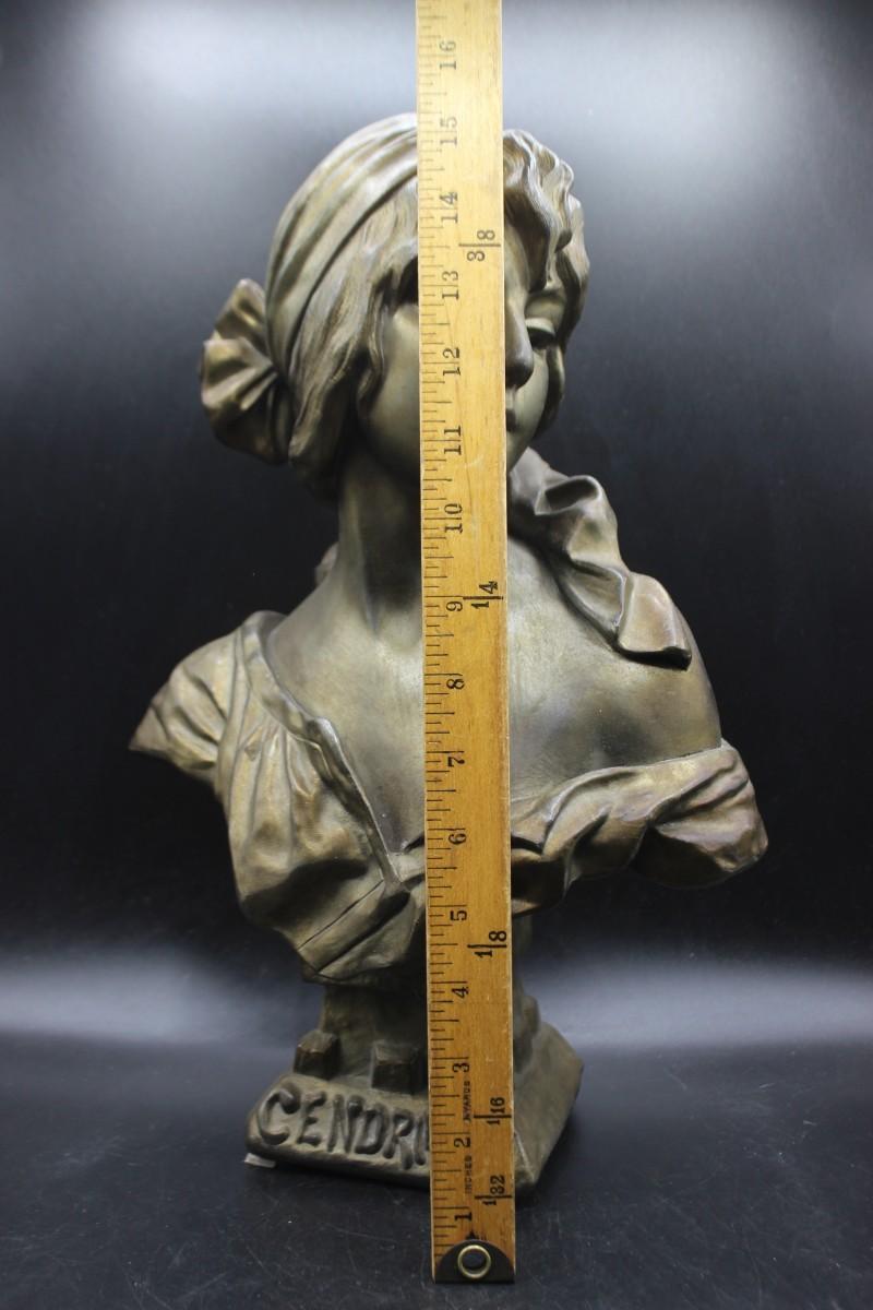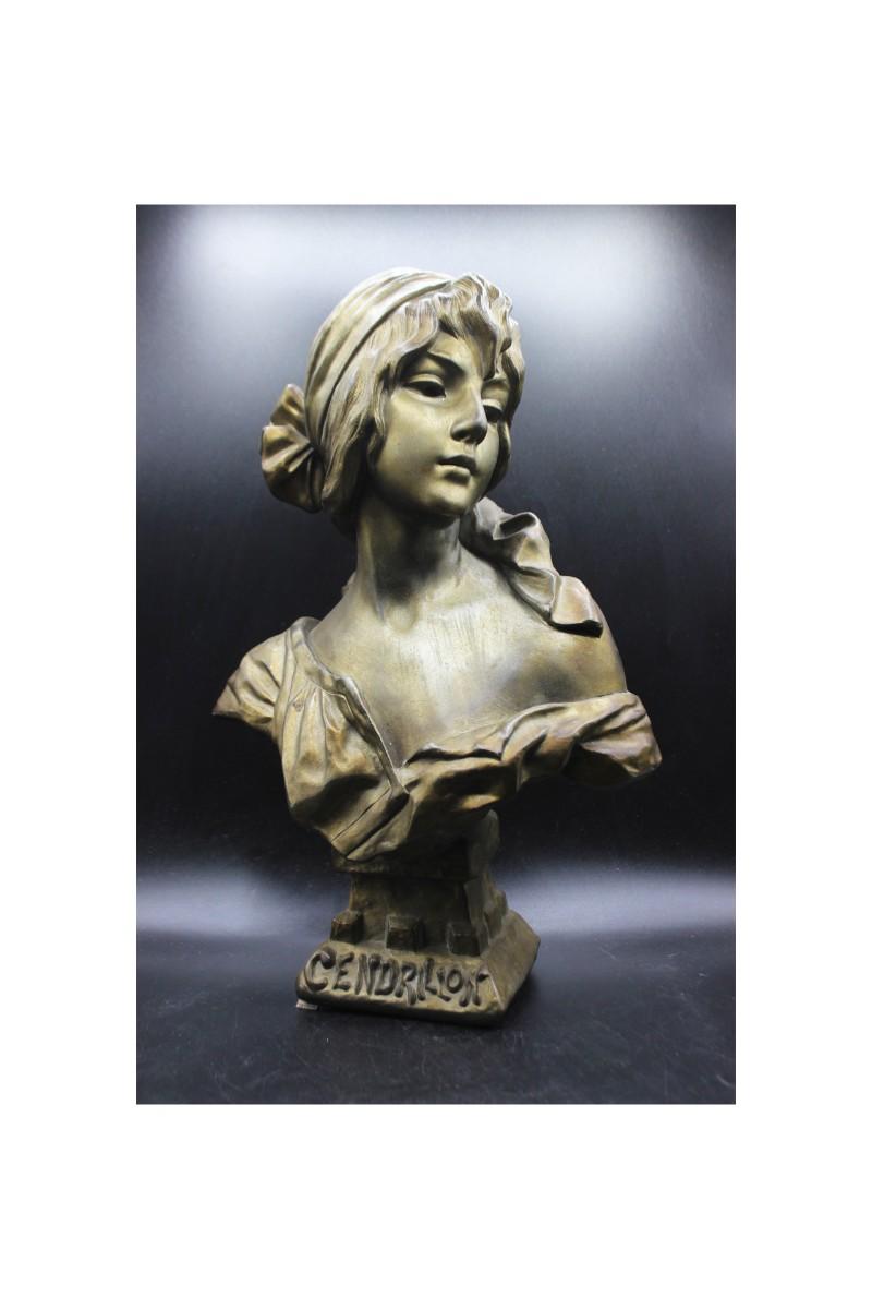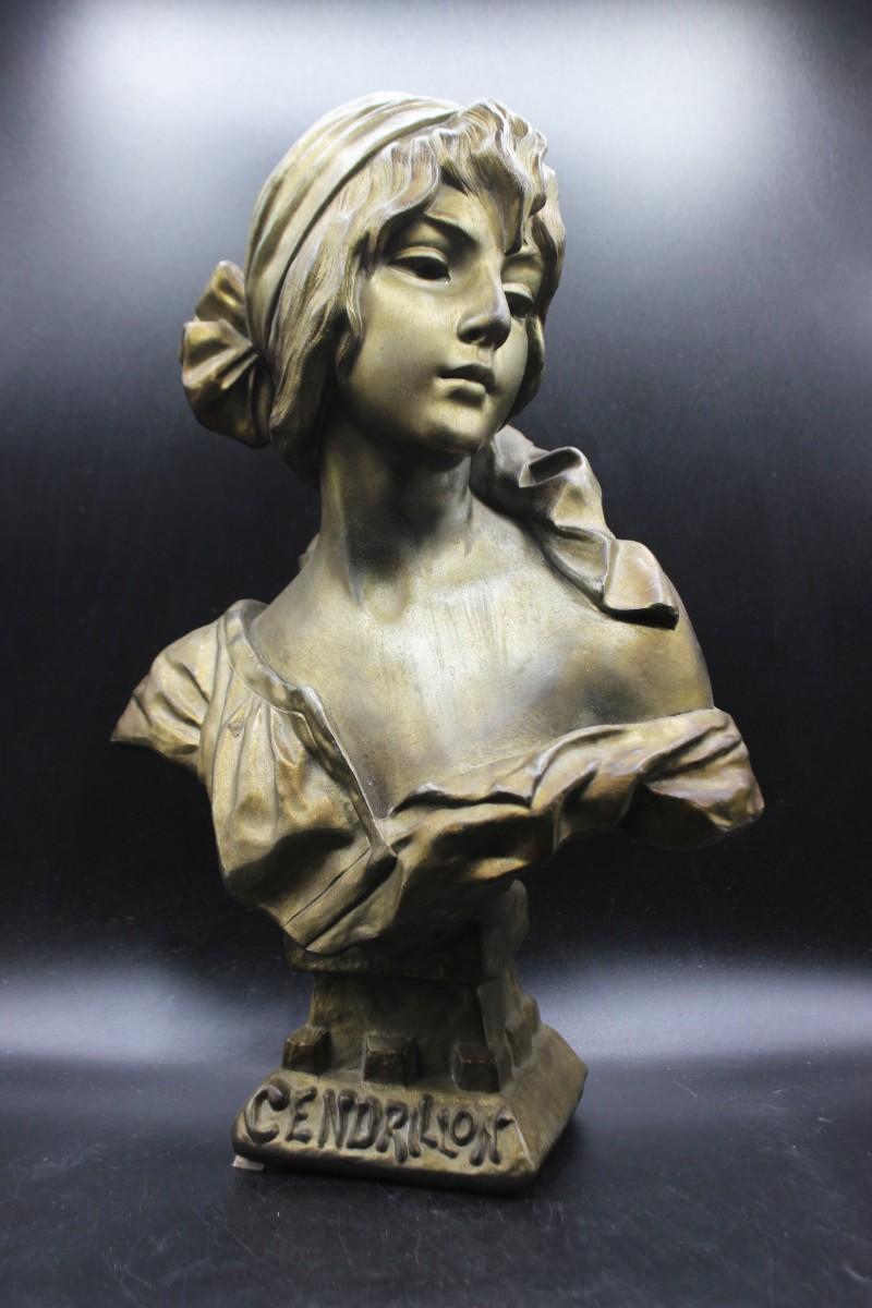 Antique Cendrillion French Bronze Sculpture Bust by Emmanul Villanis