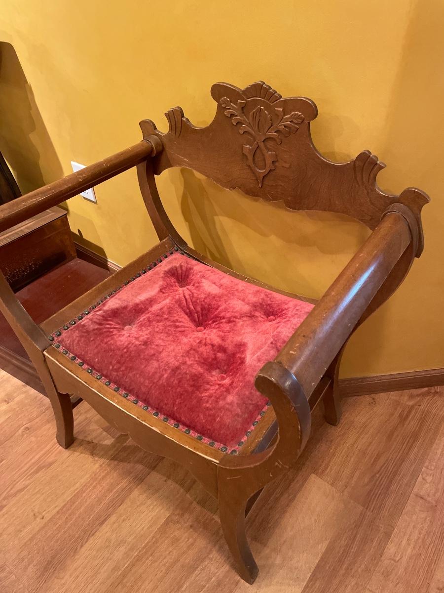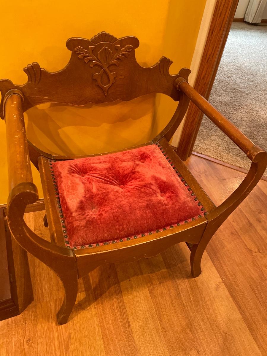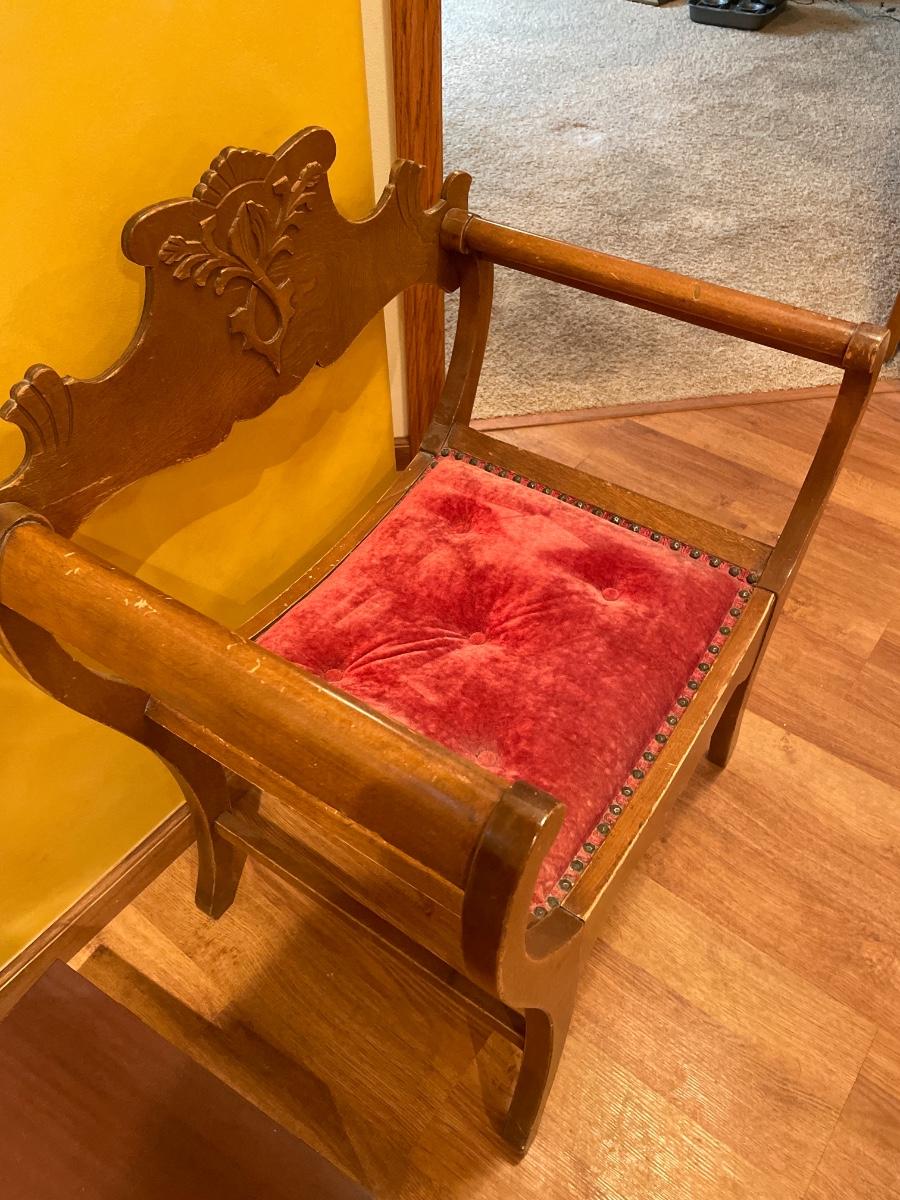 Unique Antique chair with red tuft seat