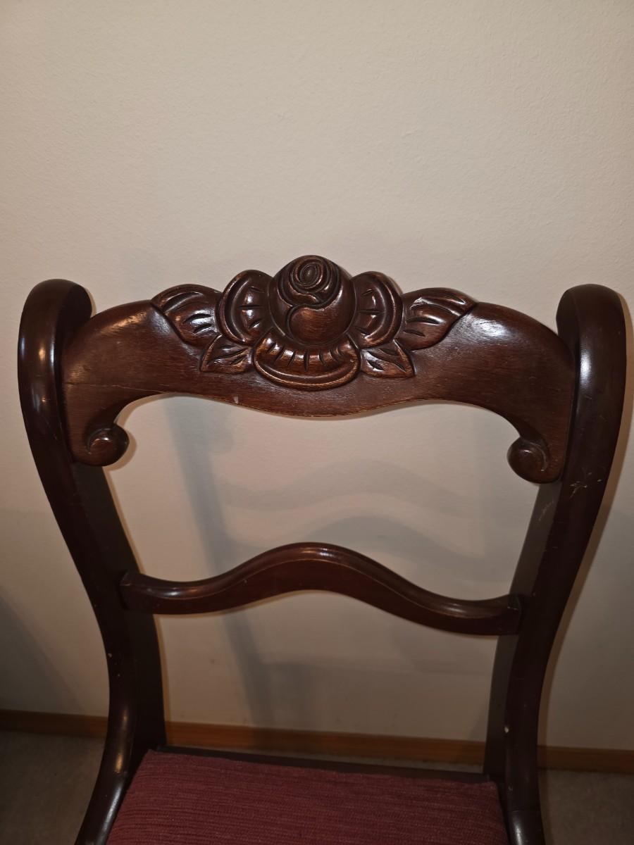 Rose decal. Stands 33 inches tall and seat is 17 wide and 19 deep. Seat height is 17 inches