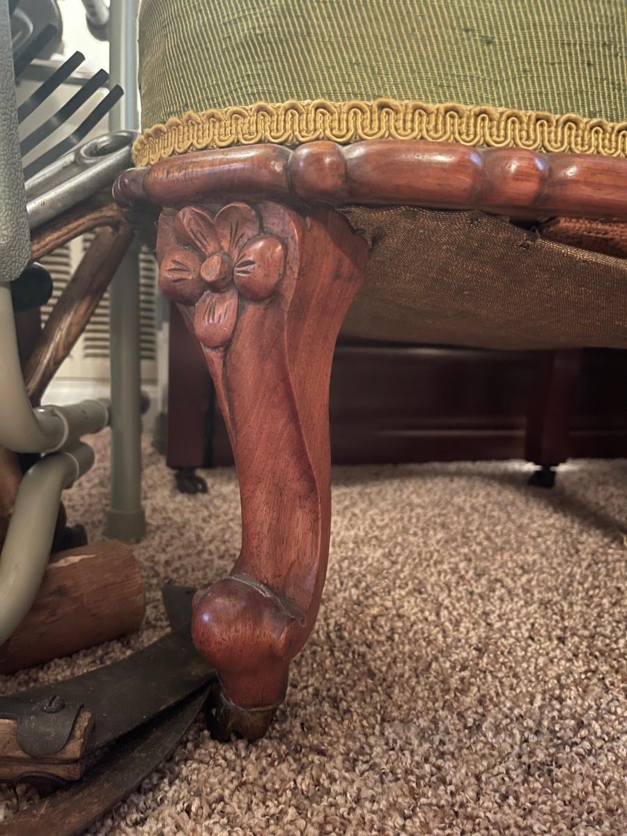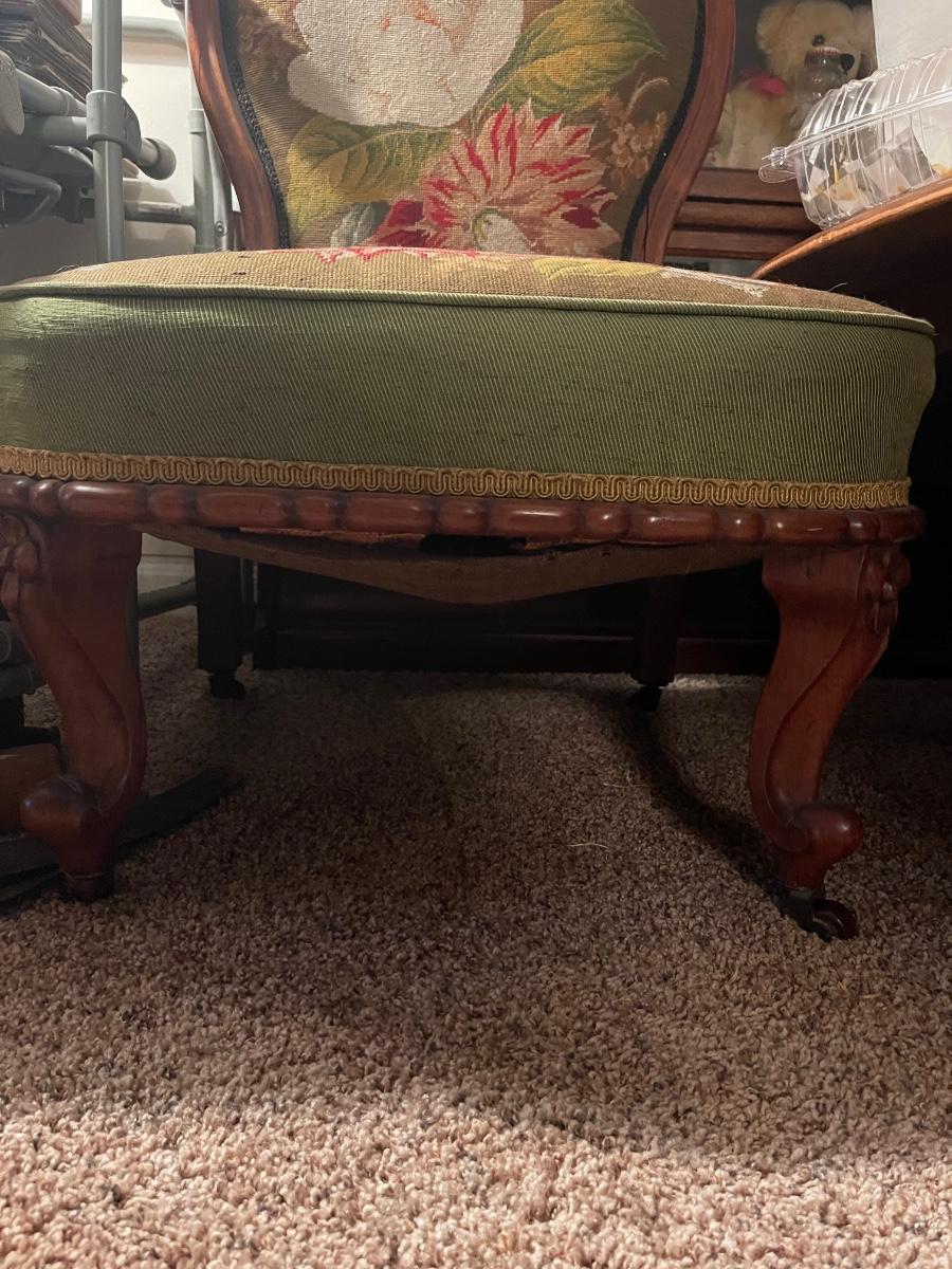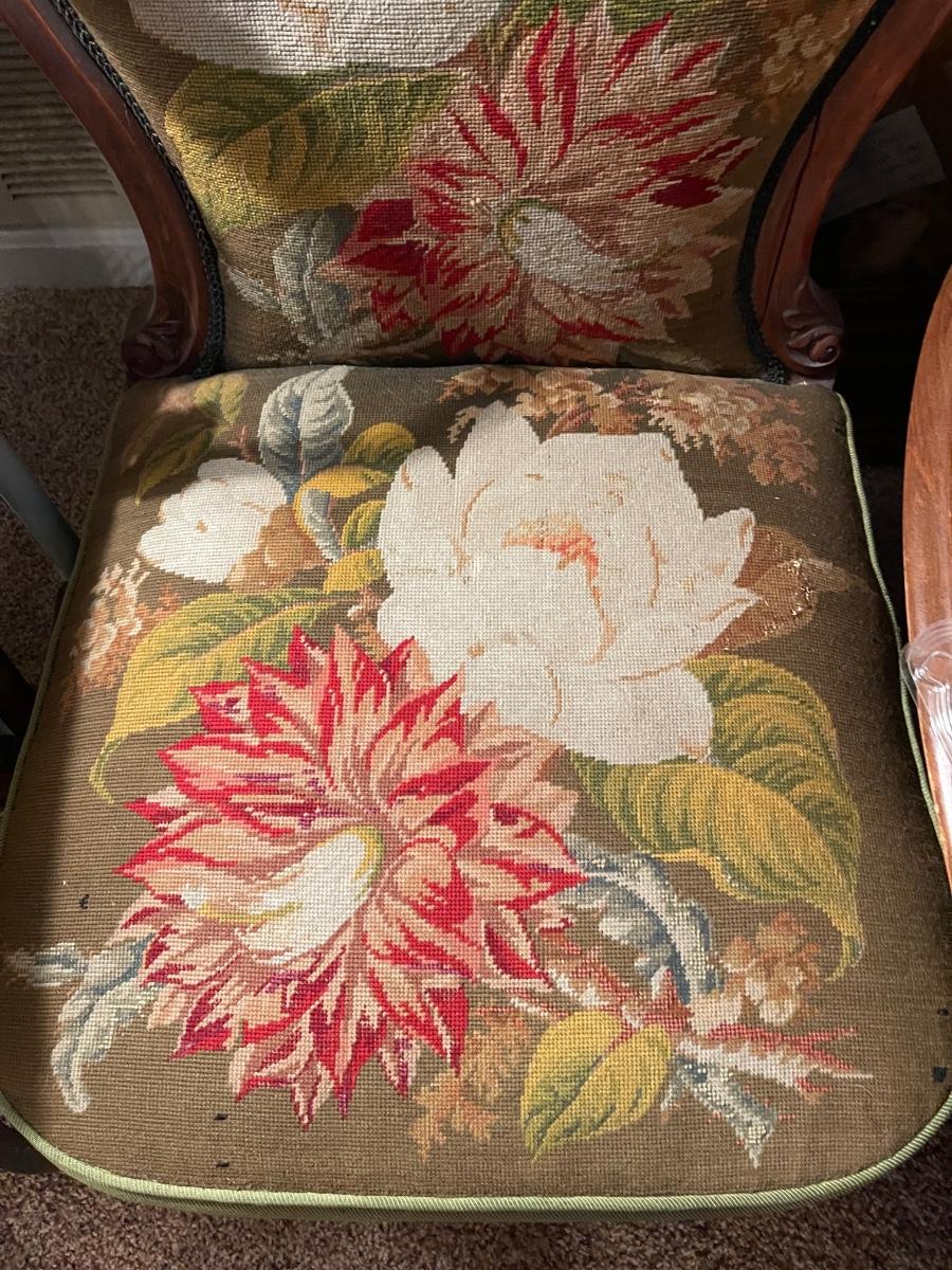 Antique gorgeous wooden upholstered chair. Please note- This item cannot and will NOT be shipped.