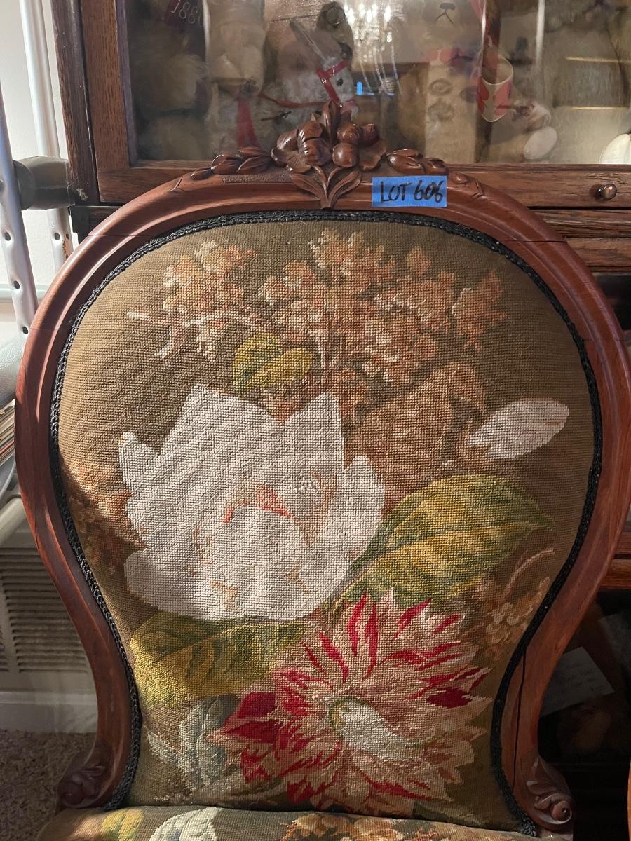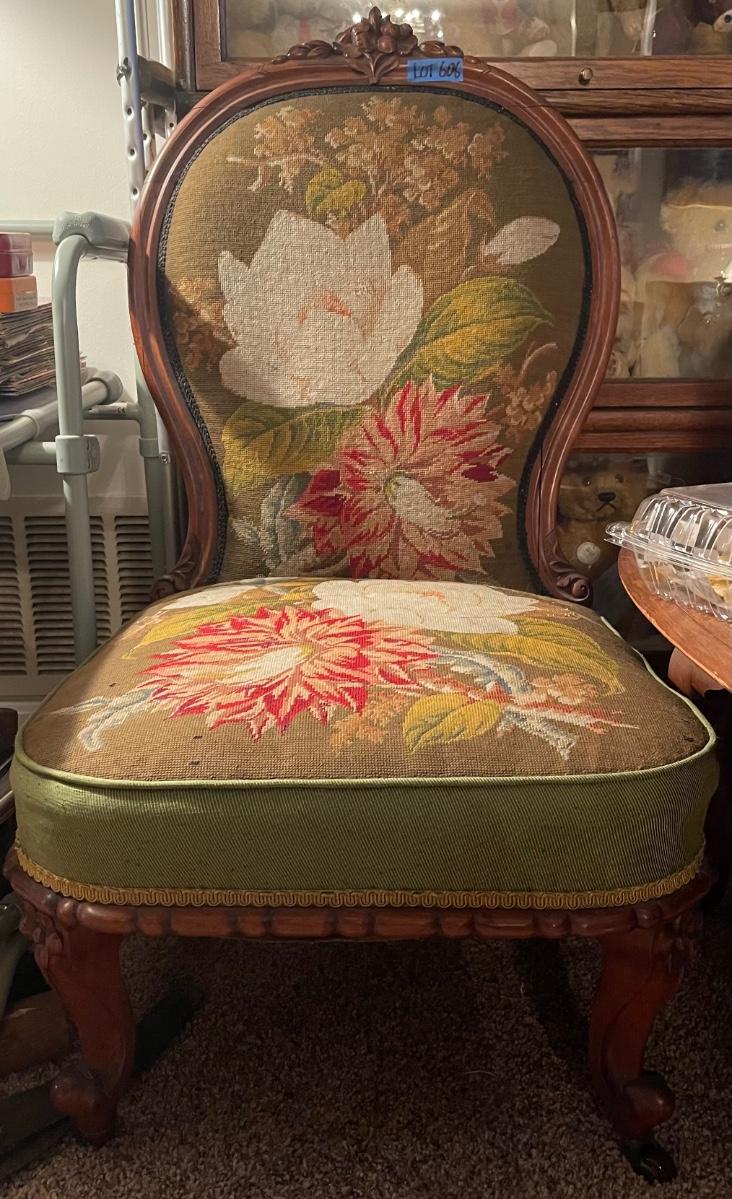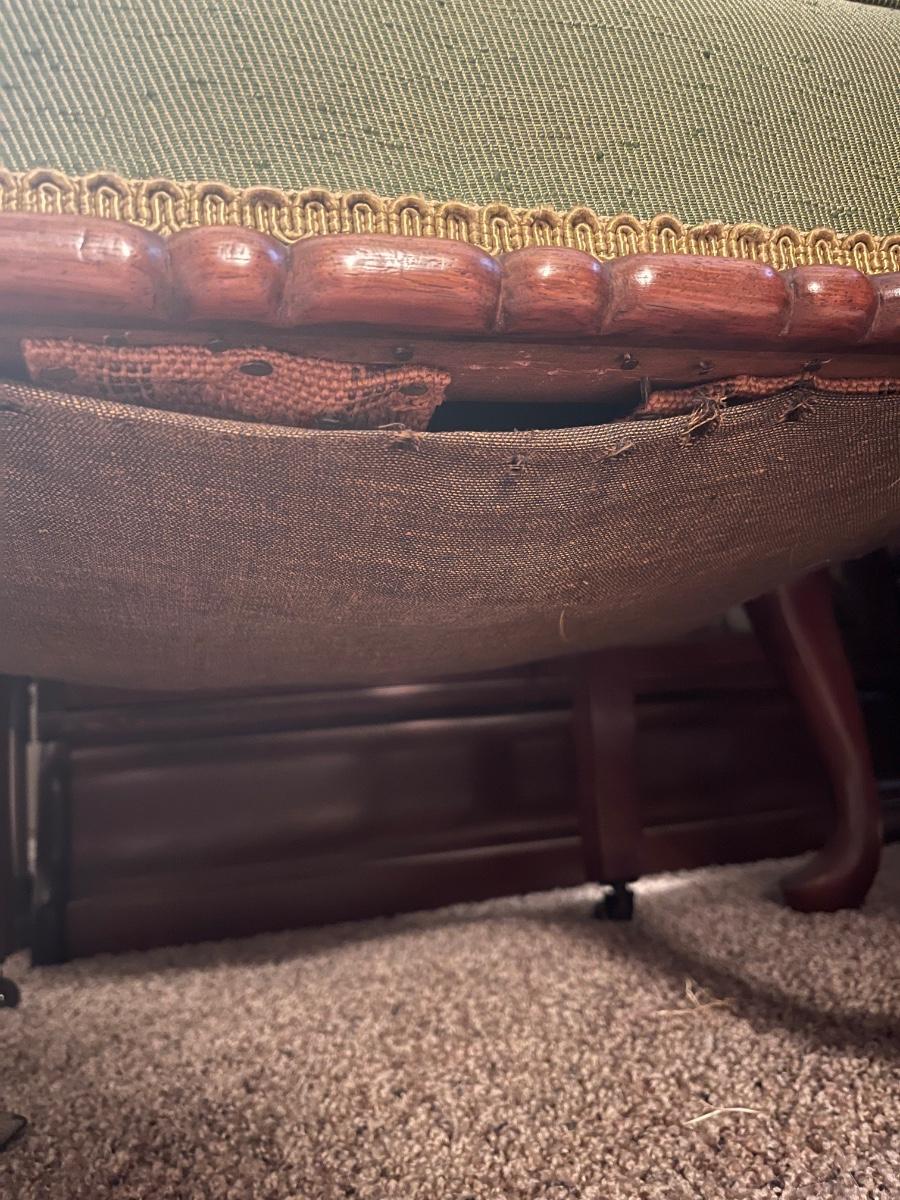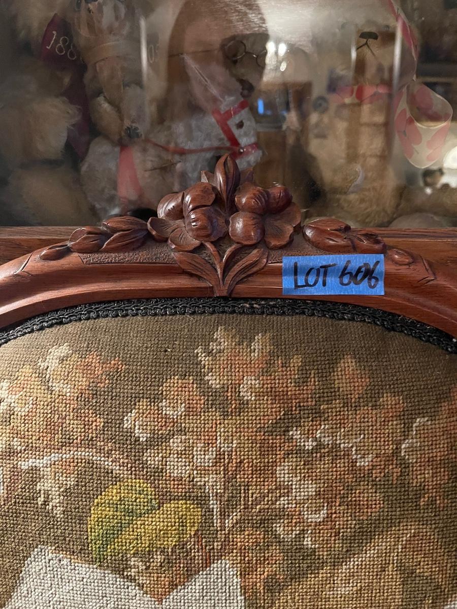 Antique gorgeous wooden upholstered chair. Please note- This item cannot and will NOT be shipped.