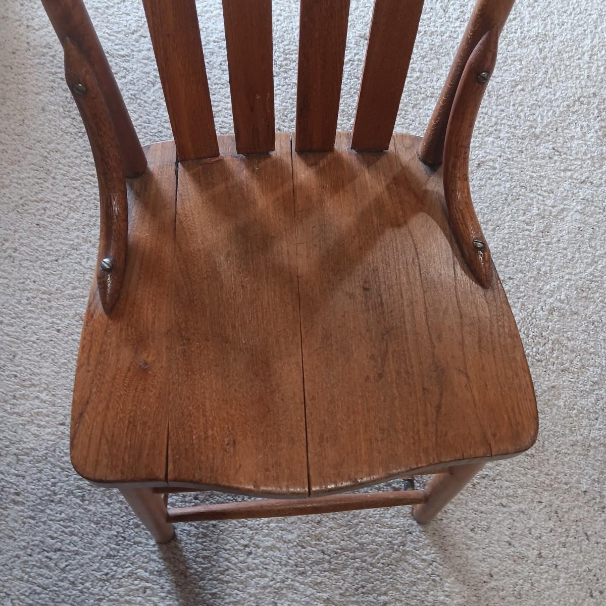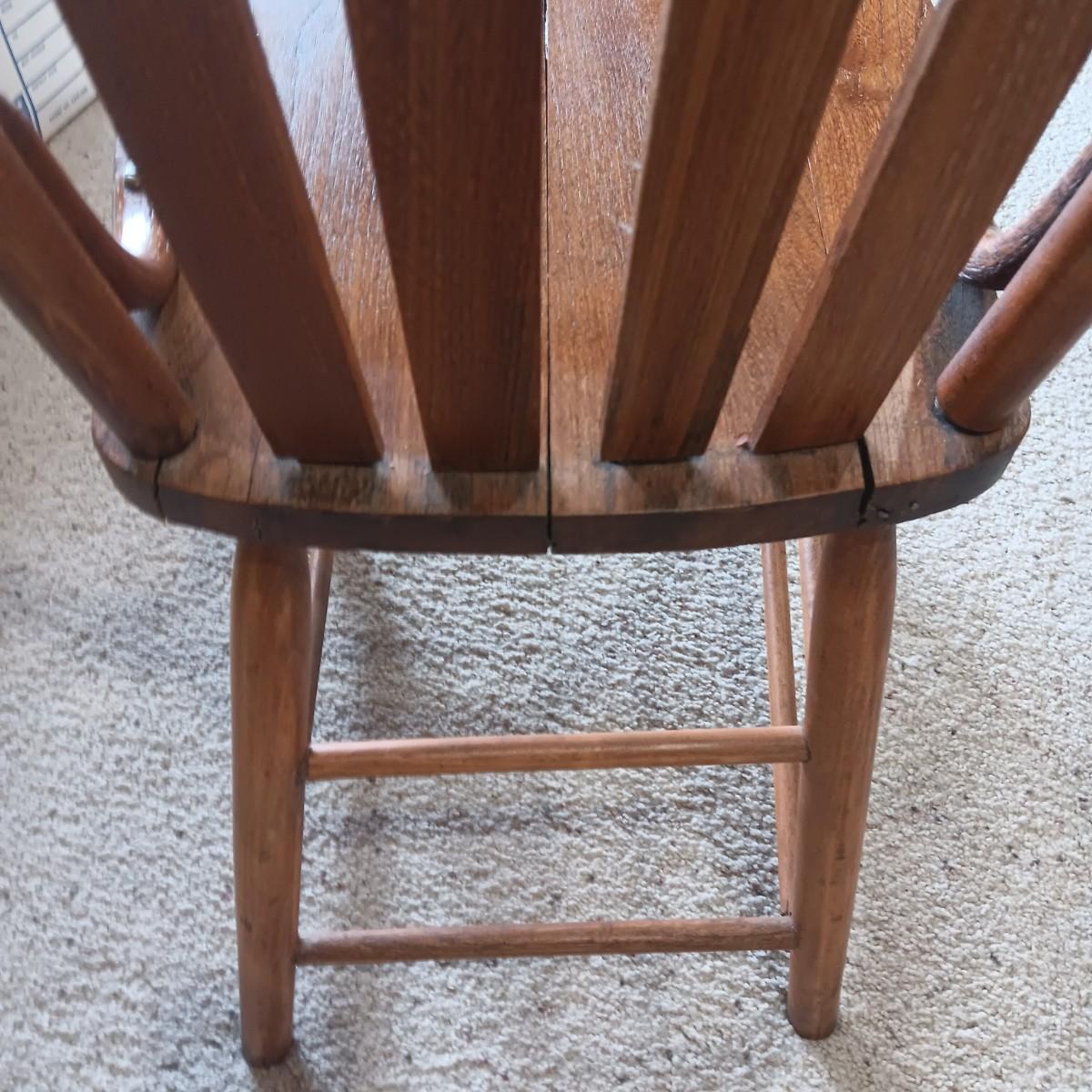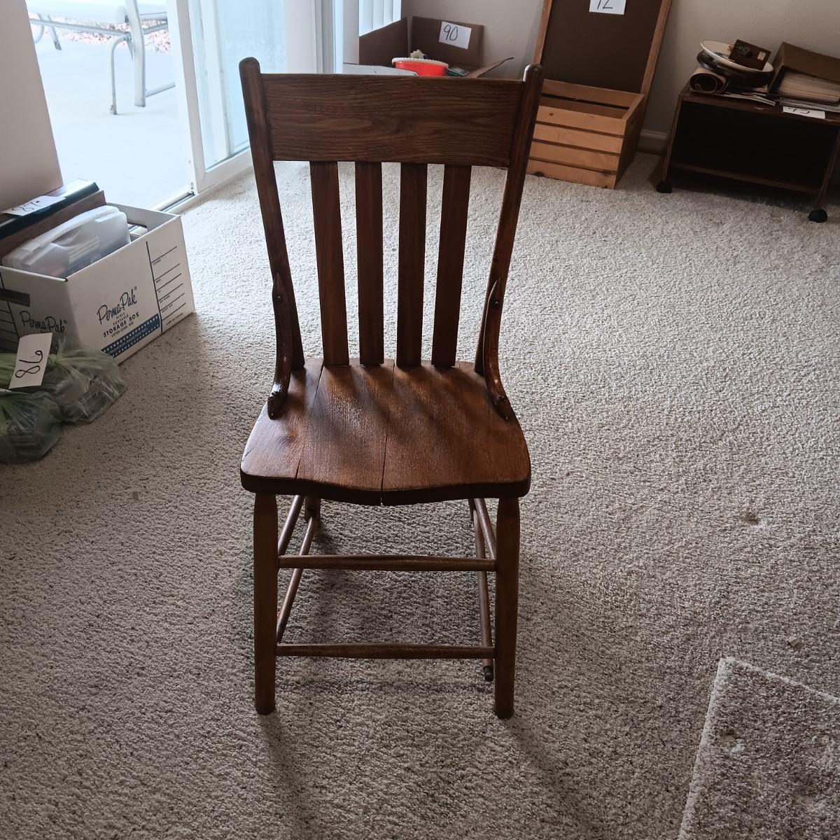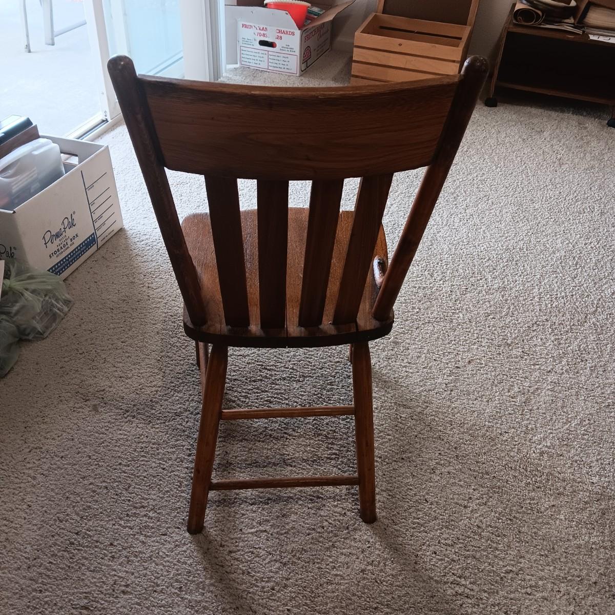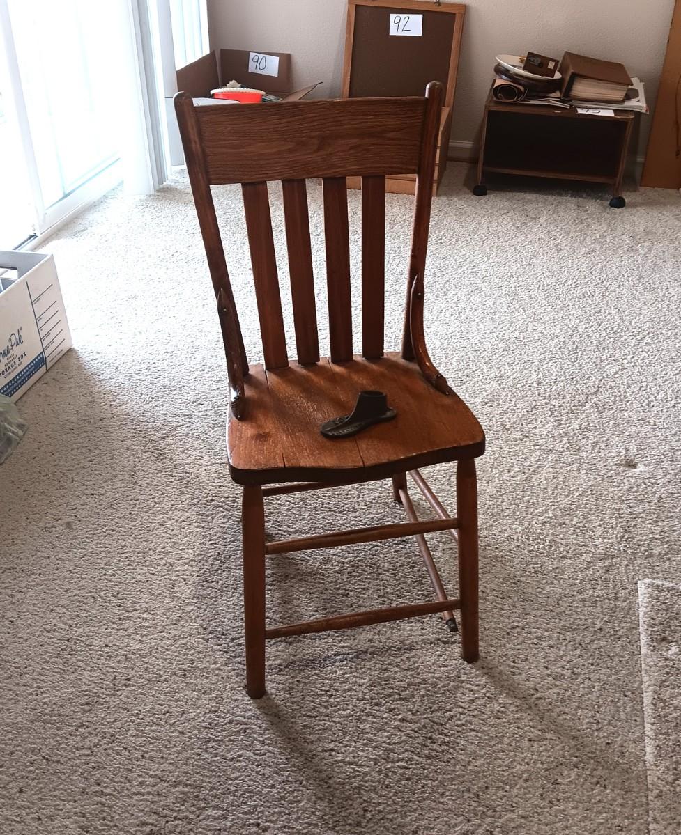 ANTIQUE CHAIR AND SMALL CAST IRON SHOE FORM