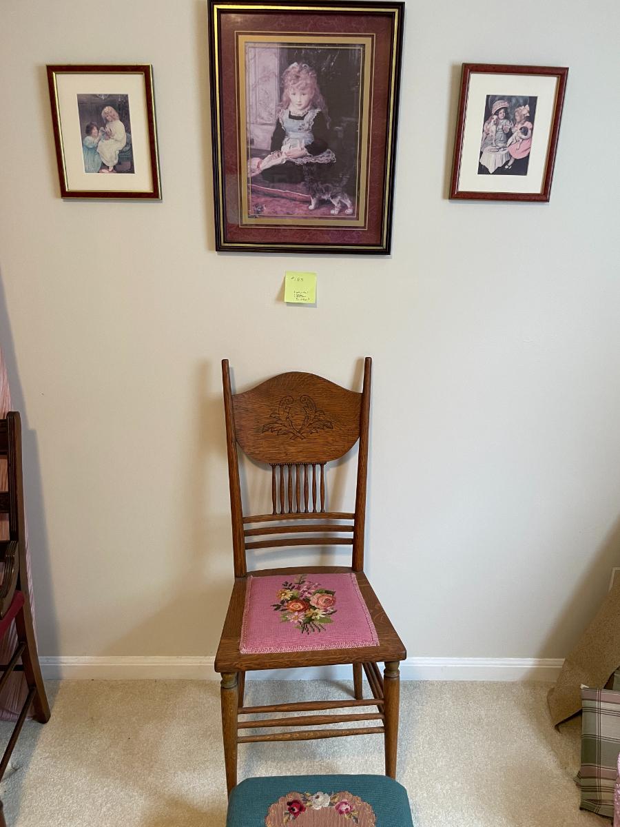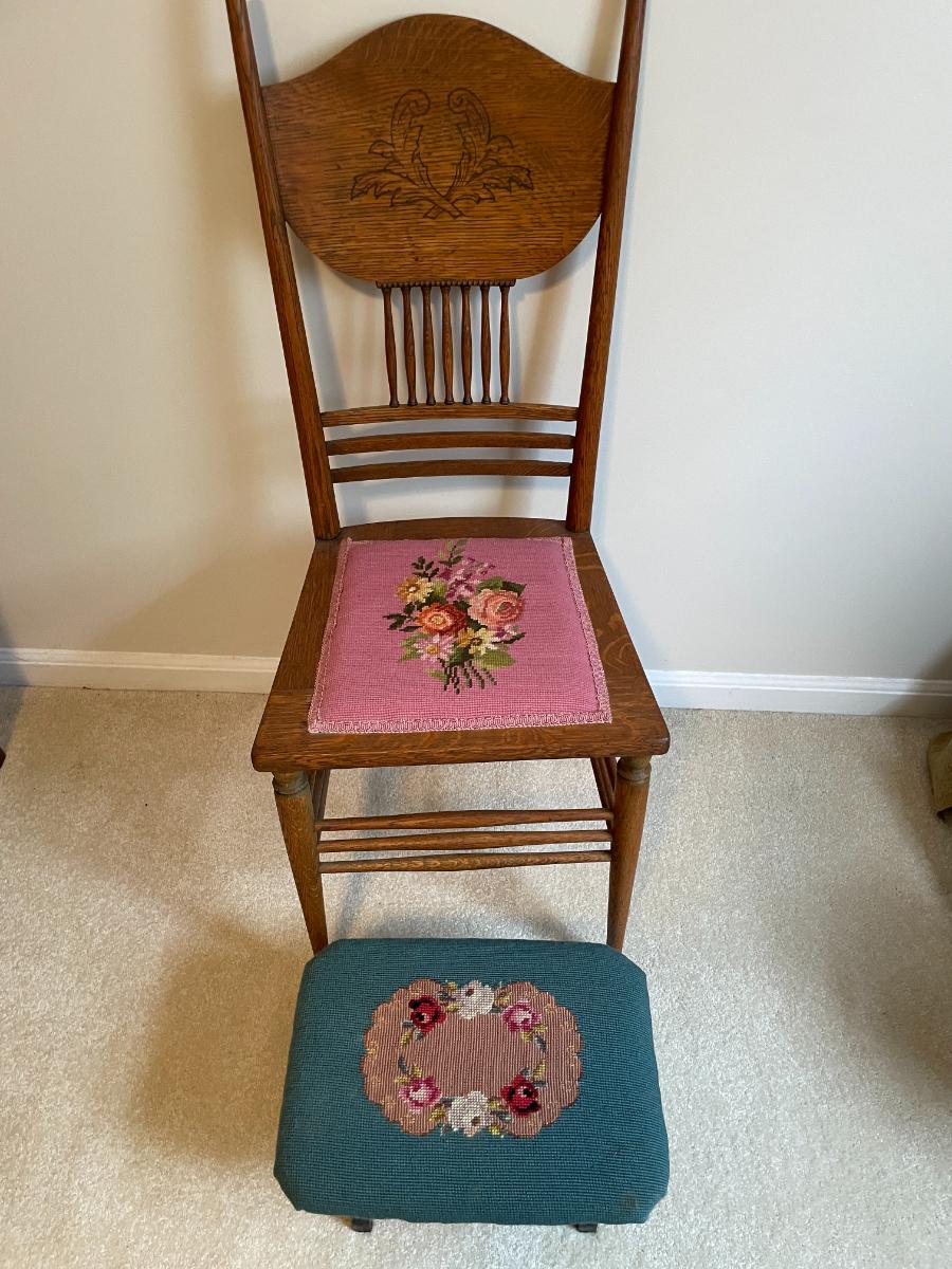 Pink embroidery chair & footstool