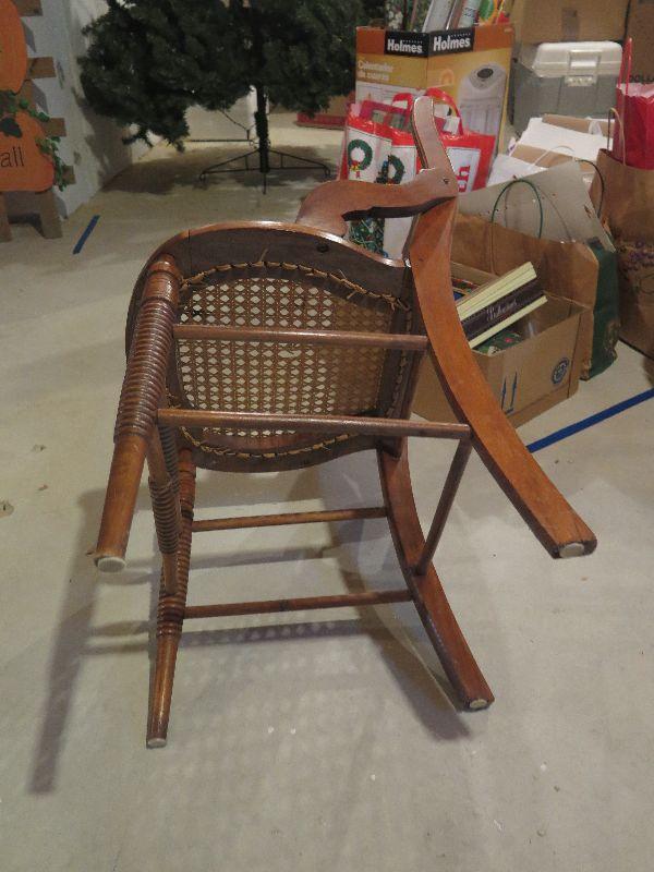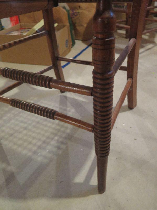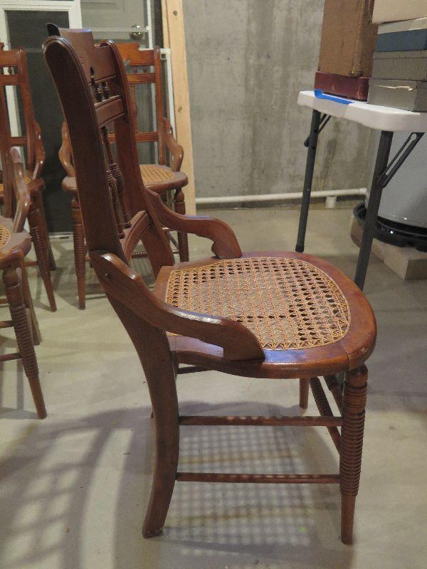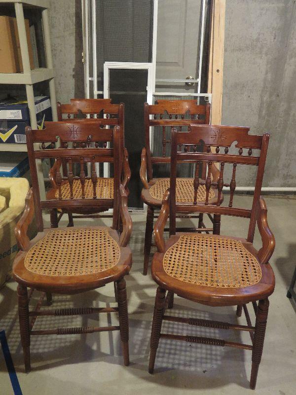 Four antique side chairs. Carved wood back with cane seats. Damage to one. Bring help to move from basement. **Please read Terms and Conditions before placing a bid. Pick up is Wednesday July 31st, from 2 pm to 7pm in Sicklerville. All sales are final. All sales are as is, where is. Please review all photos. Any props included in photos are not included in listing. All measurements are approximate.
