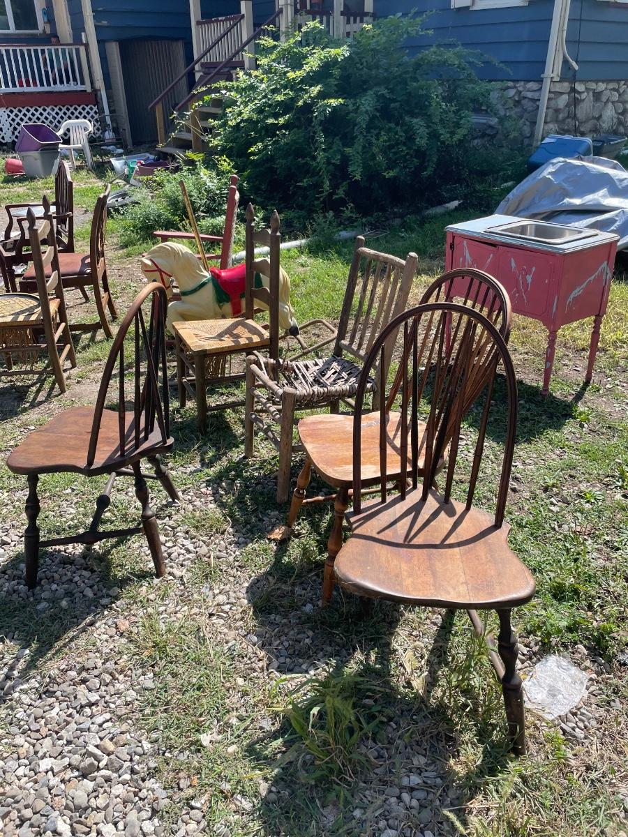 Items for bid in this lot are for the pictured 12 antique chairs. Sellers bid is for all 13 chairs.