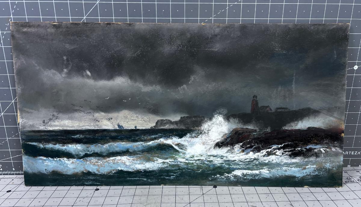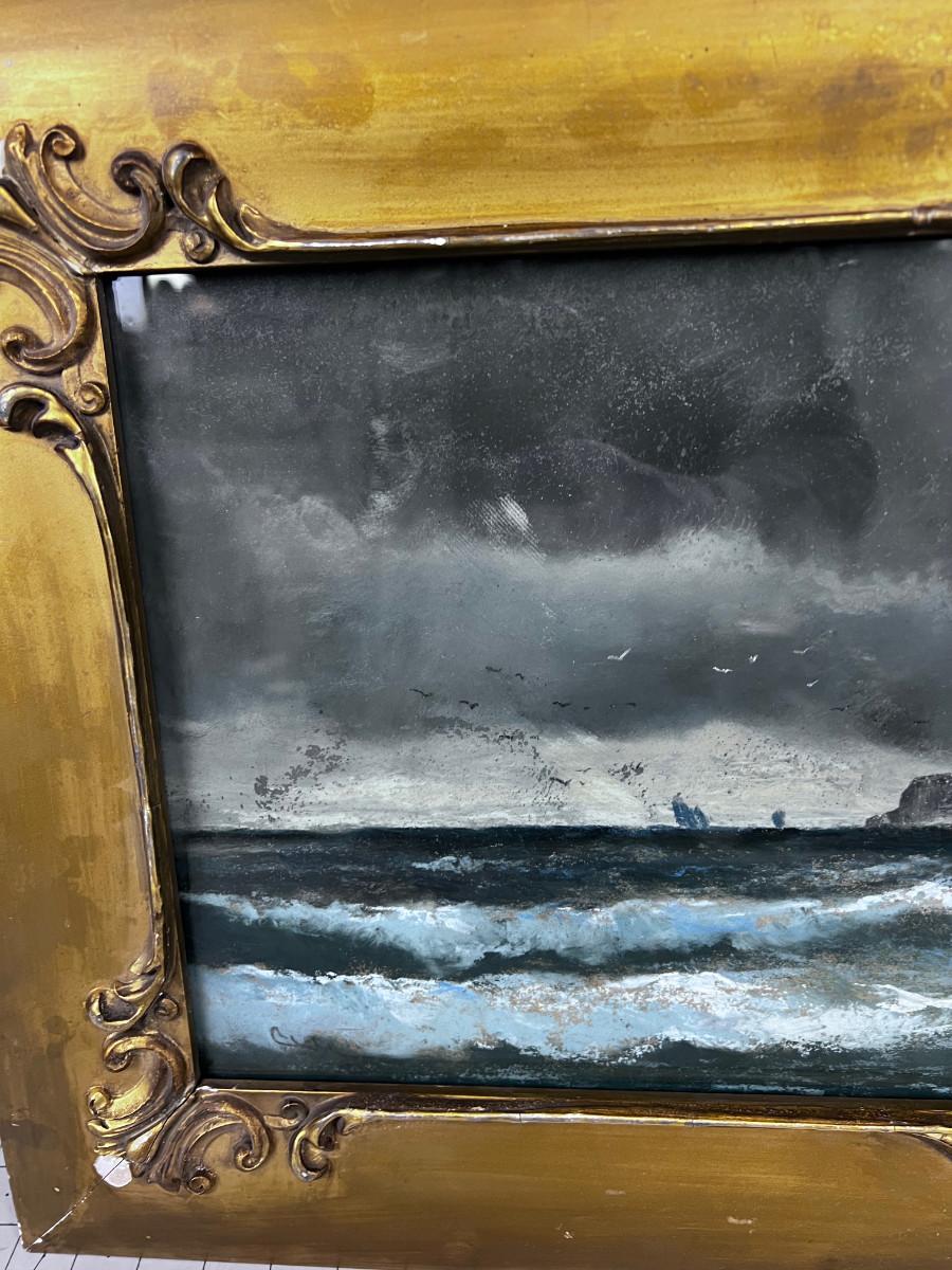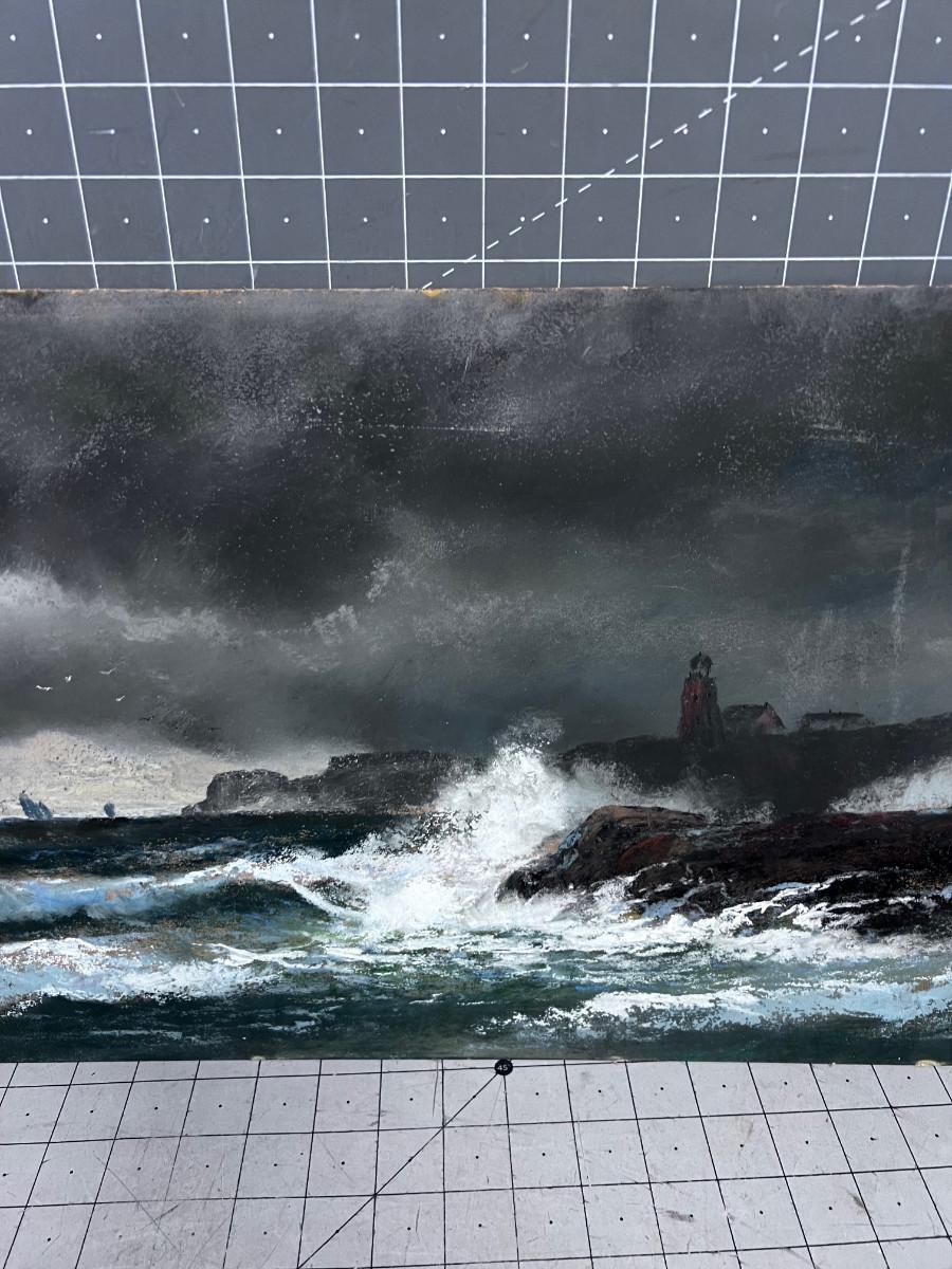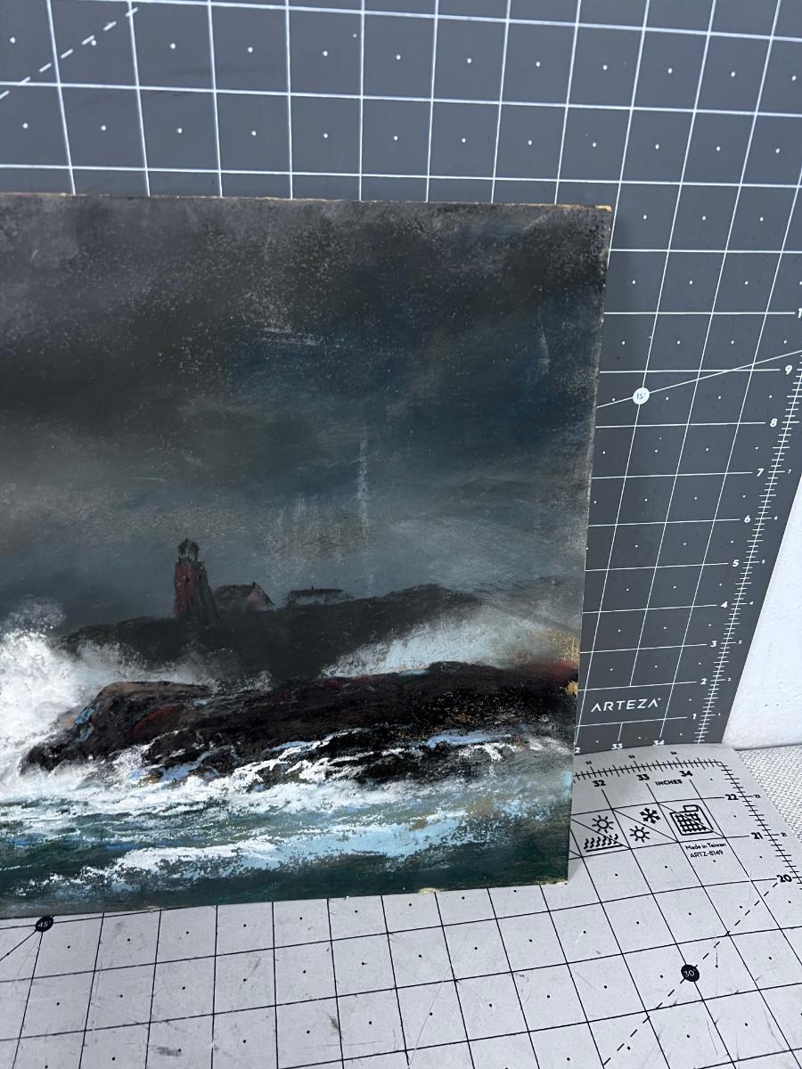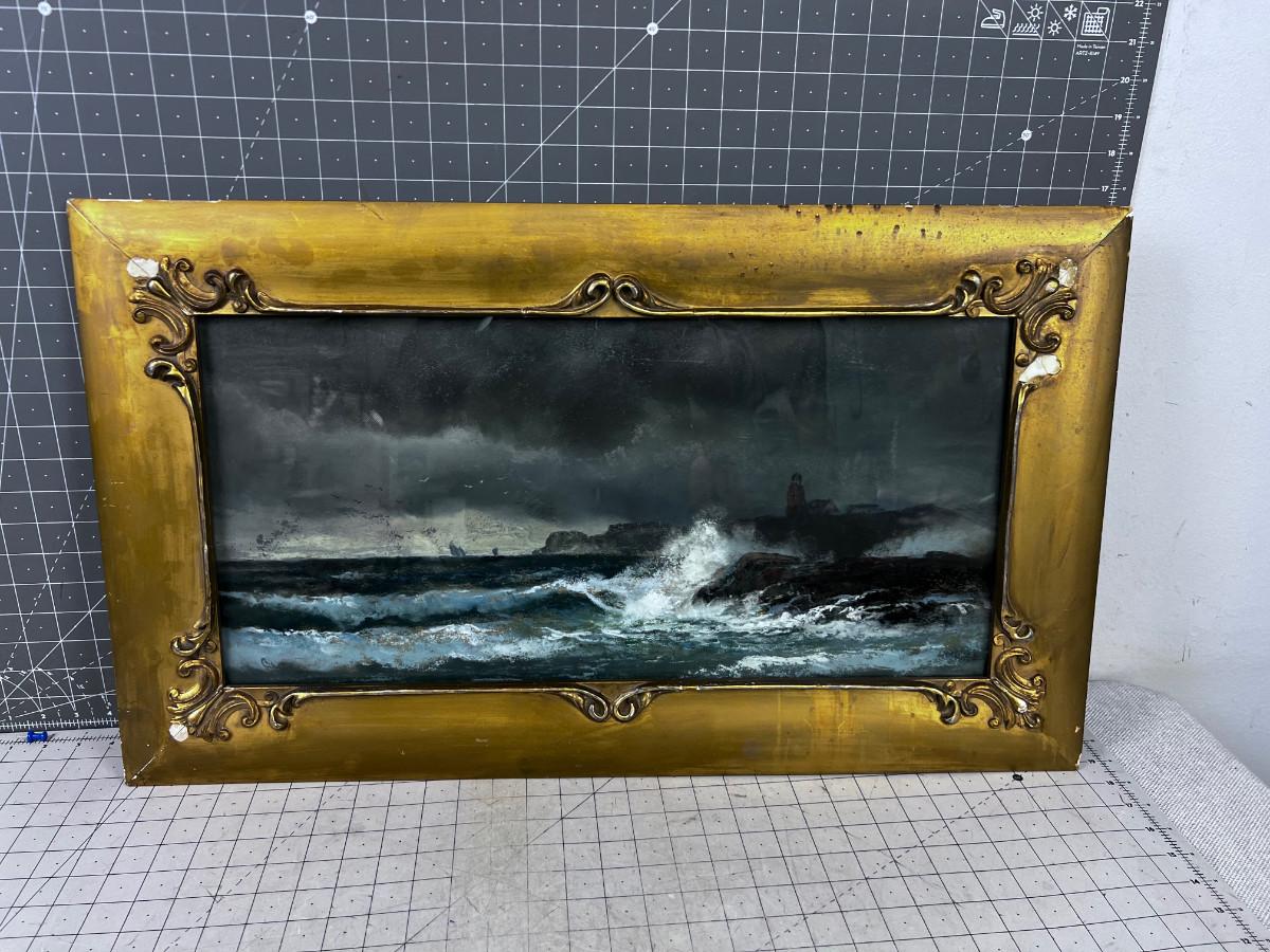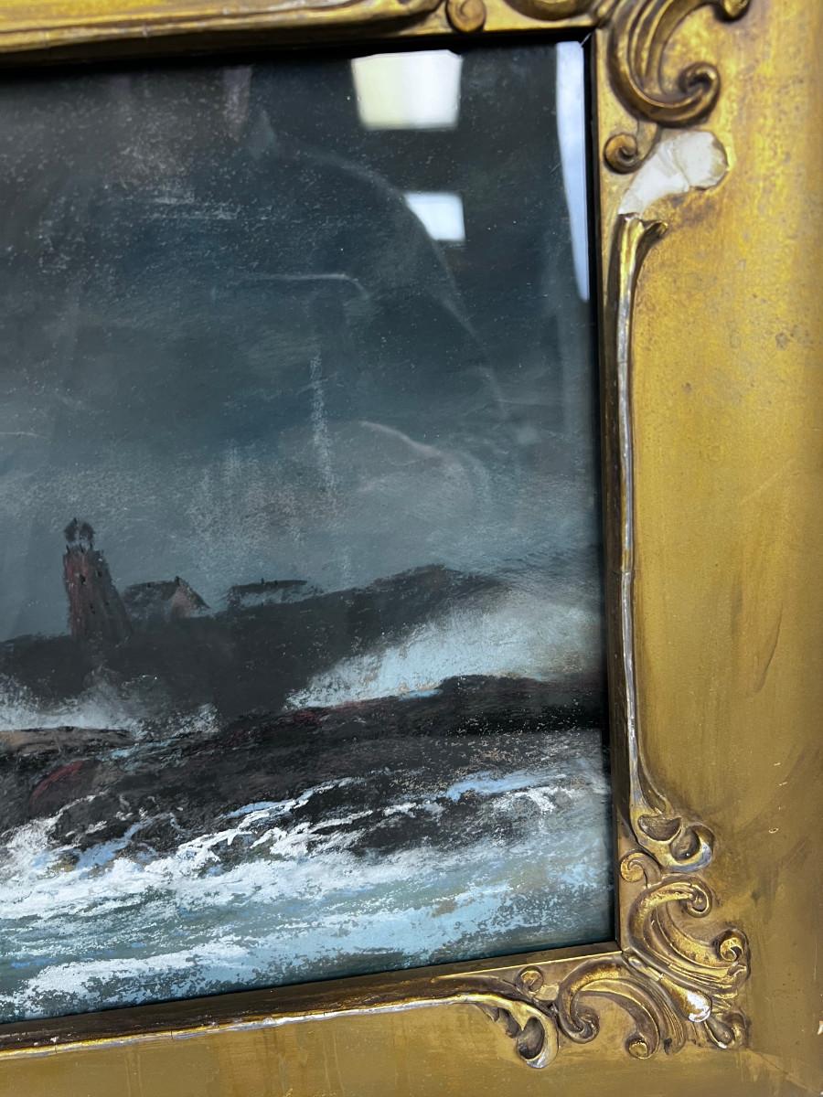 Antique Chalk Pastel Signed Unknown Signature Light House Ocean