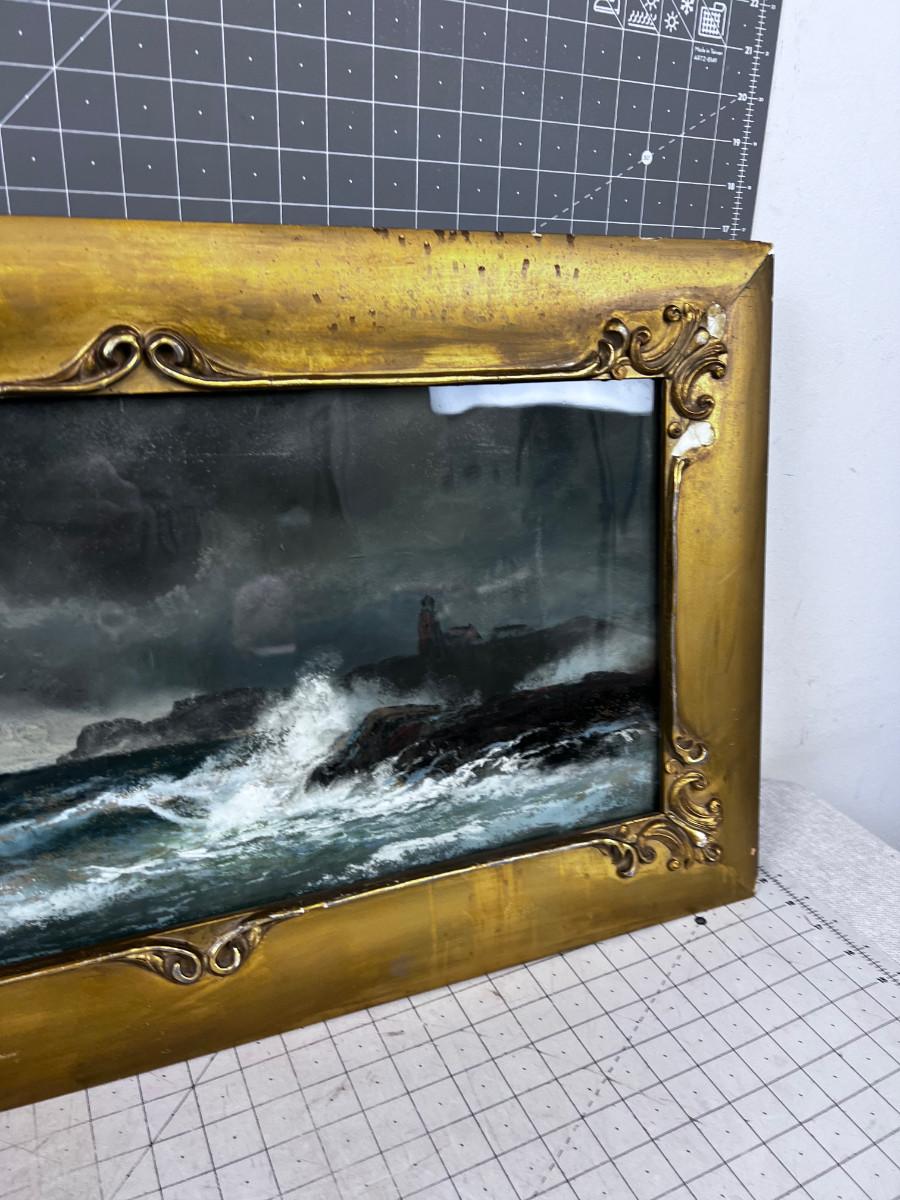 Measures 24 X 12" Neat! Dark. Old Frame Gold Tone.