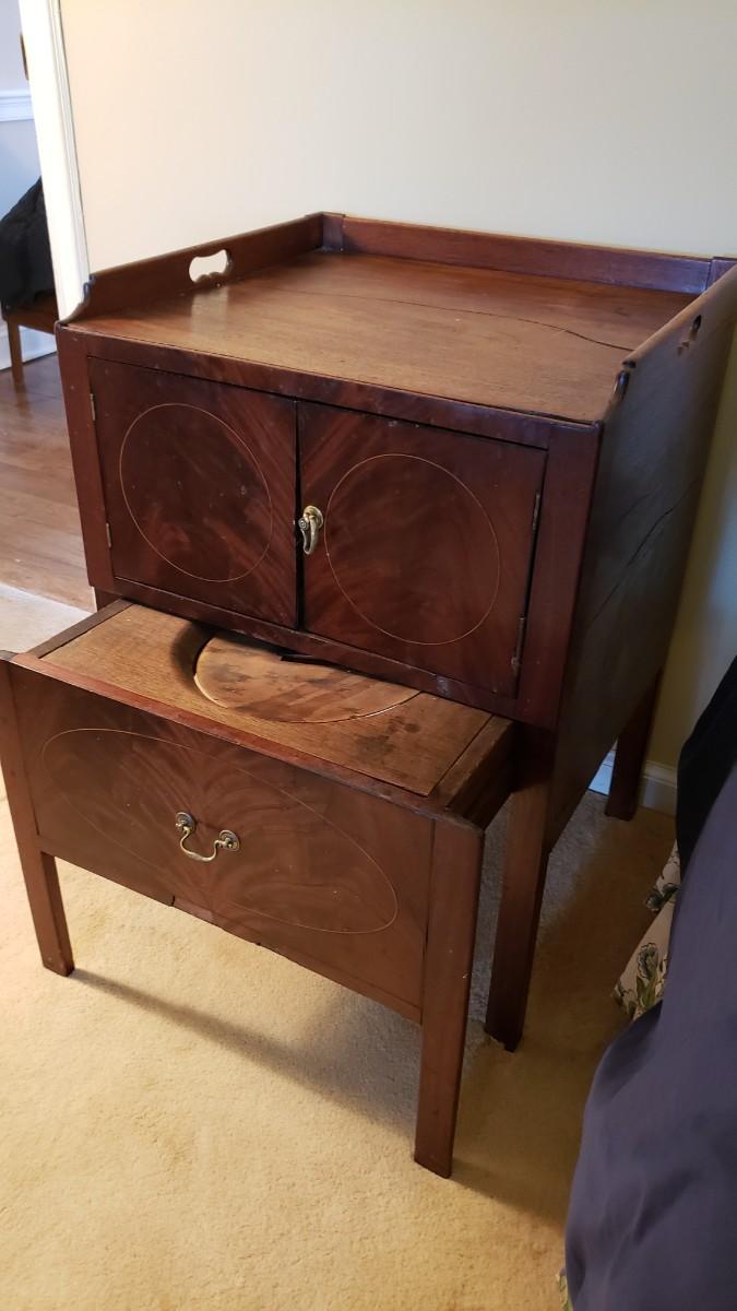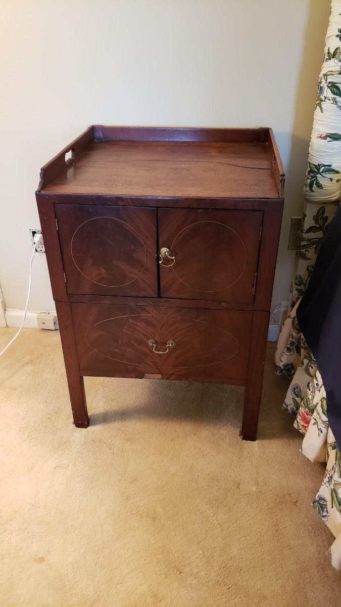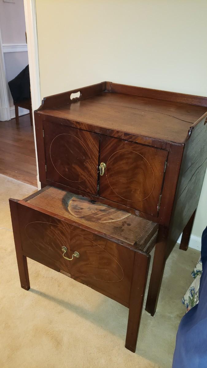 Antique chamber pot concealed as side table :)