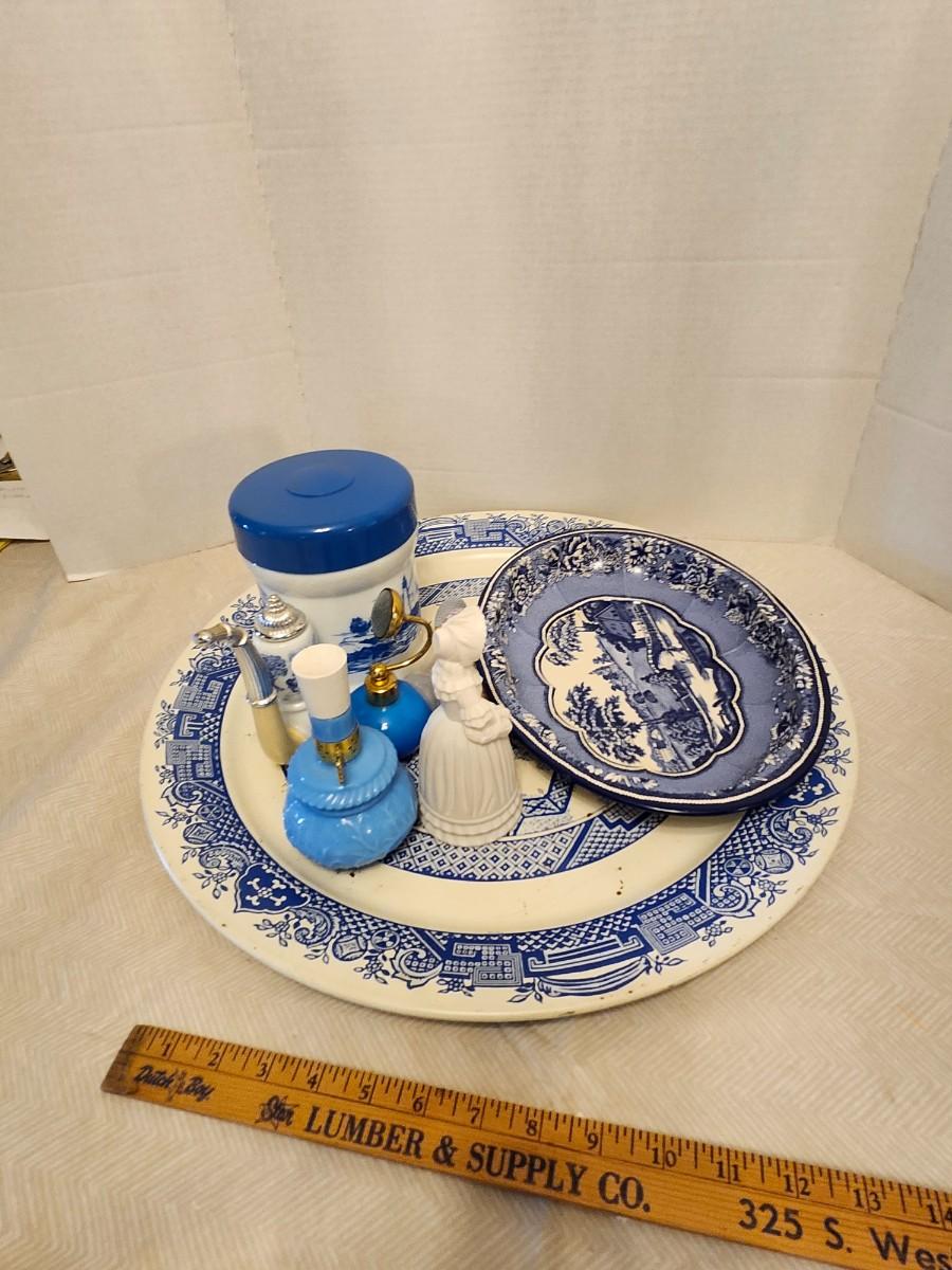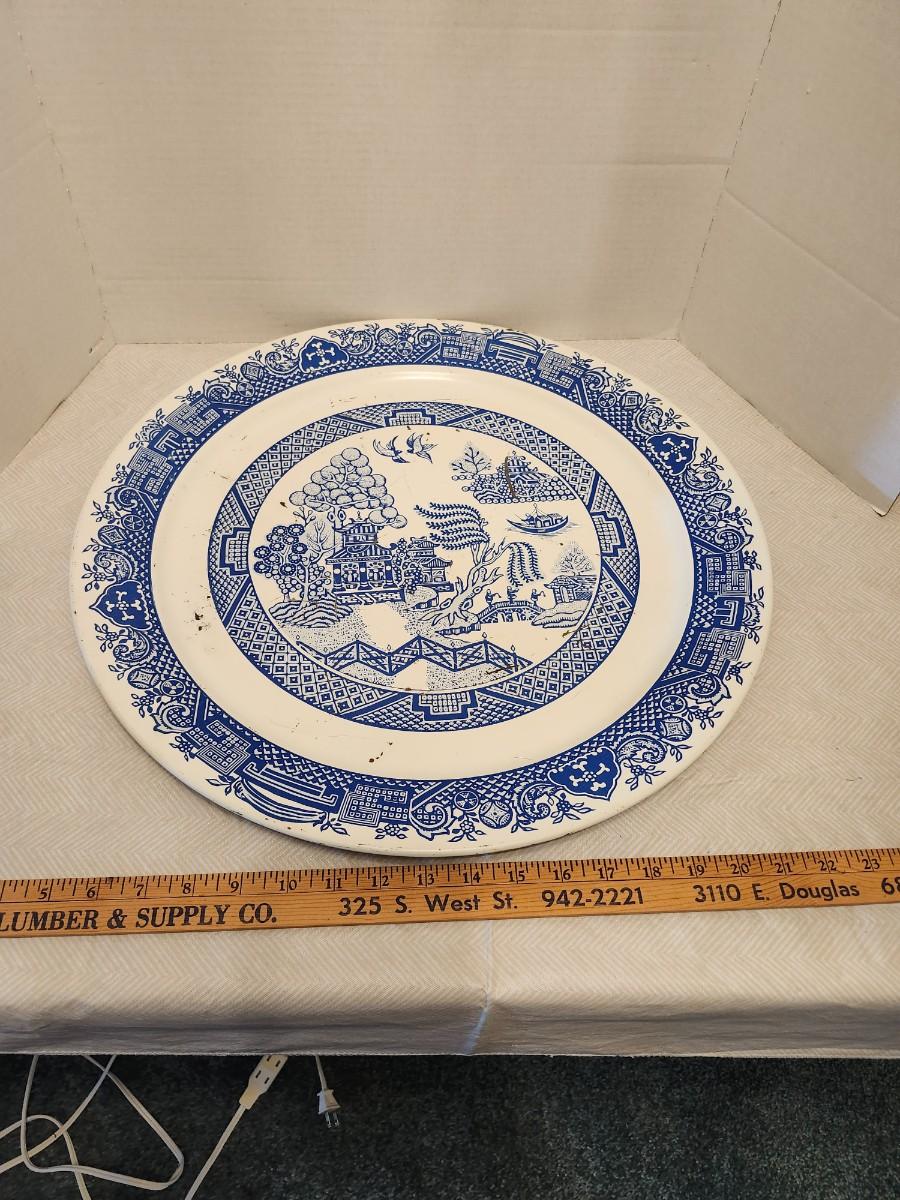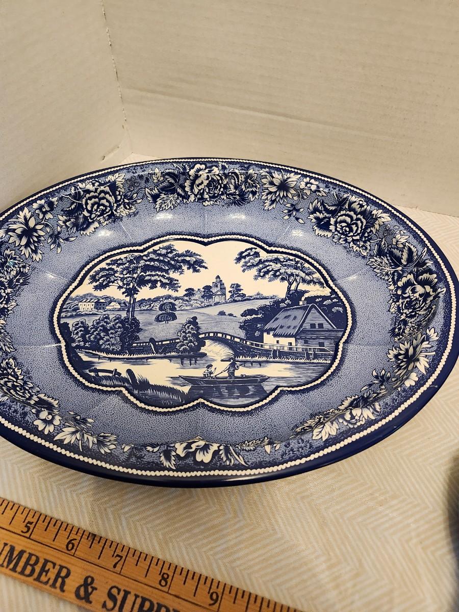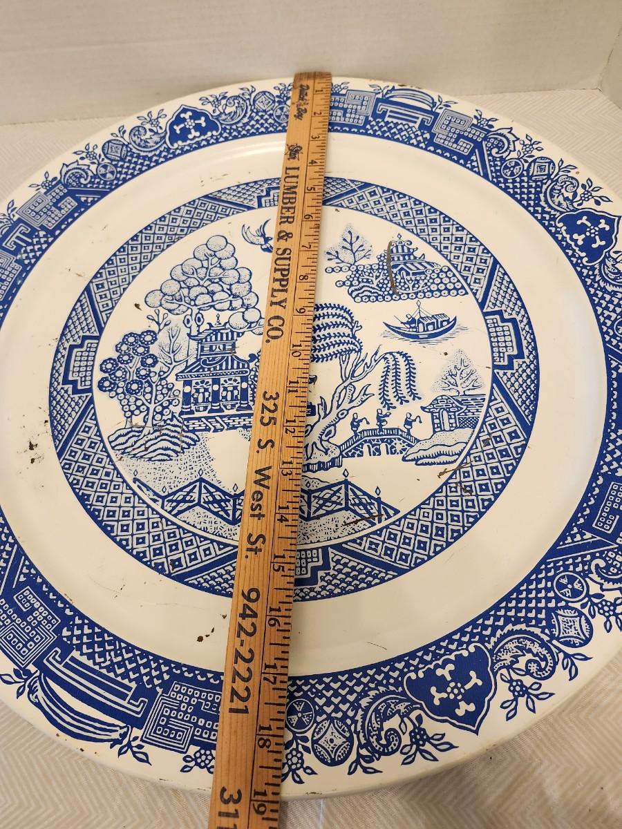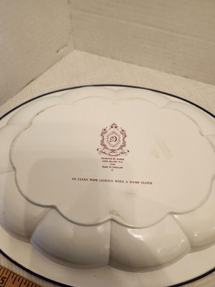 Vintage Collectible Daher Oval Tin Ware Metal Bowl / Platter / Tray w/ Blue Willow Pattern