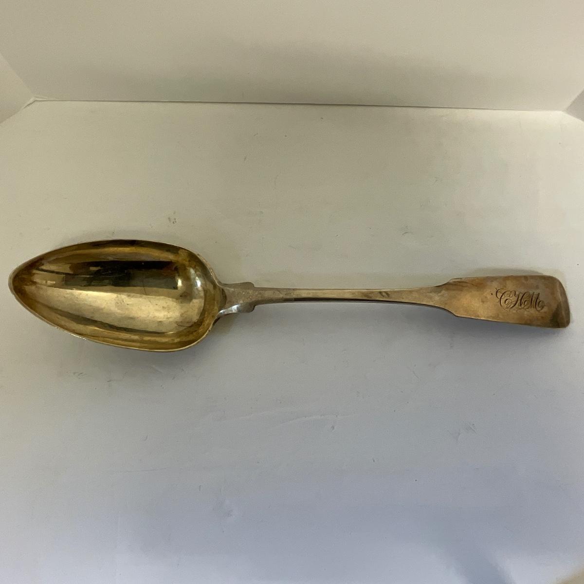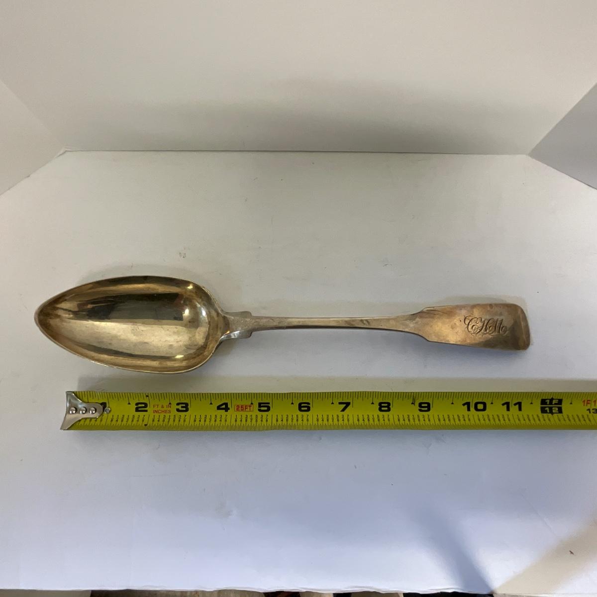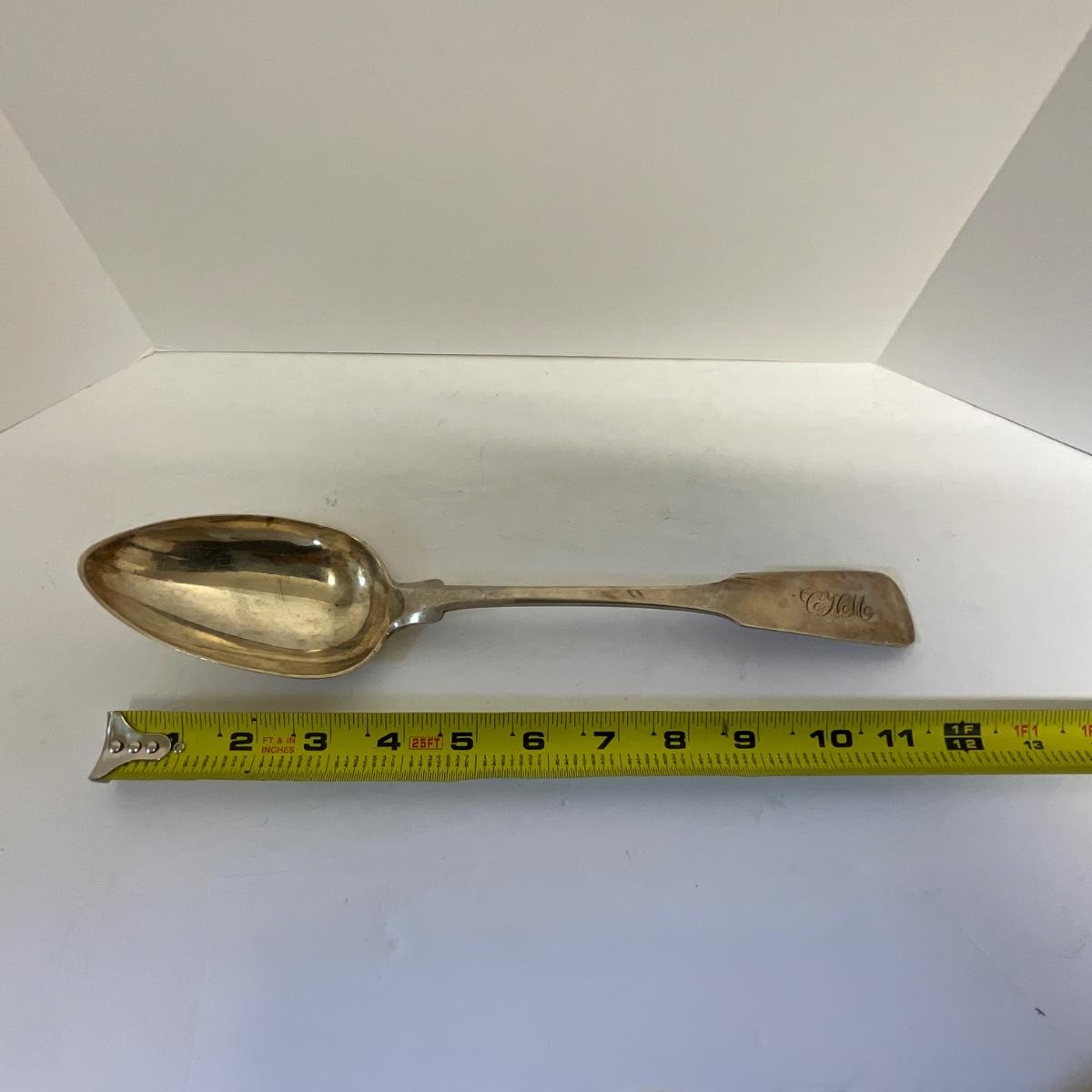 Antique Charleston Silversmith J Mood Rice Spoon, 11 1/2" long, Coin Silver as pictured