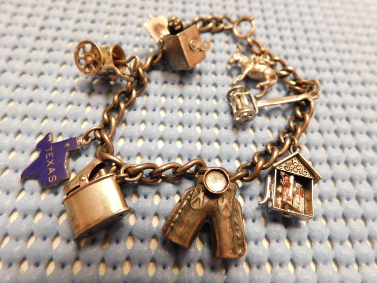See close-up photos for many early unusual charms.
