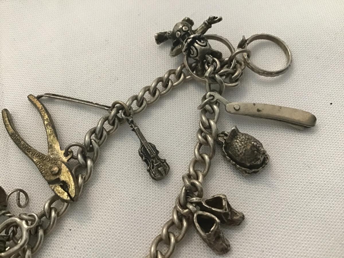 Antique Charm Bracelet. Toilet pliers Switch blade Bob Wire.