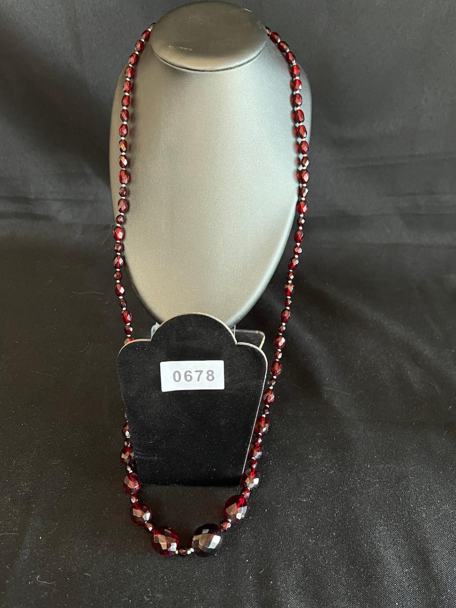 Antique Cherry Amber Beads Necklace Rich Red Faceted