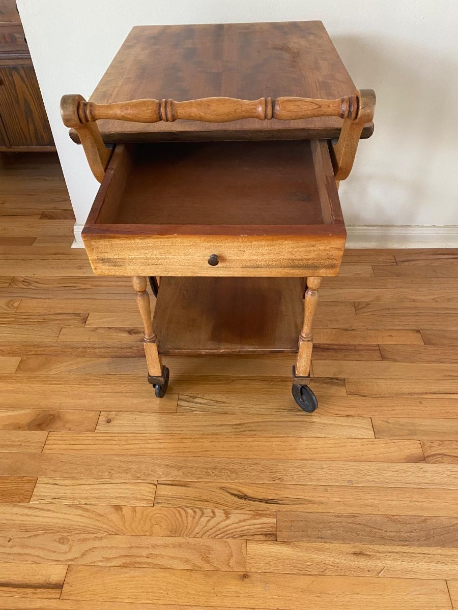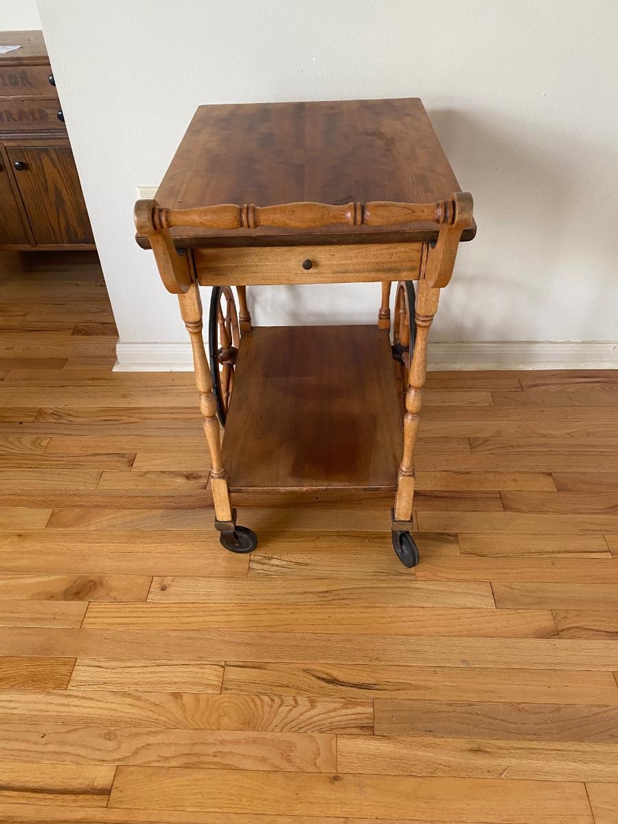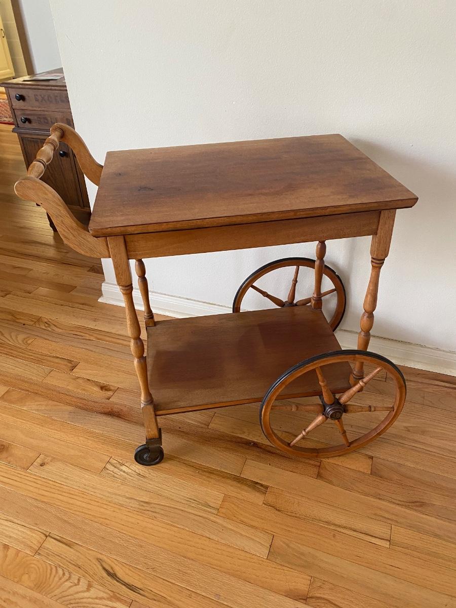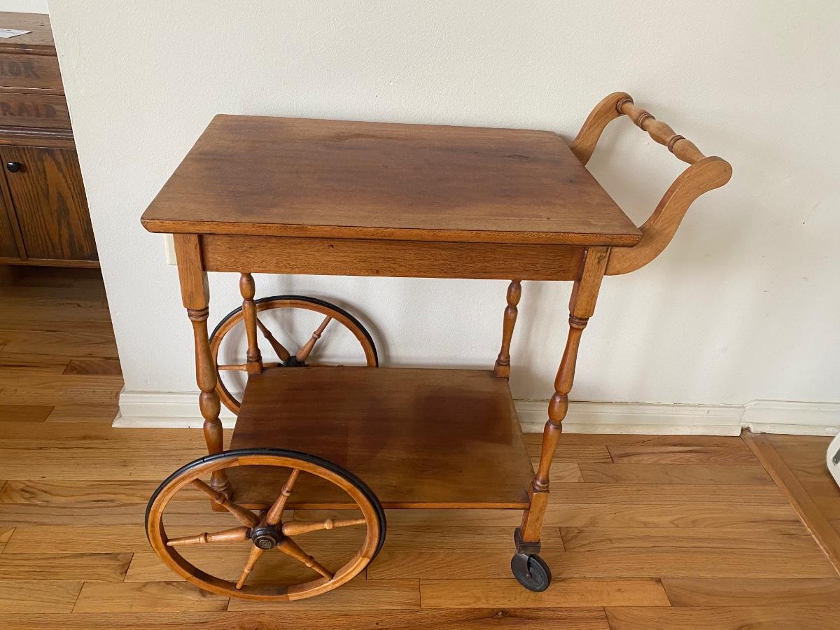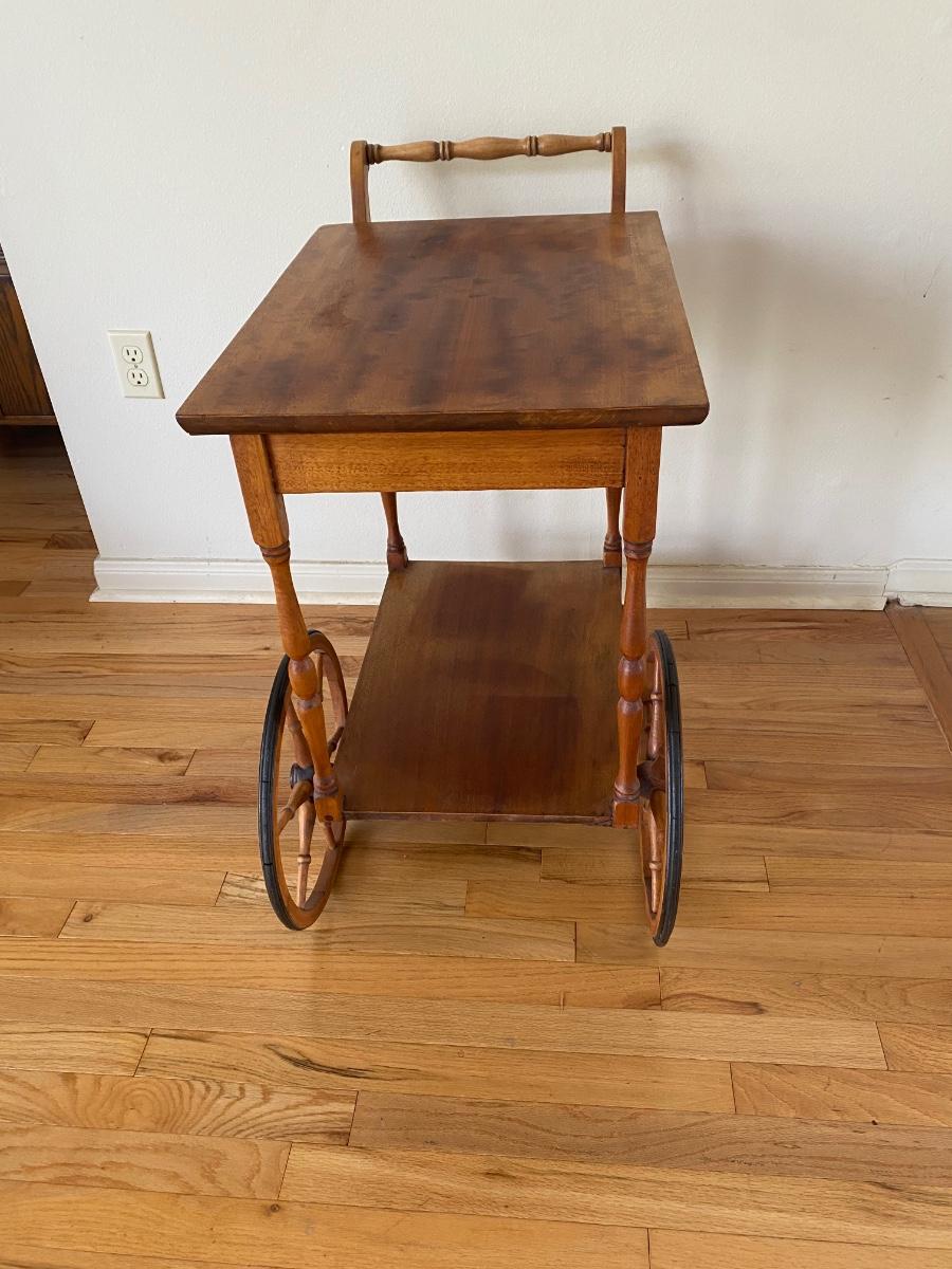 Antique cherry wood tea cart on wheels, early 1900’s. VG condition