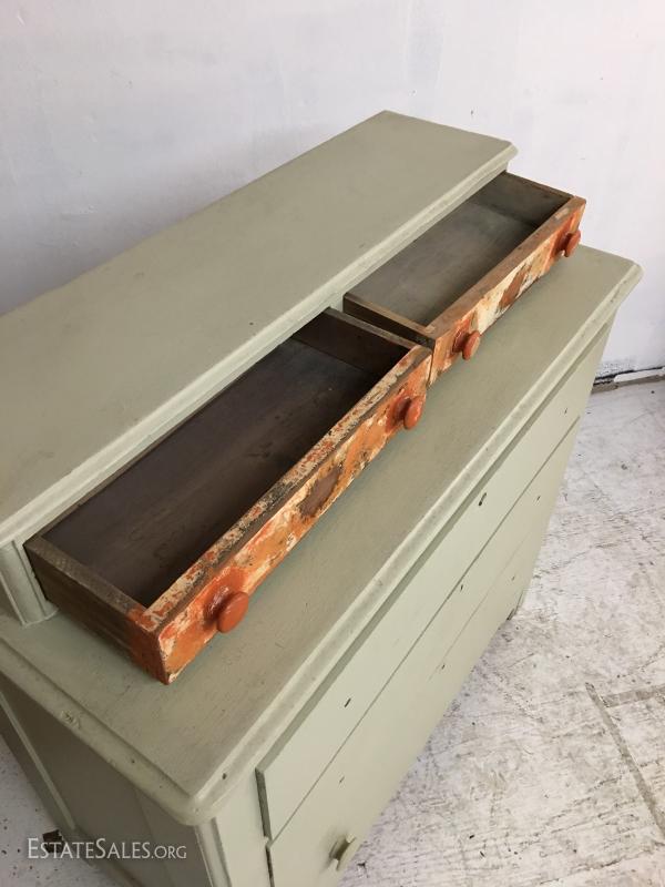 Painted chest, aged 1890 or earlier, dove tail joints, possibly walnu with poplar as a secondary wood, needs some TLC, sold as-is. Measures 38" wide, 18" deep and 39" tall.