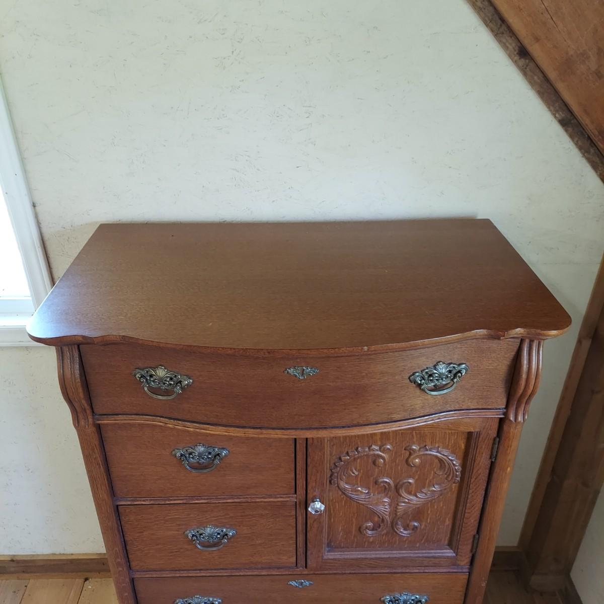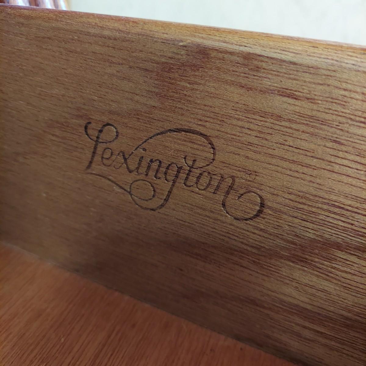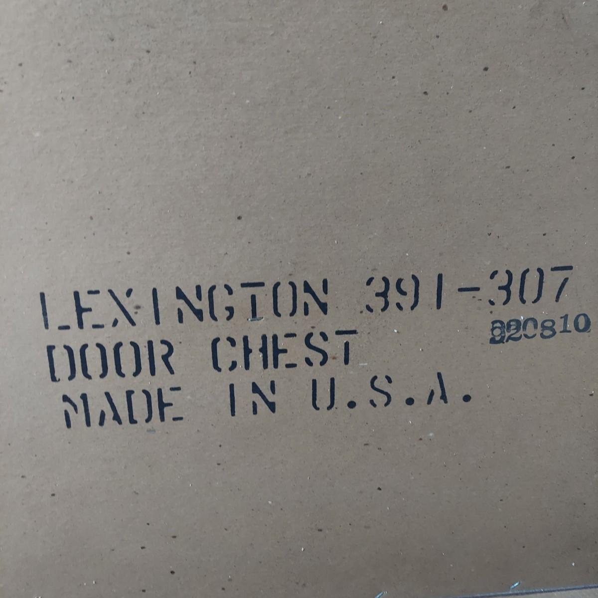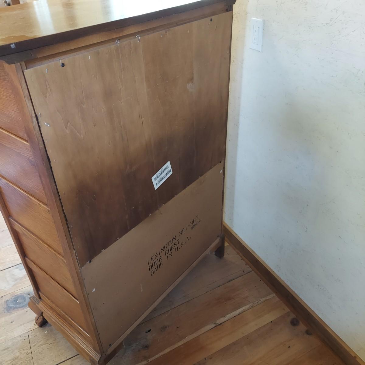 Antique Chest of Drawers by Lexington. There are five drawers and small cabinet door. Solid wood with plywood back. Made in the USA. 36 x 21 x 52"H. Drawers crafted using dovetail joinery. Local Pickup Only. Winning bidder must bring assistance to help move and load this item due to its weight and/or size.