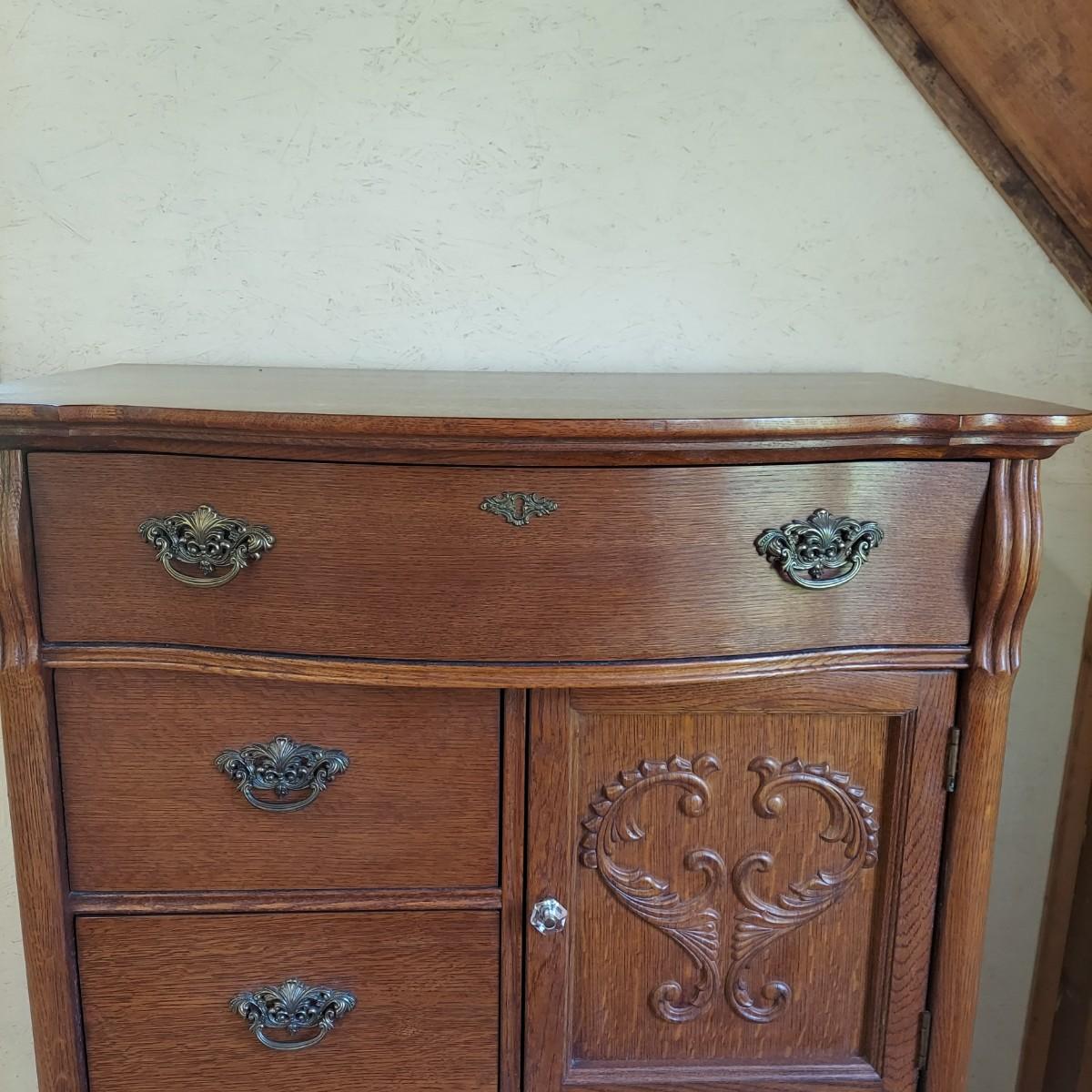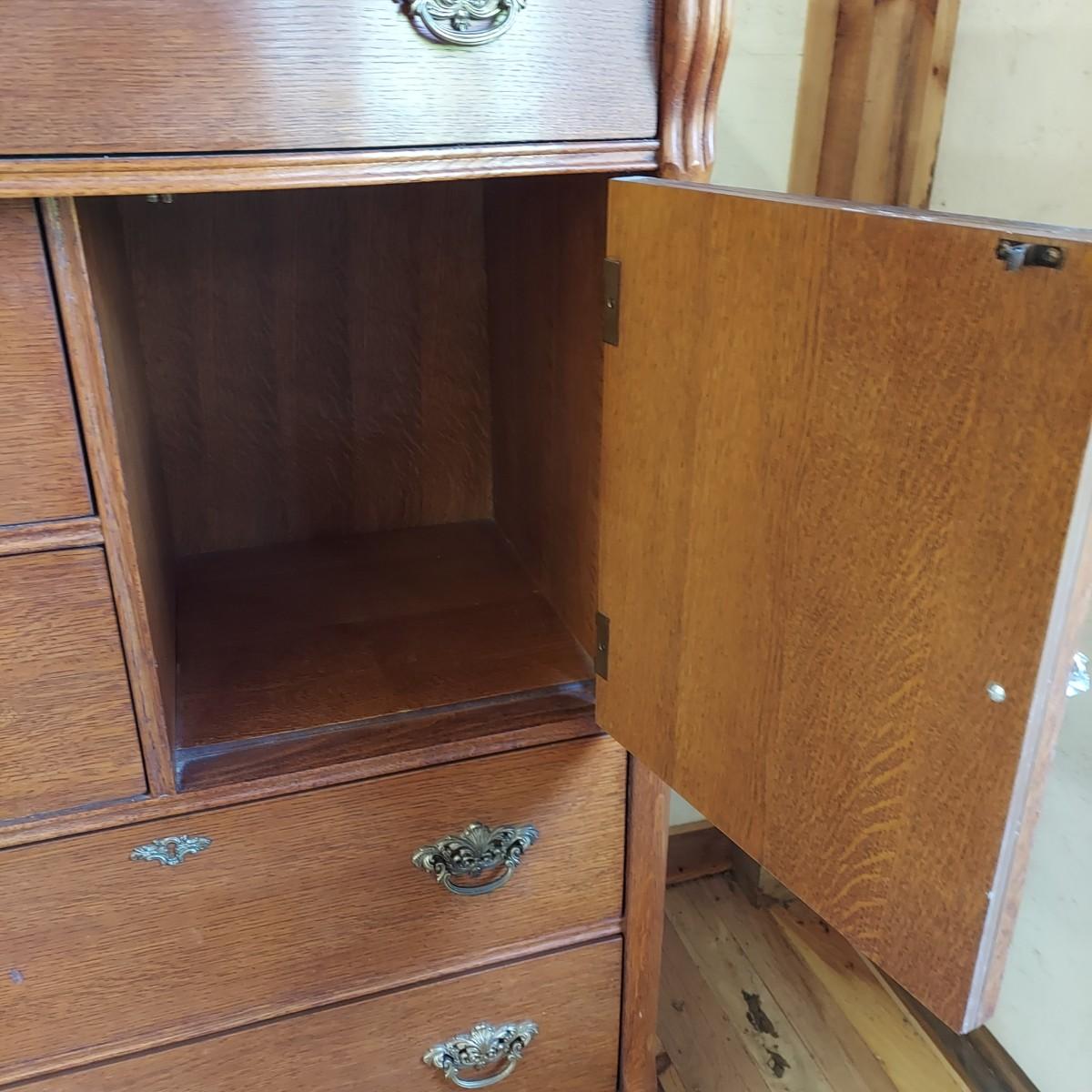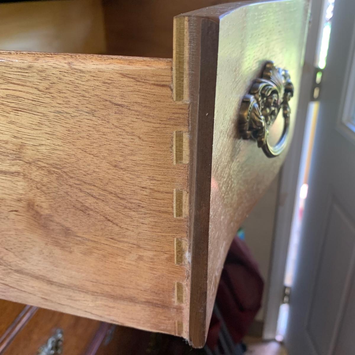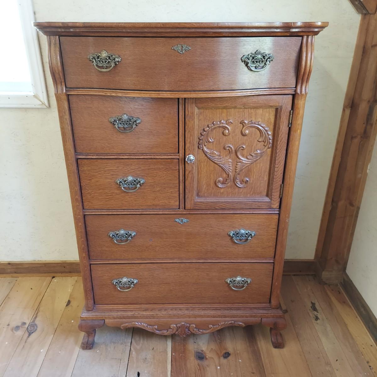 Antique Chest of Drawers by Lexington. There are five drawers and small cabinet door. Solid wood with plywood back. Made in the USA. 36 x 21 x 52"H. Drawers crafted using dovetail joinery. Local Pickup Only. Winning bidder must bring assistance to help move and load this item due to its weight and/or size.