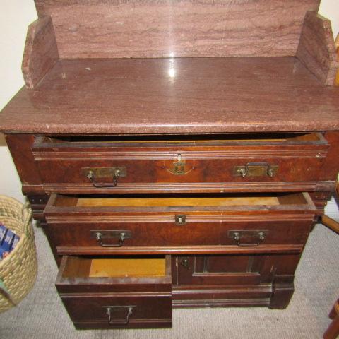 LOT 132 ANTIQUE CHEST WITH MARBLE TOP