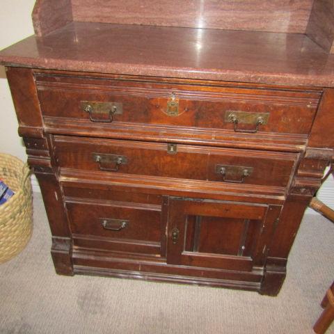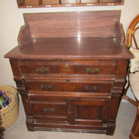 LOT 132  ANTIQUE CHEST WITH MARBLE TOP