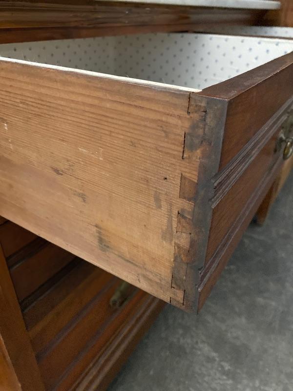 All Drawers slide easy, no major damage. One handle missing pieces.