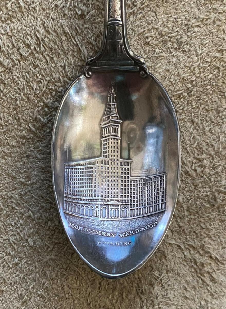 antique CHICAGO SILVERPLATE SOUVENIR SPOON MONTGOMERY WARD TOWER