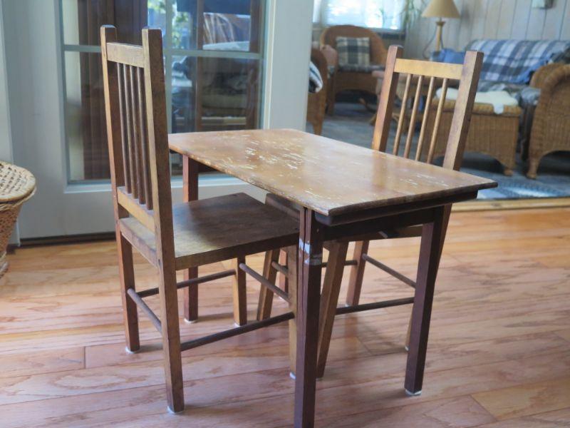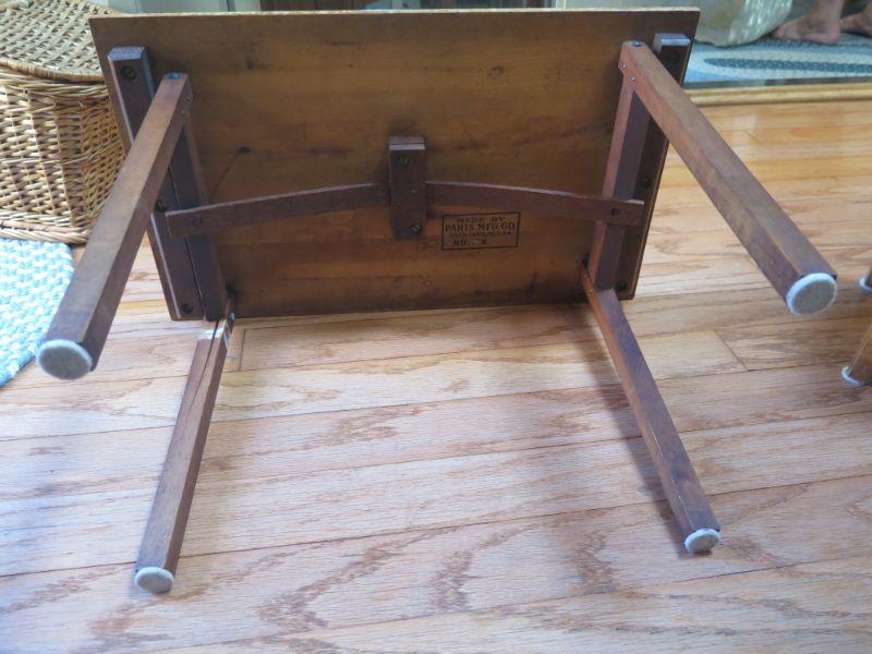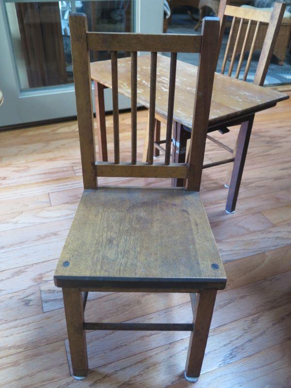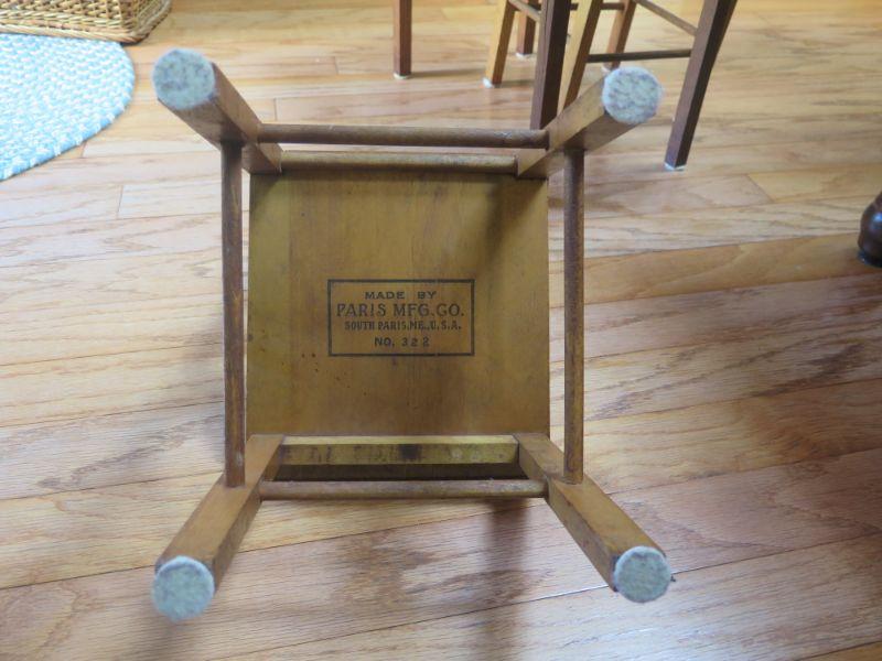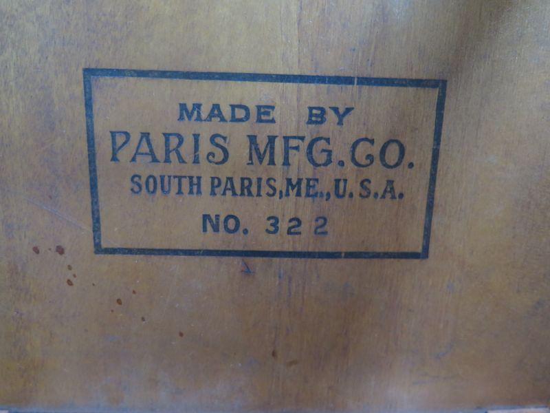 Antique children's wooden table and chairs from Paris Manufacturing Co in South Paris, Maine. Purchased in 1921. **Please read Terms and Conditions before placing a bid. Pick up is Sunday, September 15, 2019 from 11am to 4pm and Tuesday, September 17 from 4pm-7pm in Sicklerville. All sales are final. All sales are as is, where is. Please review all photos. Any props included in photos are not included in listing. All measurements are approximate.