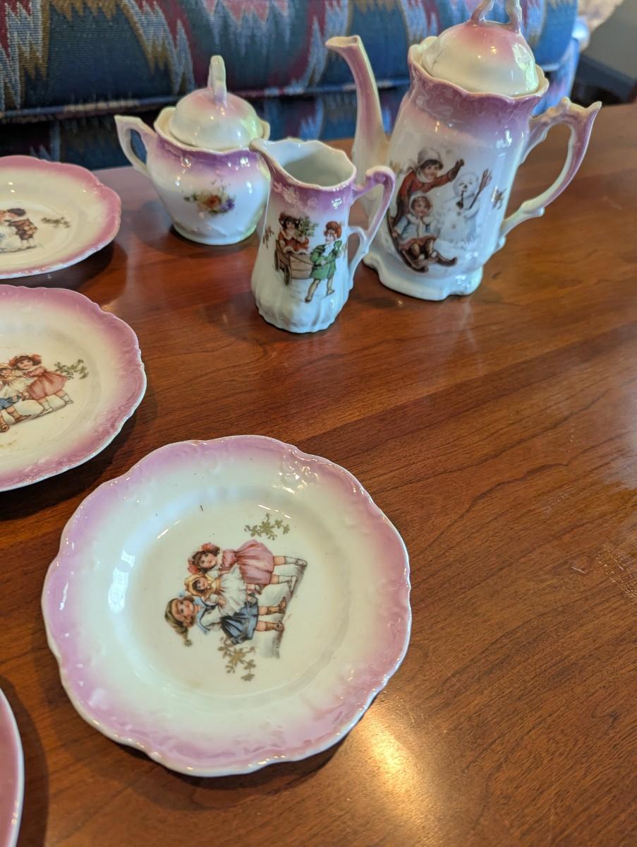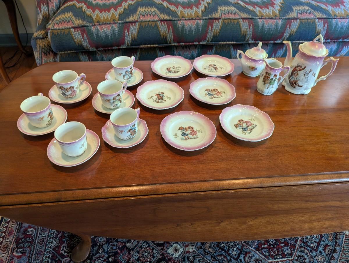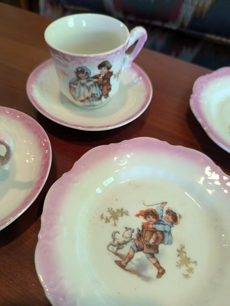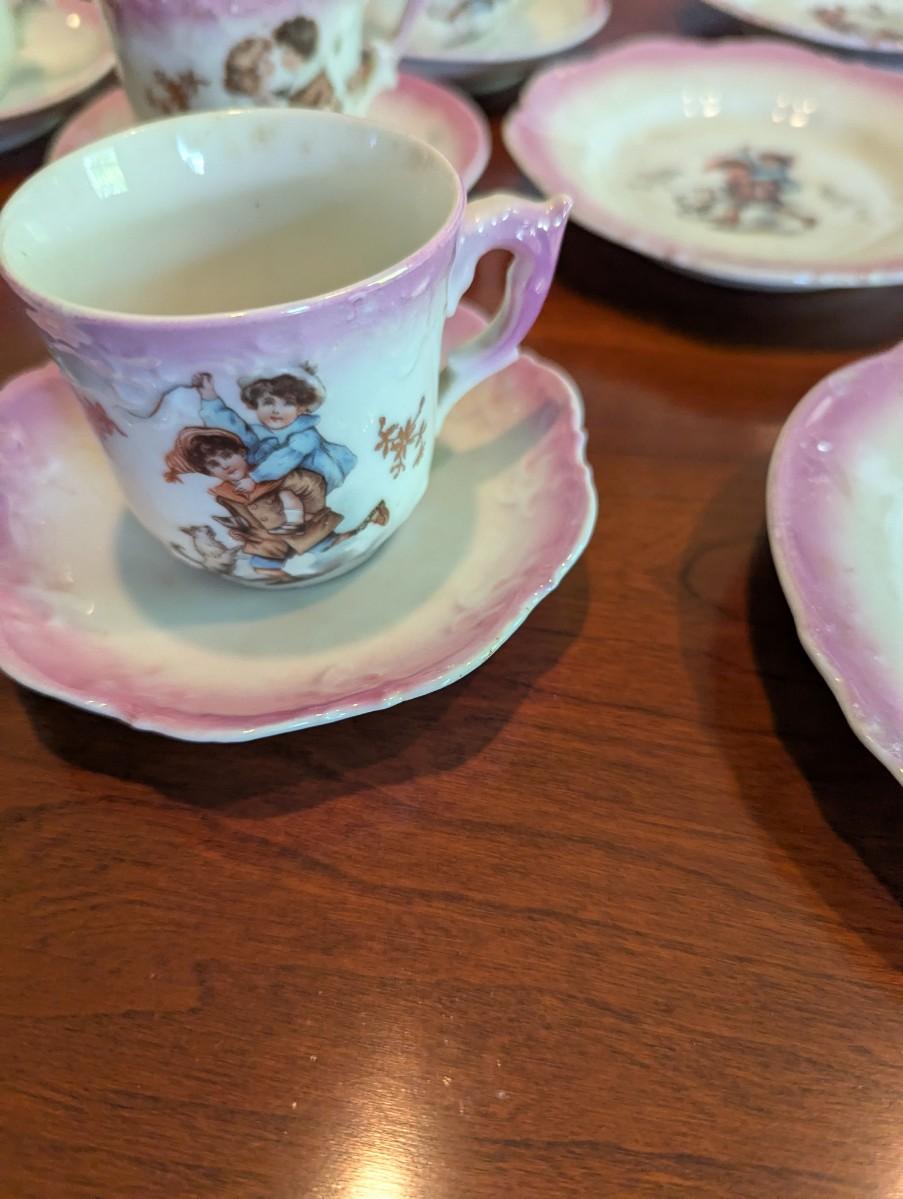 Antique Child's Tea Set Porcelain Transferware Possibly German (DR)