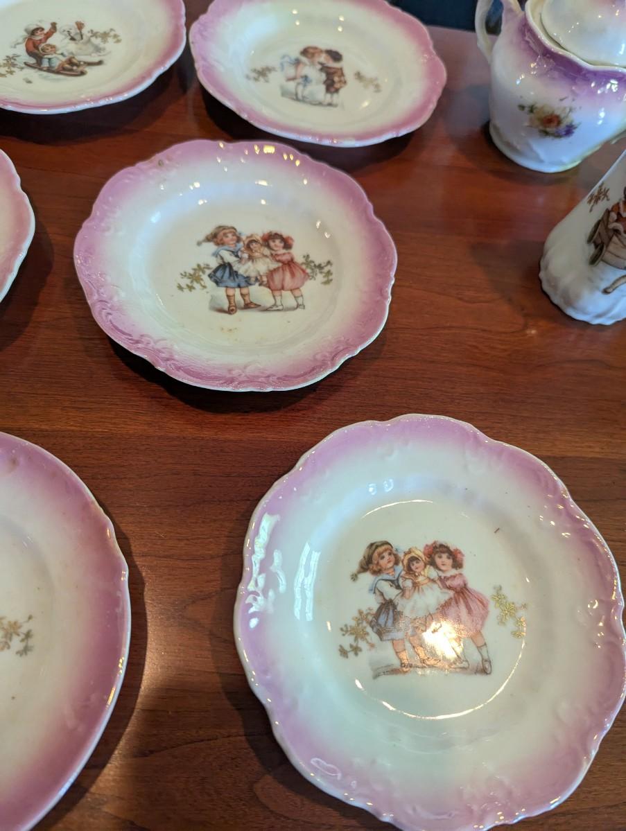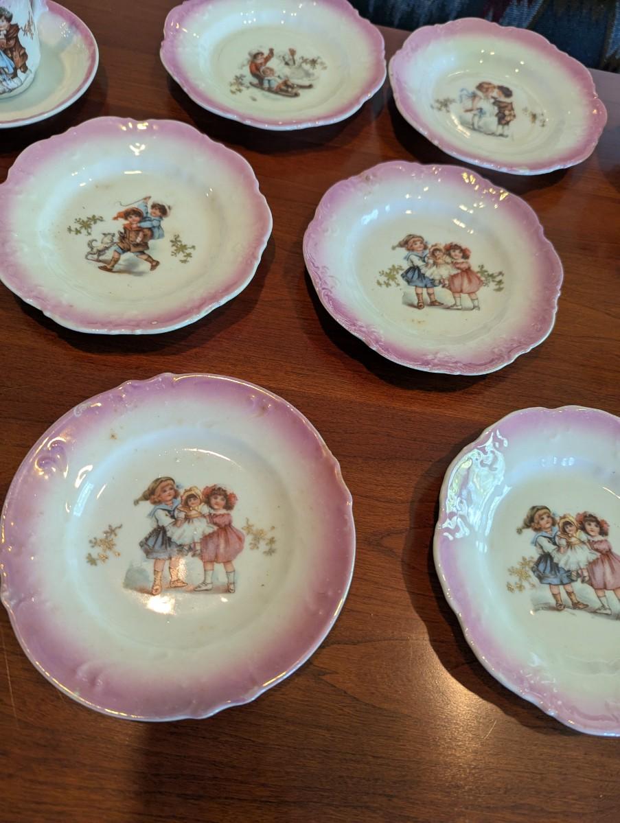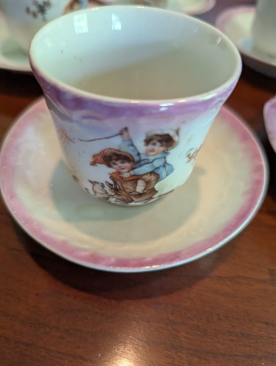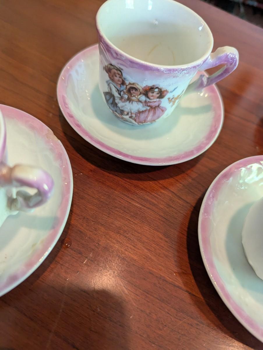 Antique Child's Tea Set Porcelain Transferware Possibly German (DR)
