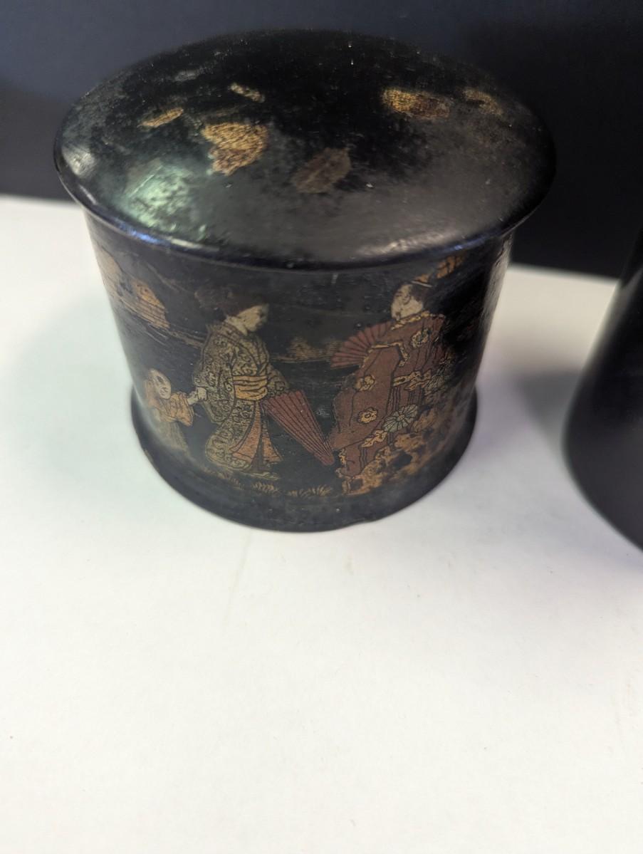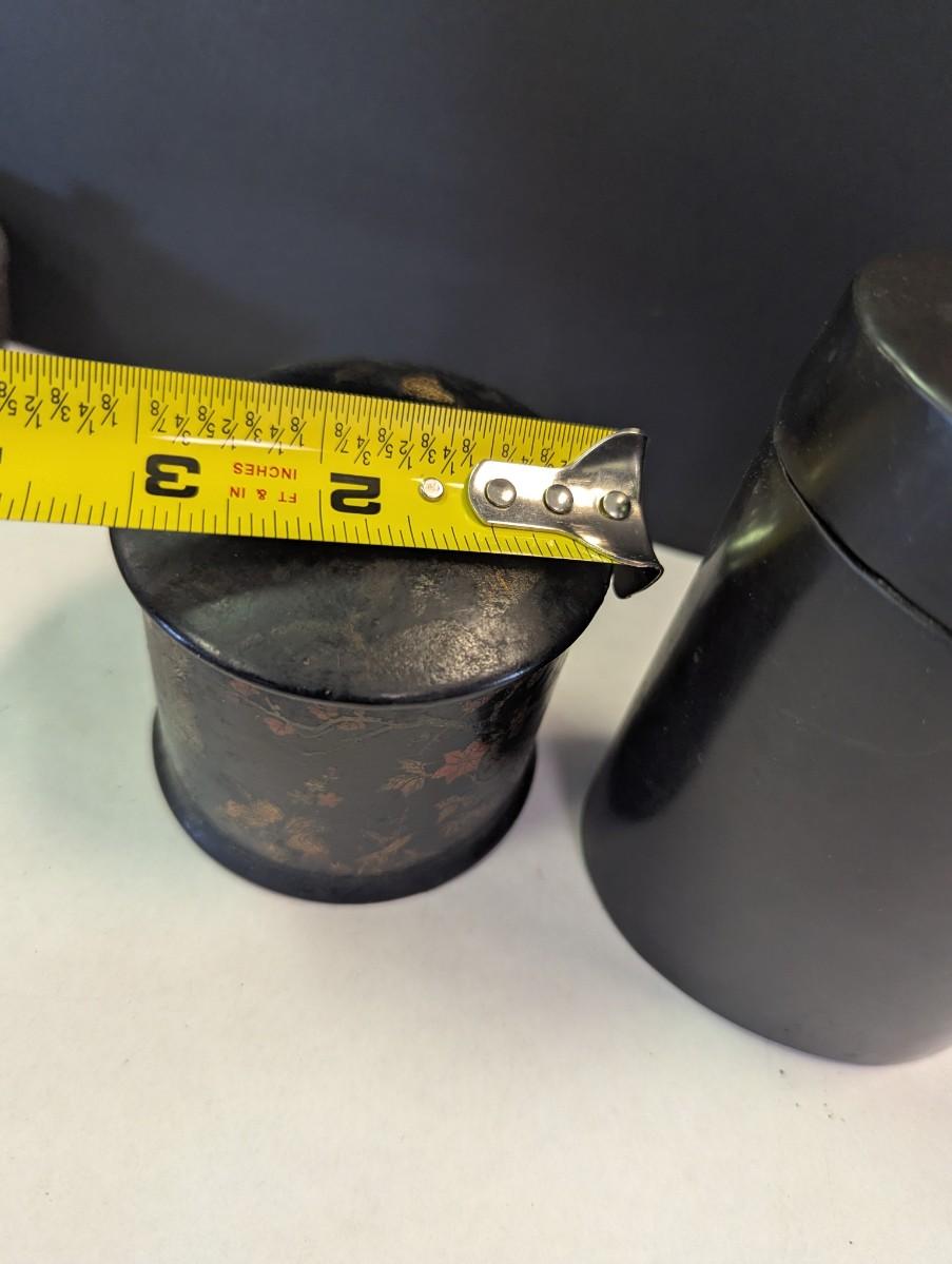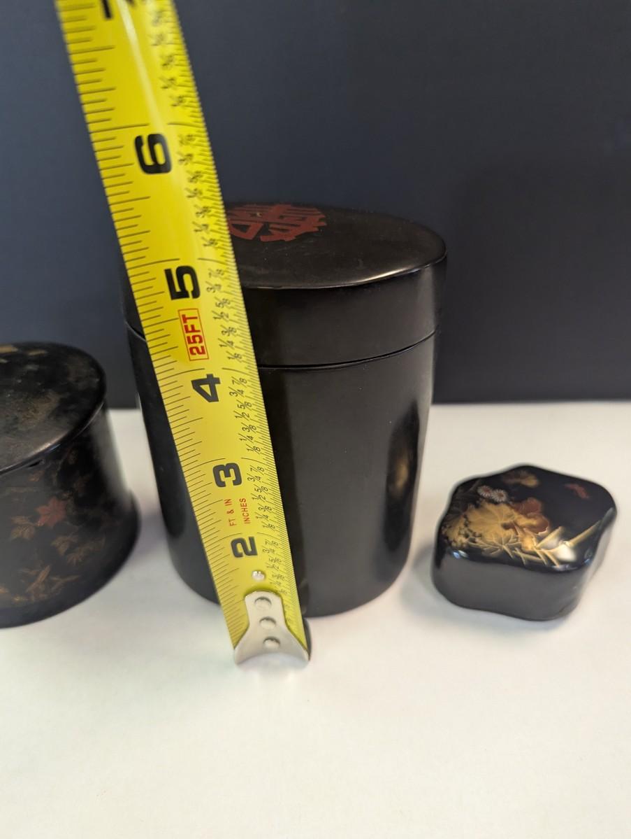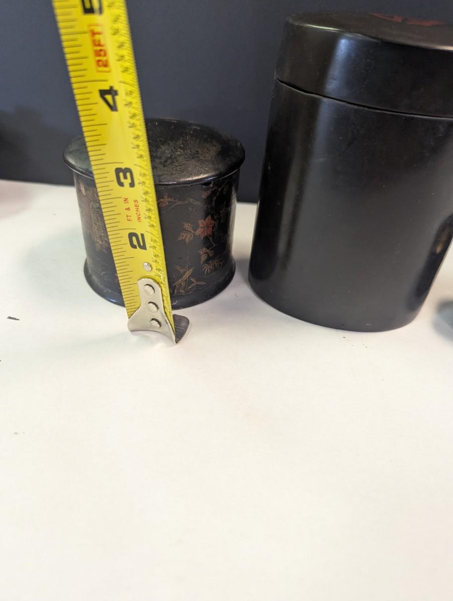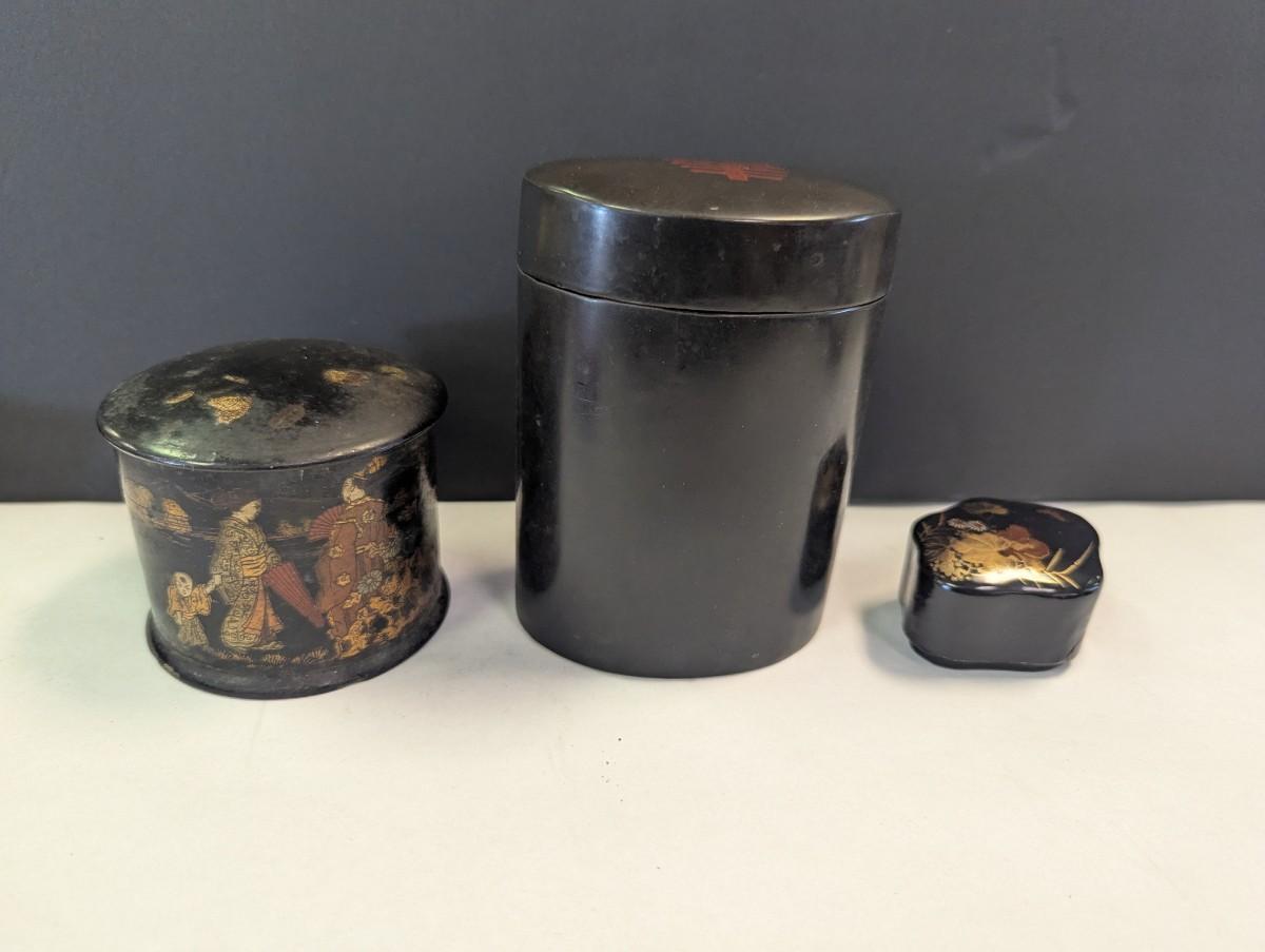 Antique Chinese Black Lacquer Caddies & Trinket Boxes Hand Painted Koi Fish