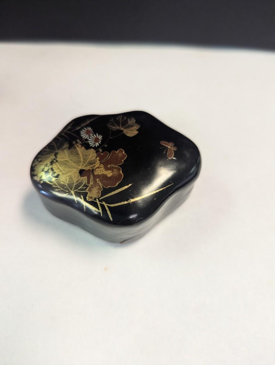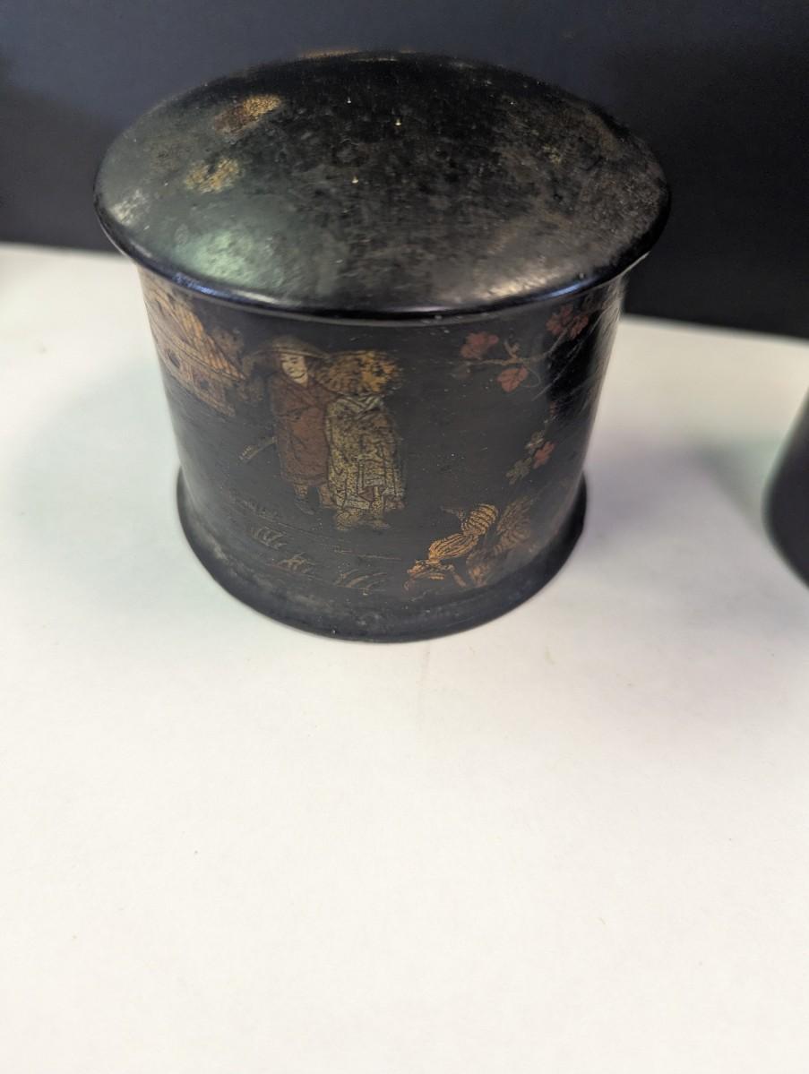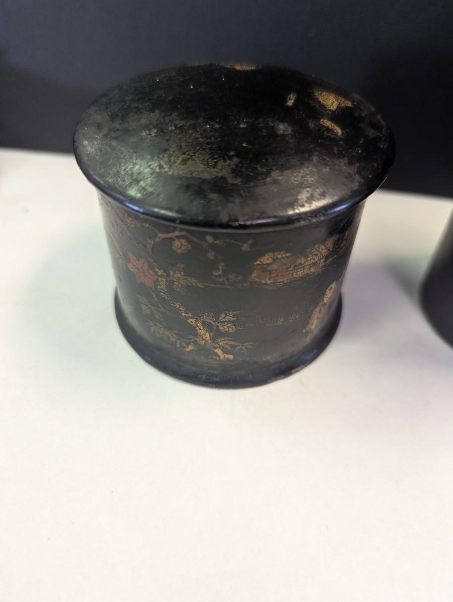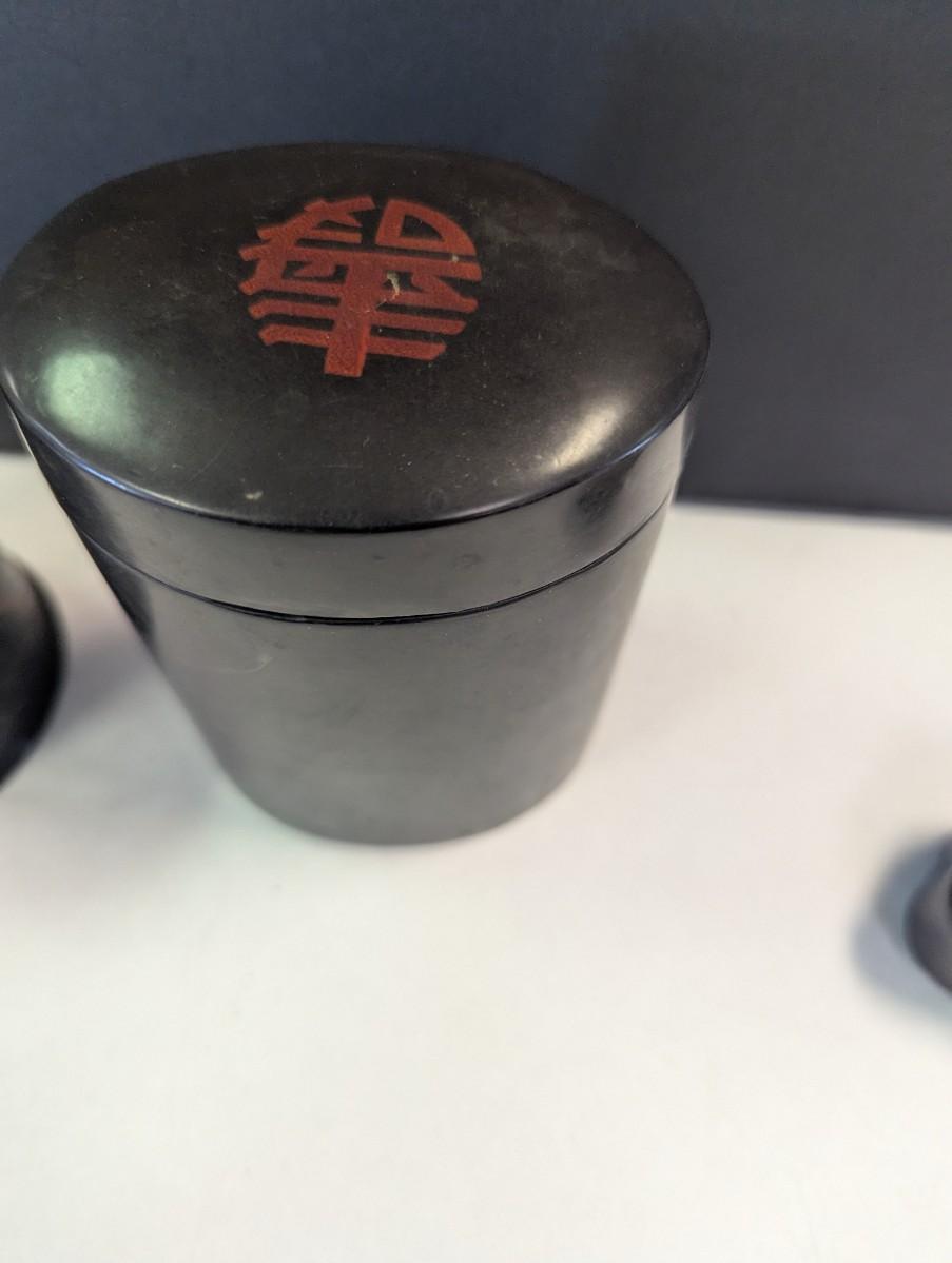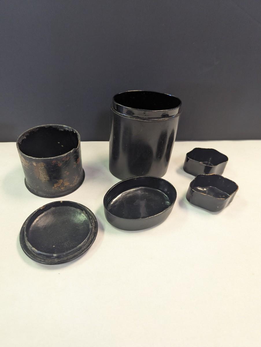 Antique Chinese Black Lacquer Caddies & Trinket Boxes Hand Painted Koi Fish