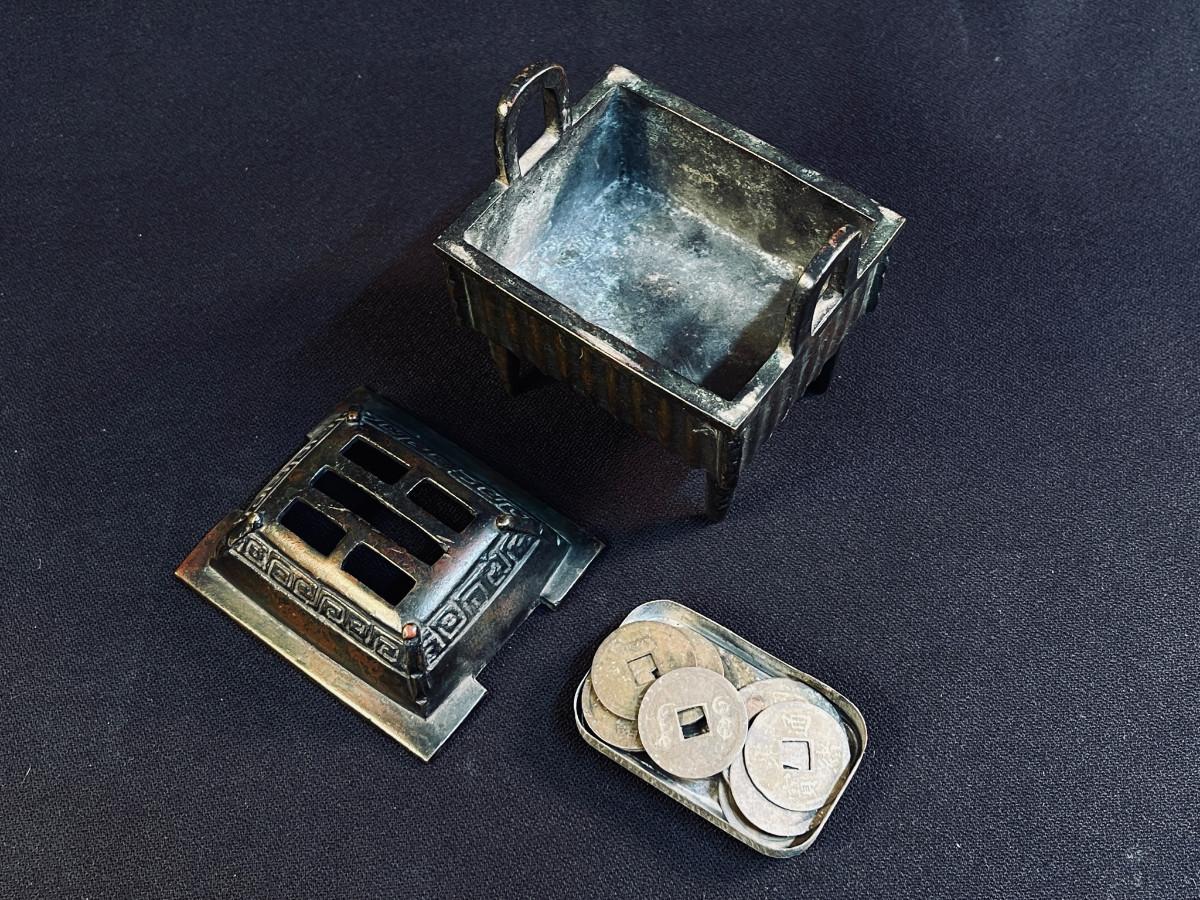 Antique Chinese Bronze Incense Censer with Coin Collection
