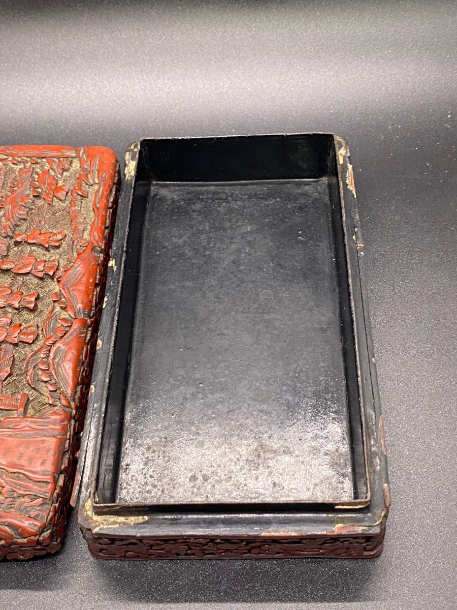 Antique Chinese Carved Cinnabar Lacquer Lidded Box