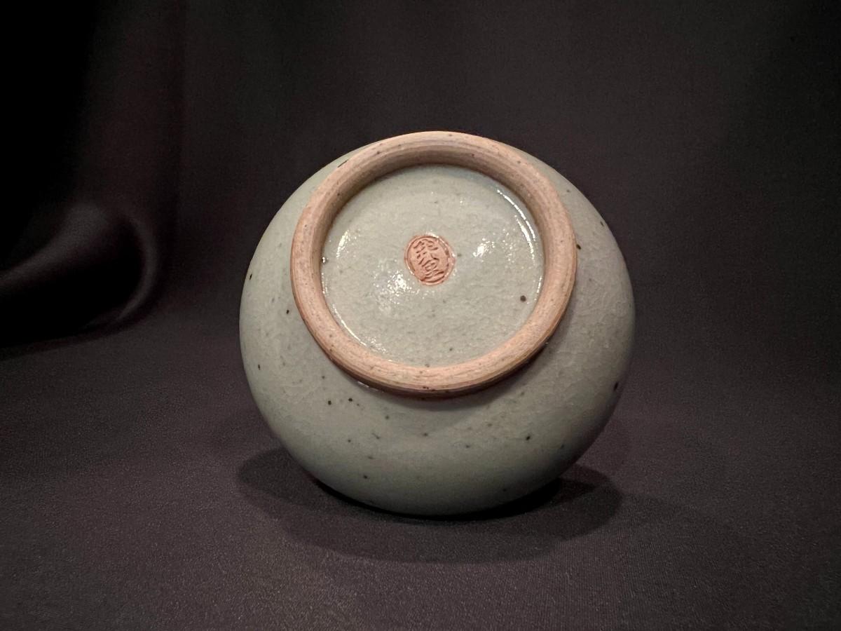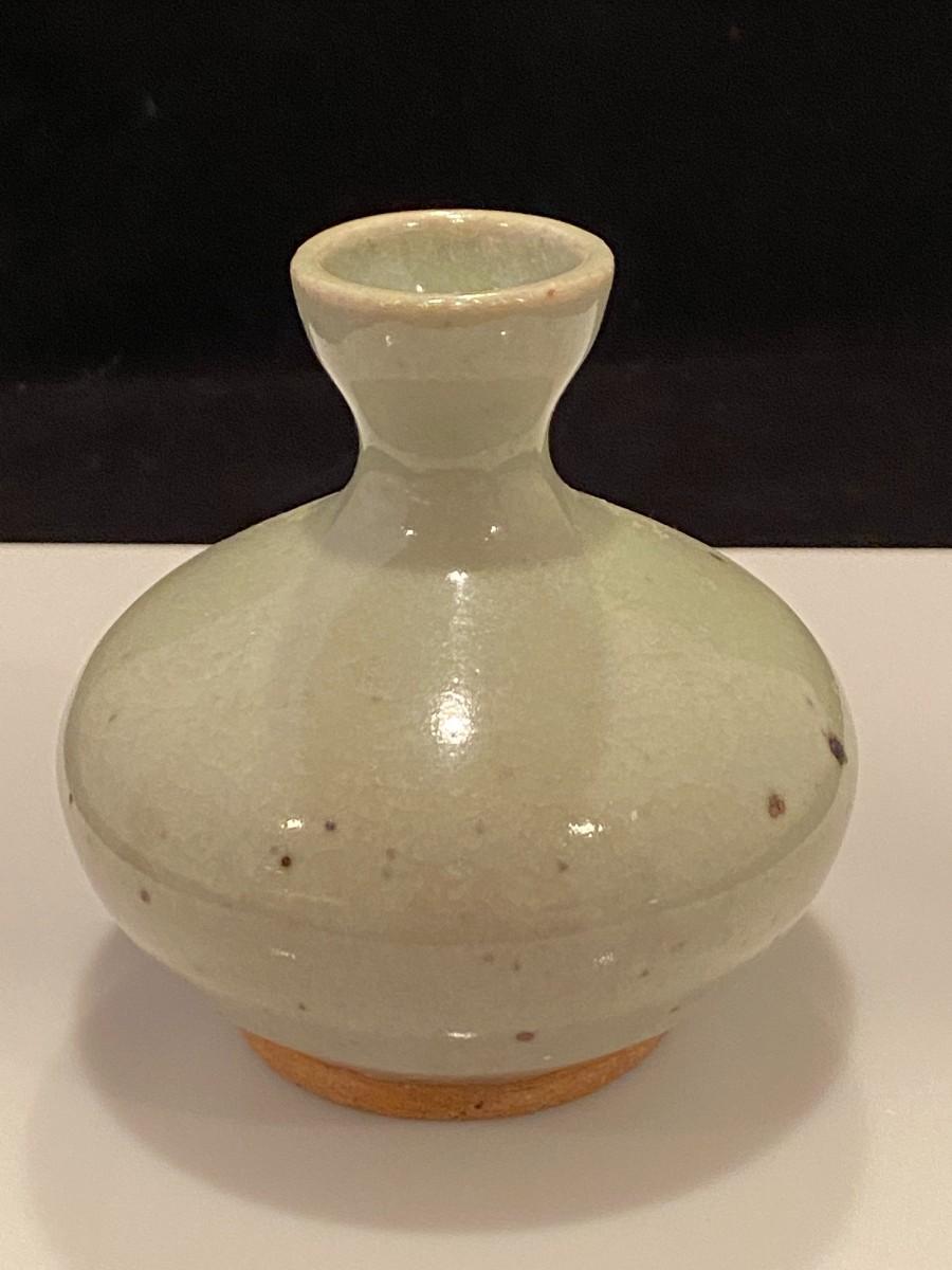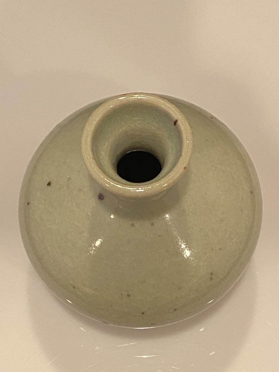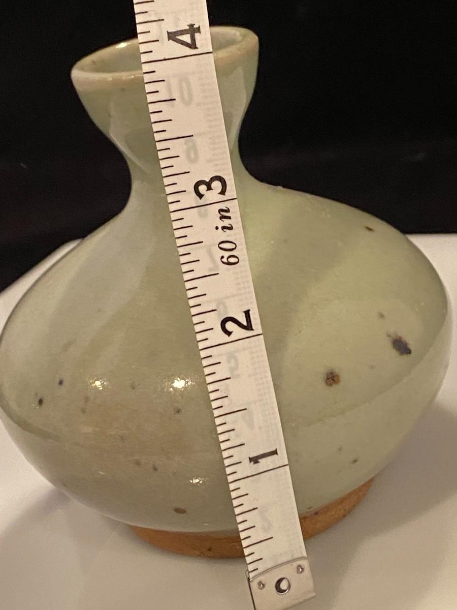 Beautiful small antique Chinese celadon green glazed porcelain vase, stamped by artist (shown in photos). In very good condition,