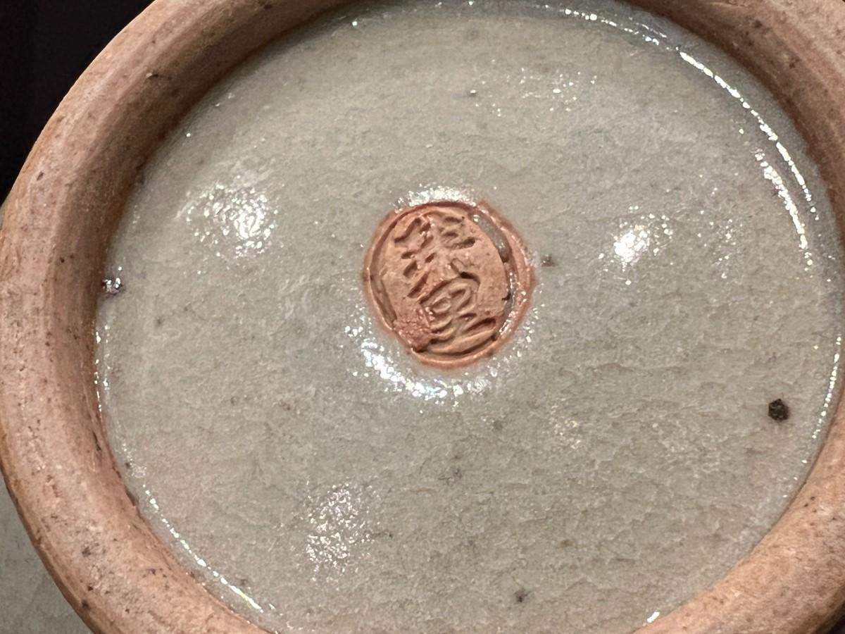 Antique Chinese Celadon Small Glazed Porcelain Stamped Vase