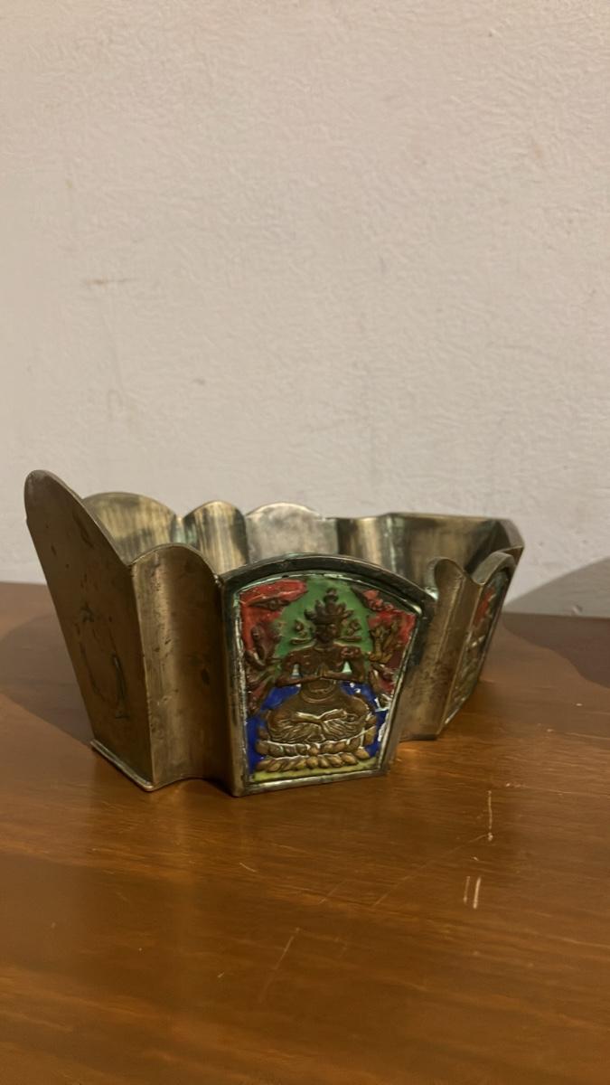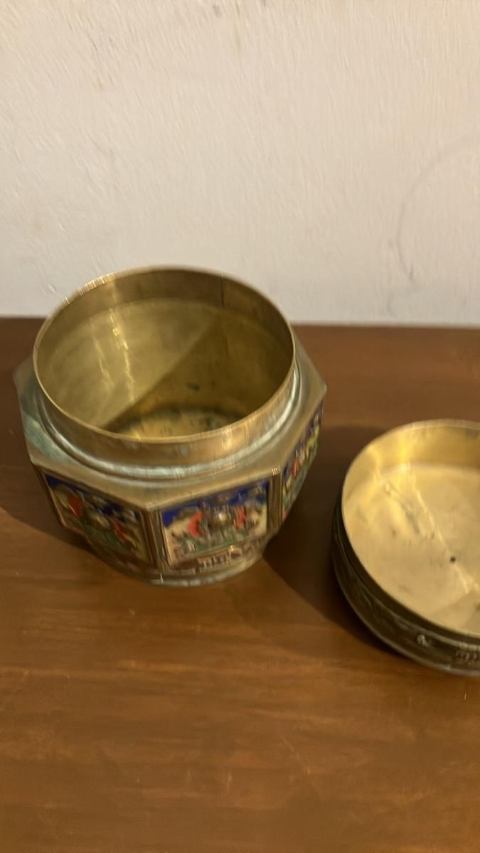 Antique Chinese Cloisonné Enamel Lidded Hexagonal Vessel and Scalloped Bowl