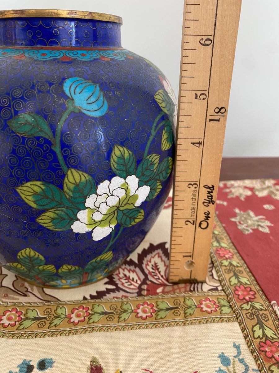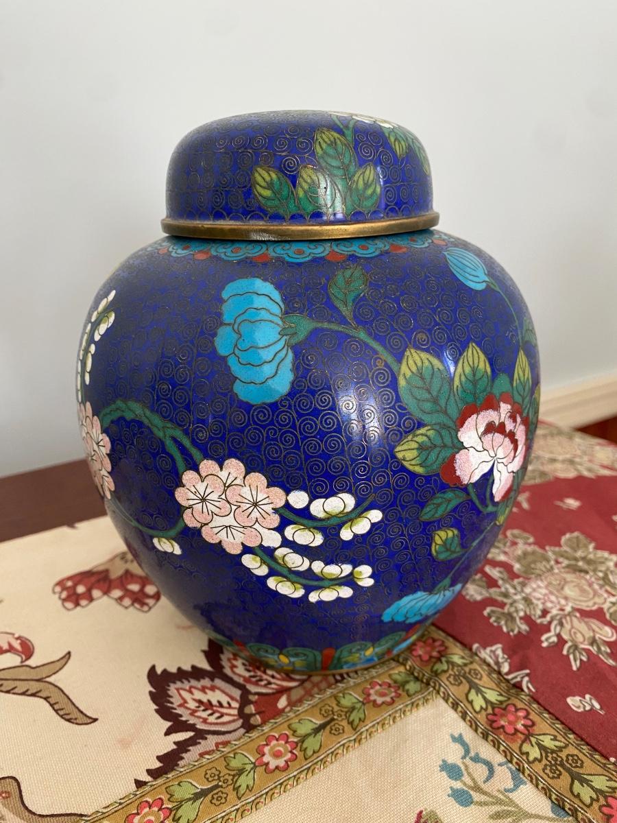 ANTIQUE CHINESE CLOISONNE ENAMEL GINGER JAR. App 6.5 " high. In excellent condition. Remnats of tag say'Brothers..."