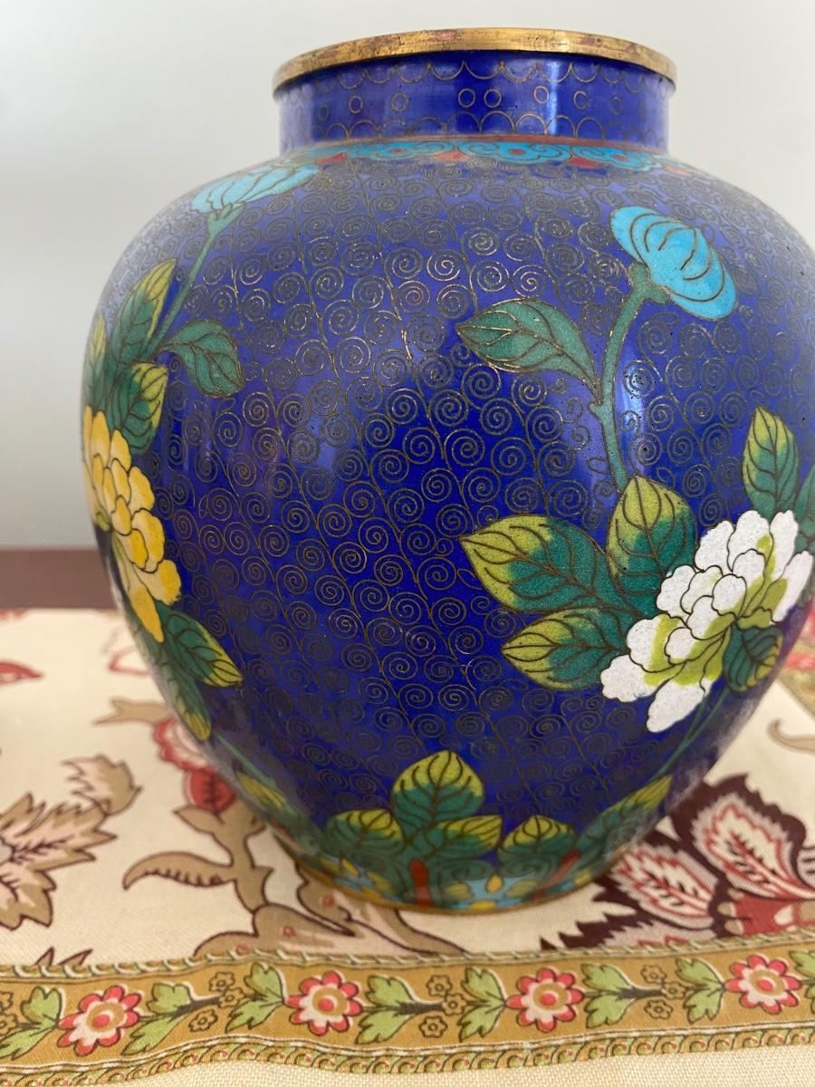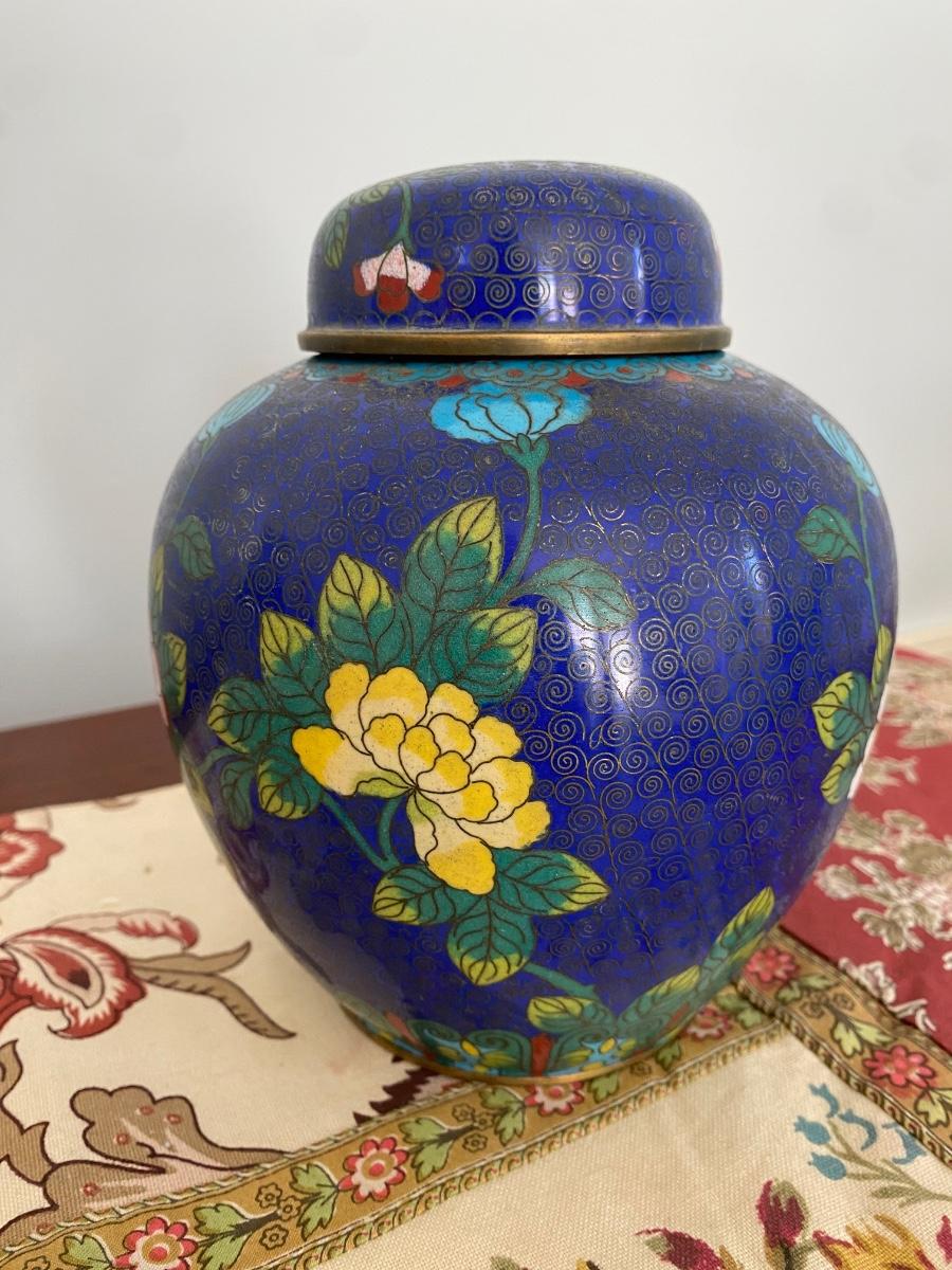 ANTIQUE CHINESE CLOISONNE ENAMEL GINGER JAR. App 6.5 " high. In excellent condition. Remnats of tag say'Brothers..."